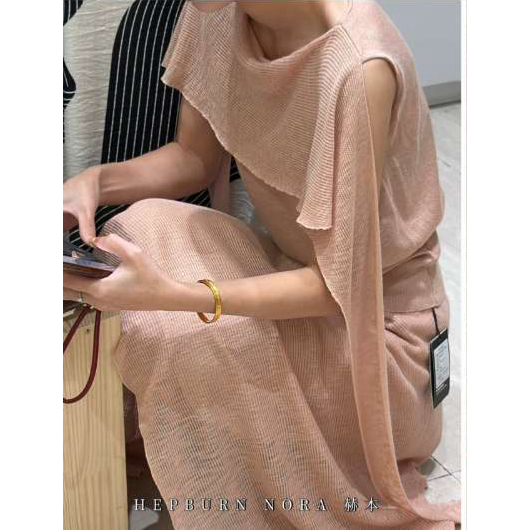 2026 여름 새로운 민소매 허리 수축 니트 스웨터 불규칙 트임 밑단 외국 가스 연령 감소 맨위