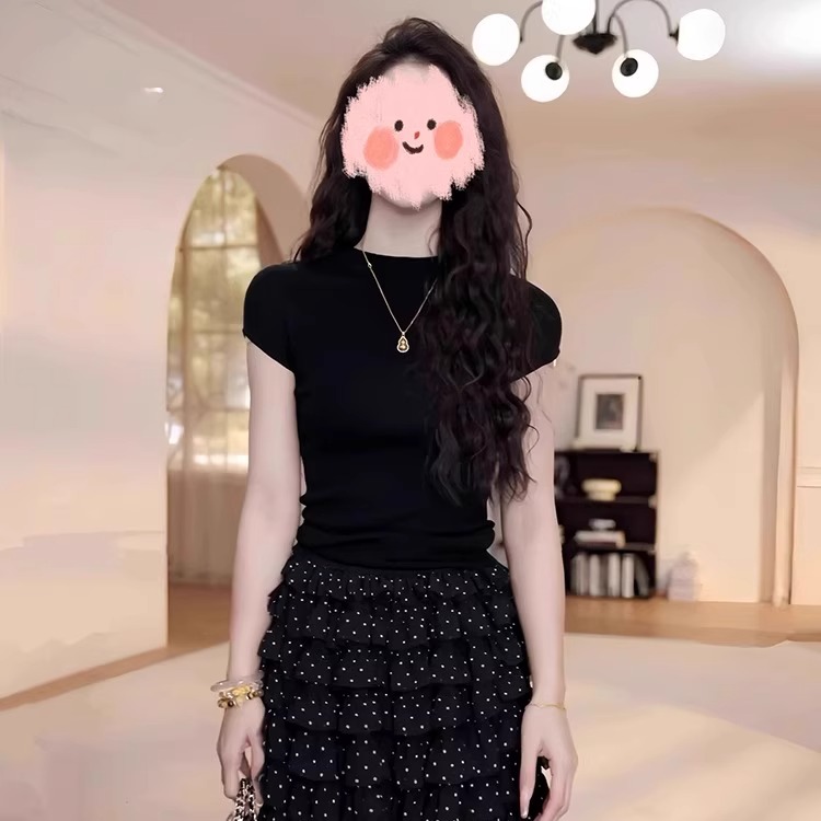 여름 코디 전체 집합 빅 사이즈 지방 mm 중간 소매 니트 스웨터 맨위 망사 반신 스커트 느긋한 레트로 세트 여성