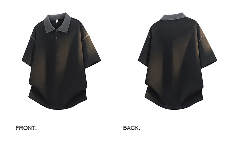 실사 여름 새로운 일본식 POLO 셔츠 남자 구조 섹션 신축성 반팔 단색 폴로 칼라 루즈핏 반소매 티셔츠