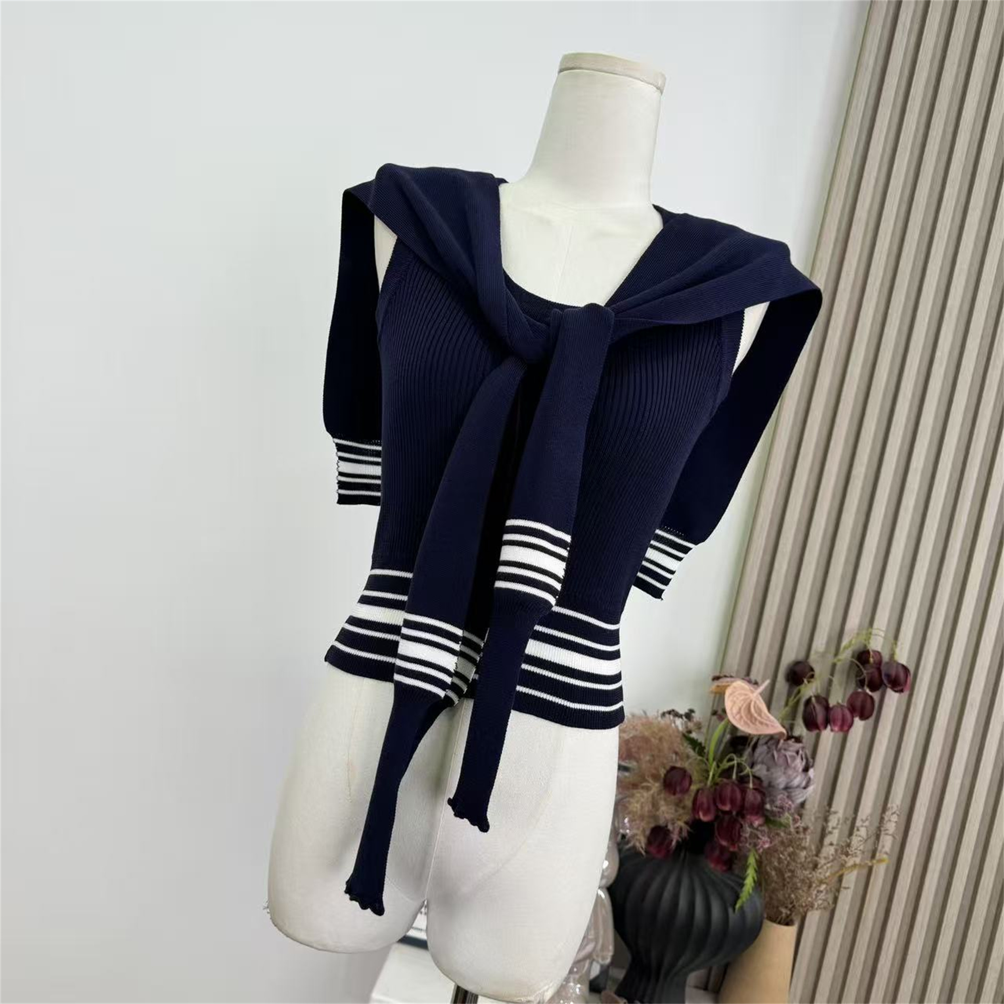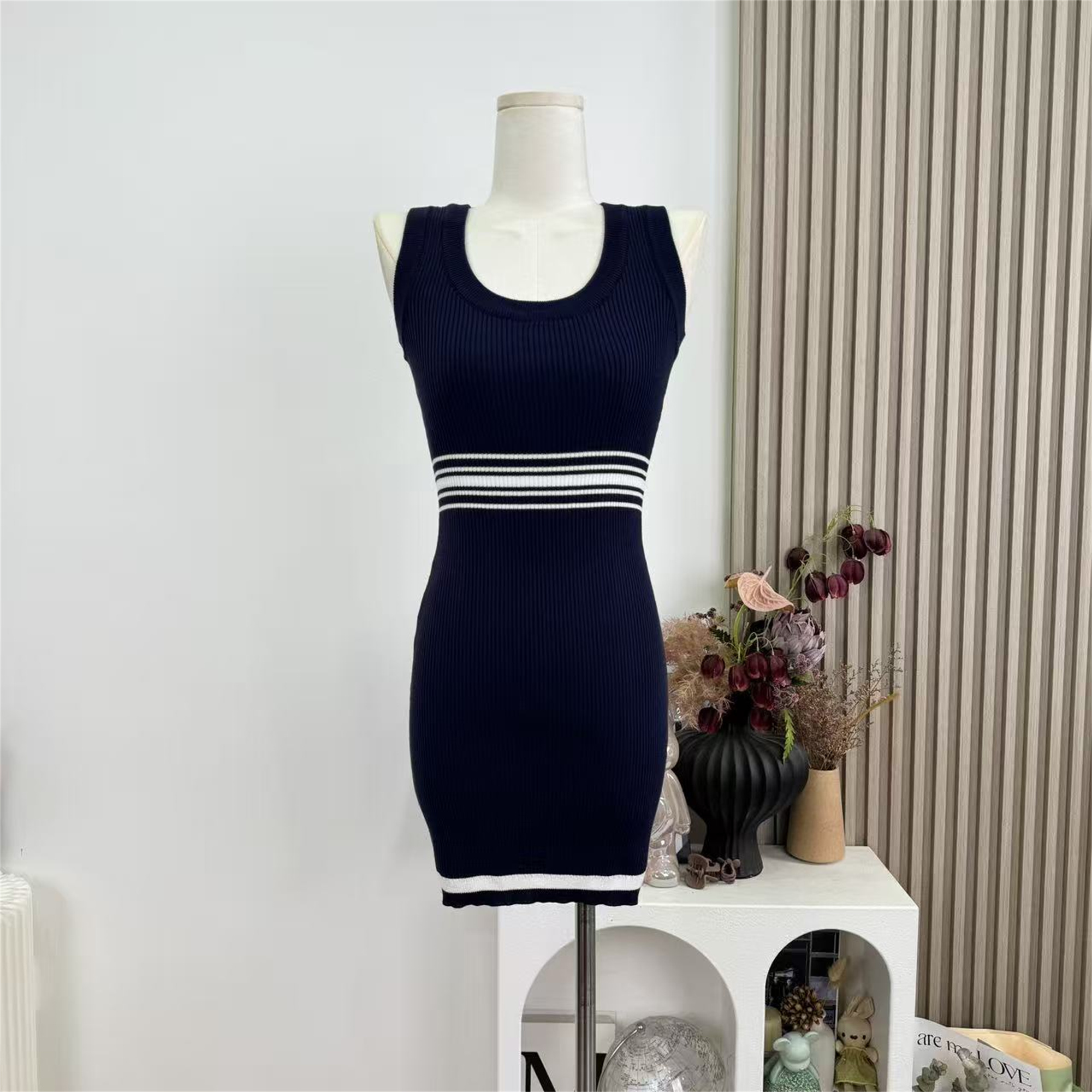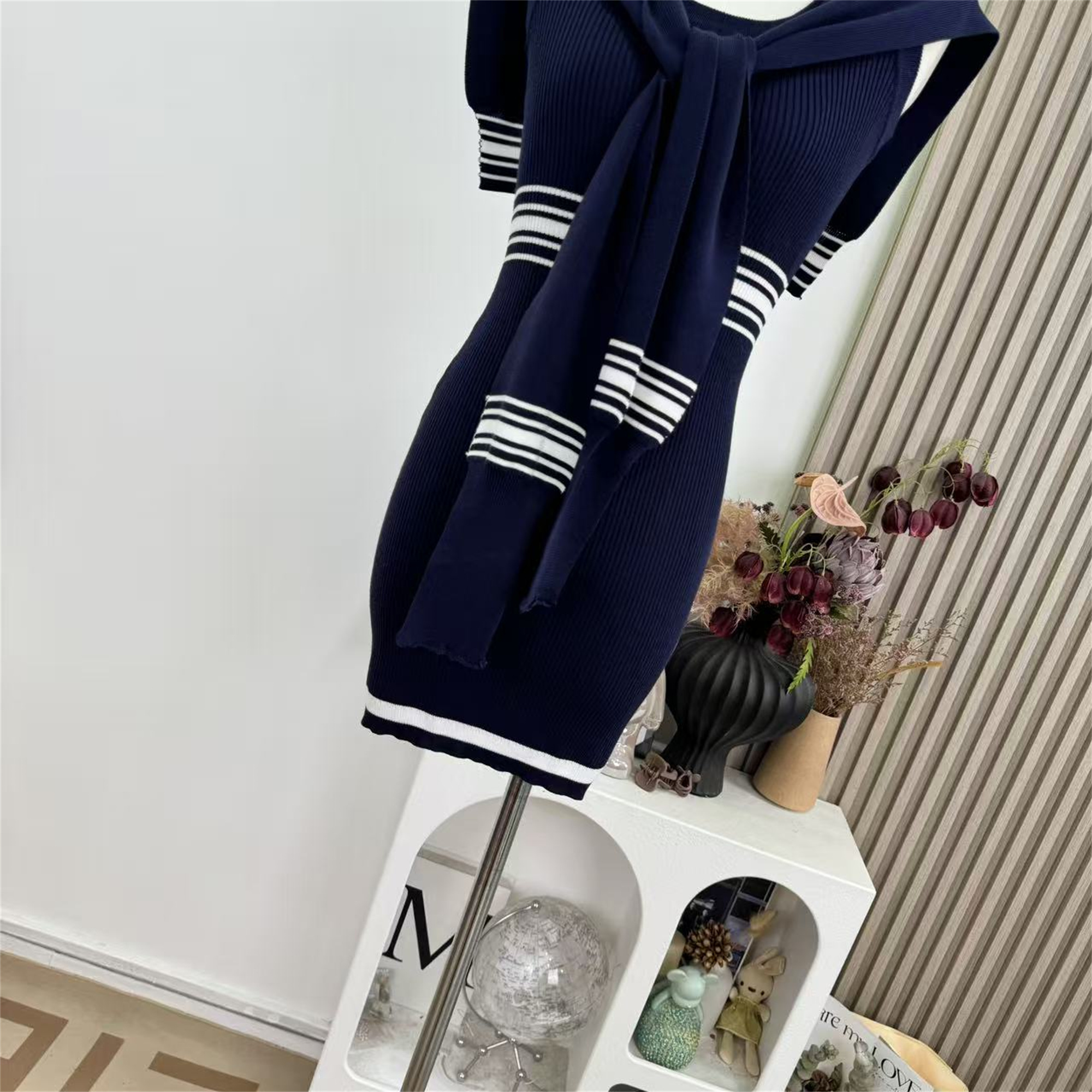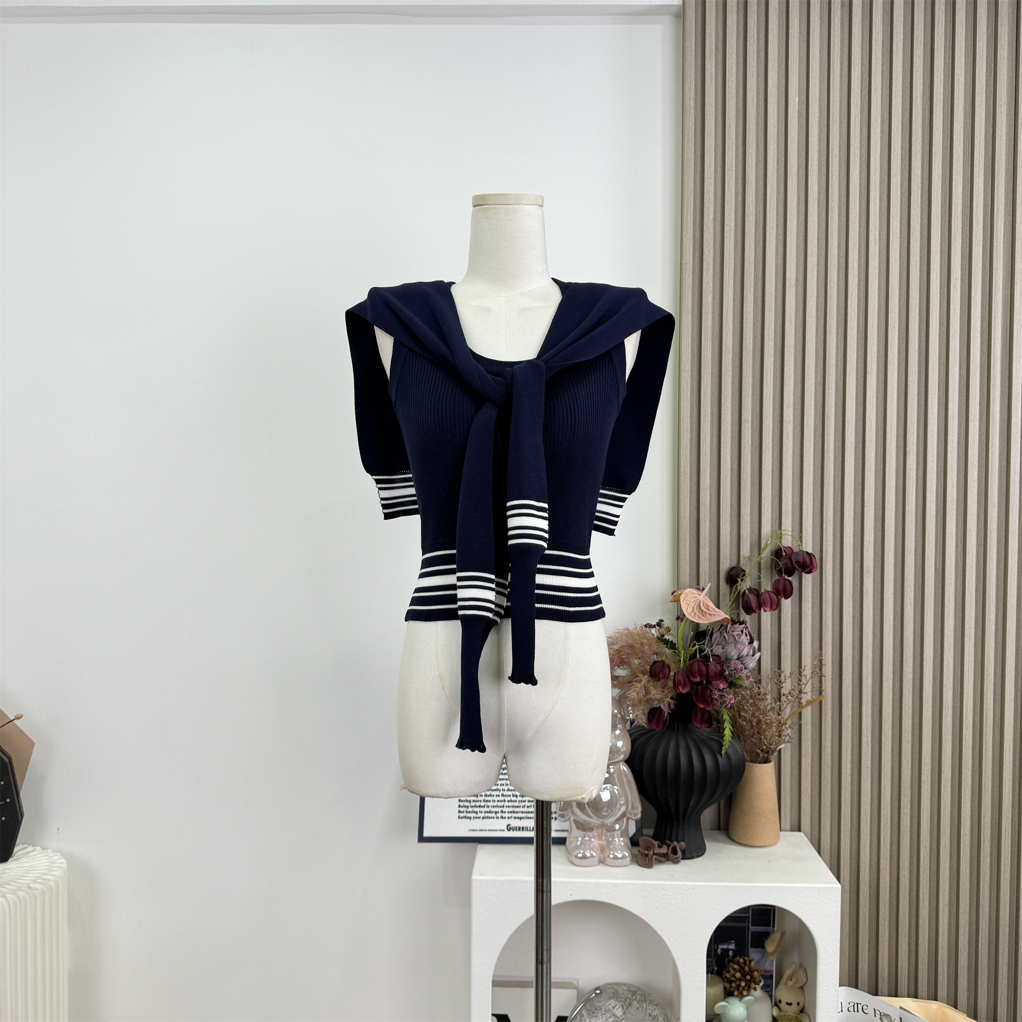 안녕하세요. 팬 팬 sunny girl 배색 끈 백리스 니트 원피스 샤오시엔 스트라이프 조끼