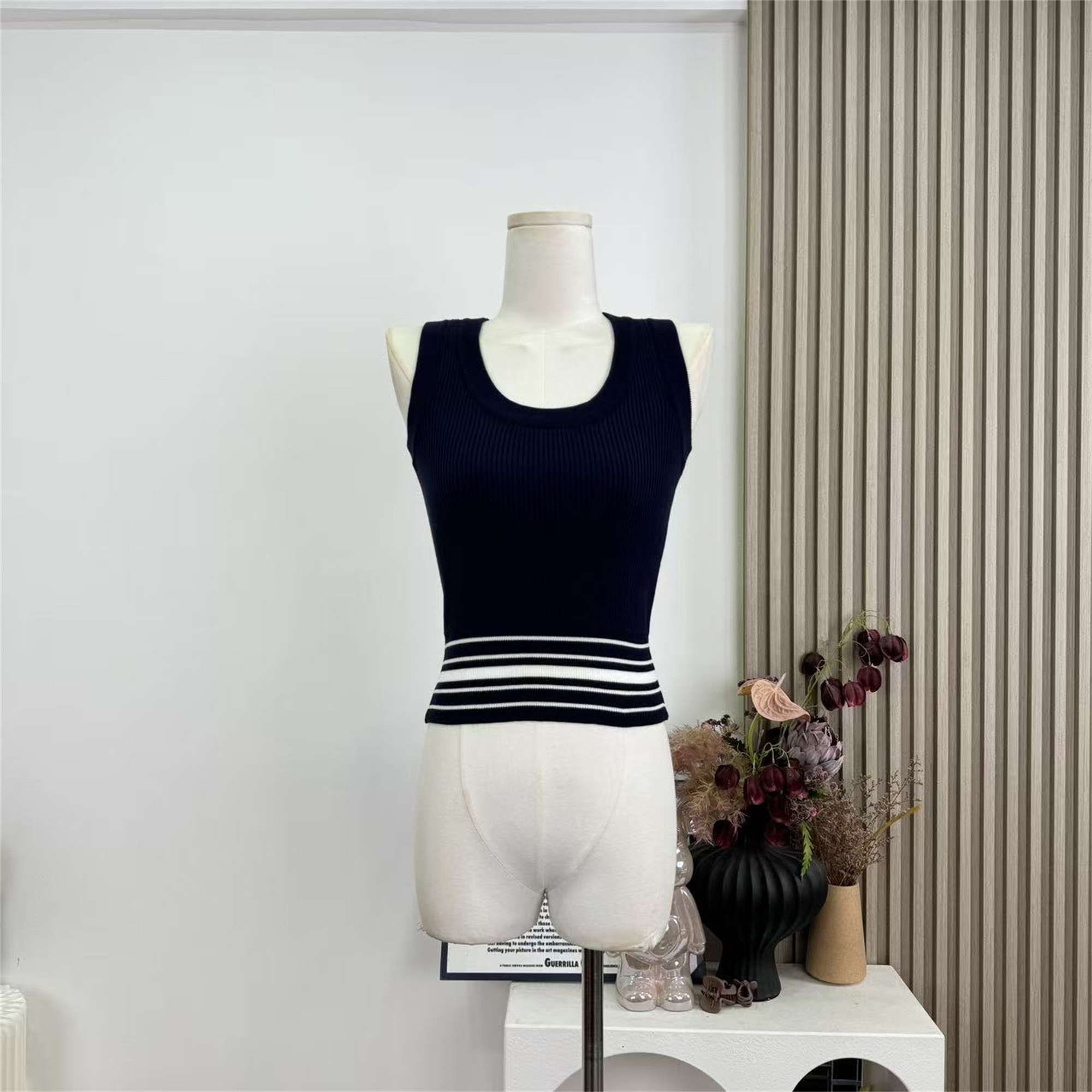 cchen 첸 첸 눈 레몬 아름다움 레이스 레이스 라운드 넥 맨위 여성 여름 민소매 니트 조끼 몸매 가꾸기 반팔