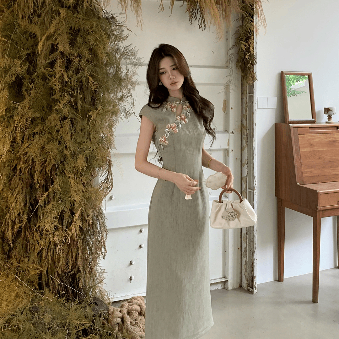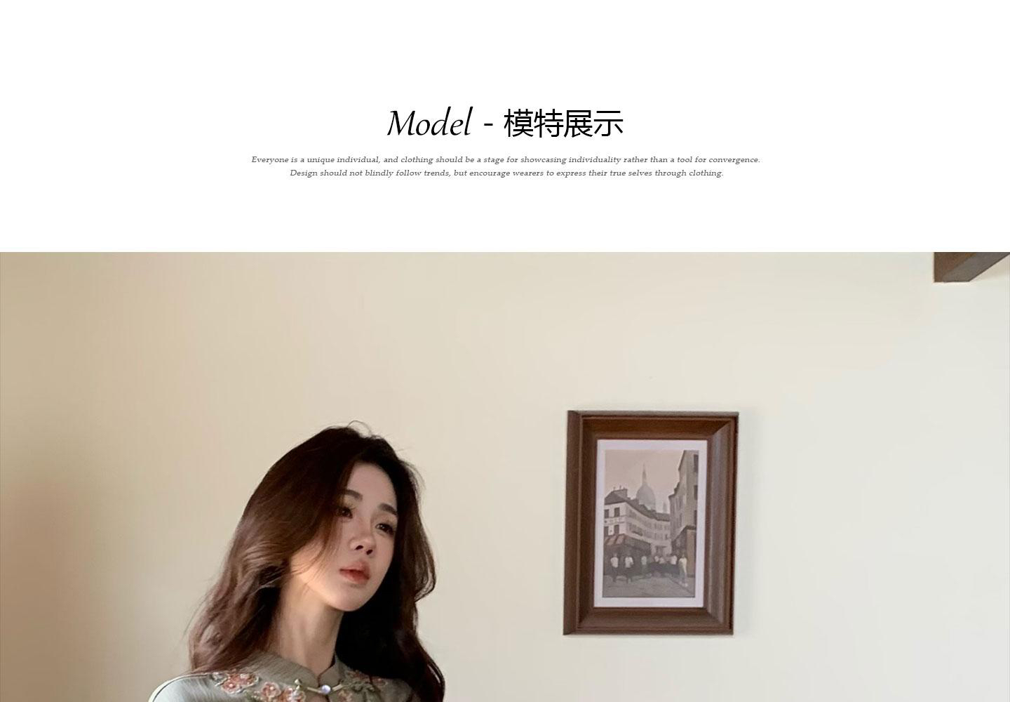 무쯔리 목자이 ~ 중 리 위커 의자 서식지 꽃 새로운 중식 무거운 작업 자수 스탠드 칼라 단추 개선 치파오 도루 센스 점프 슈트