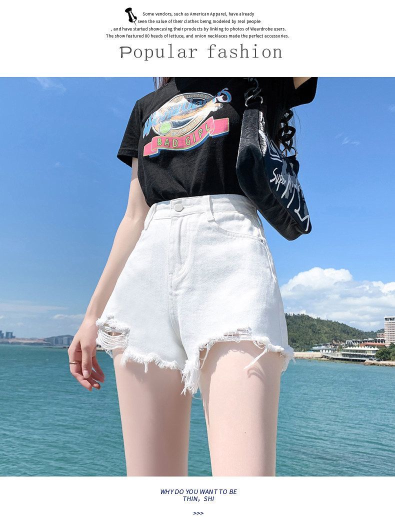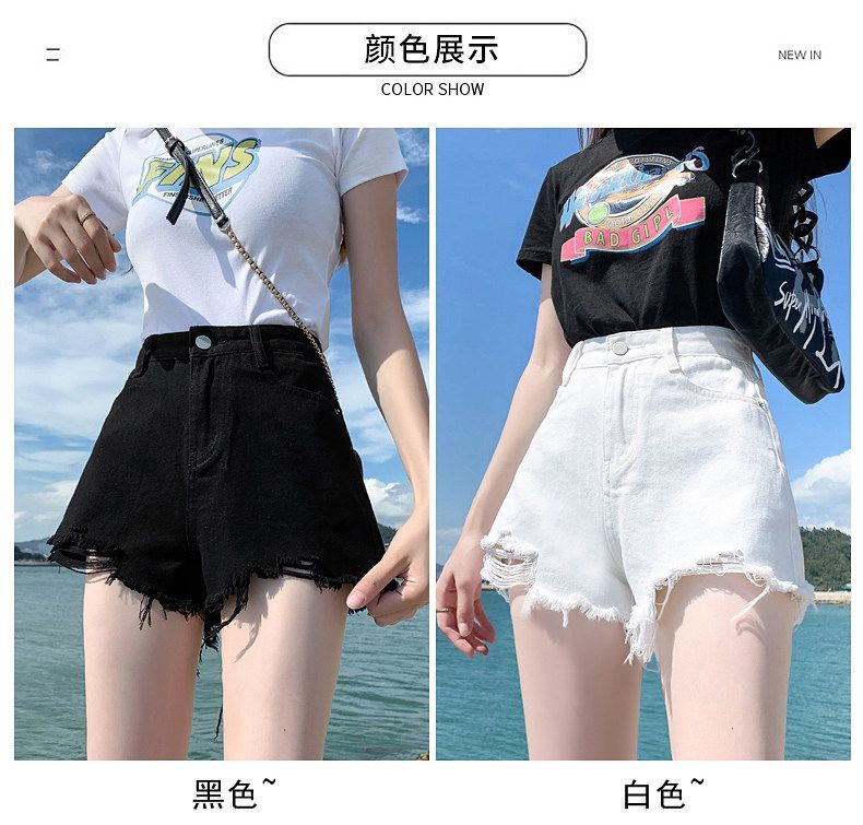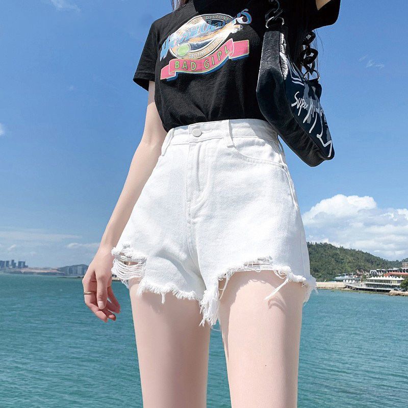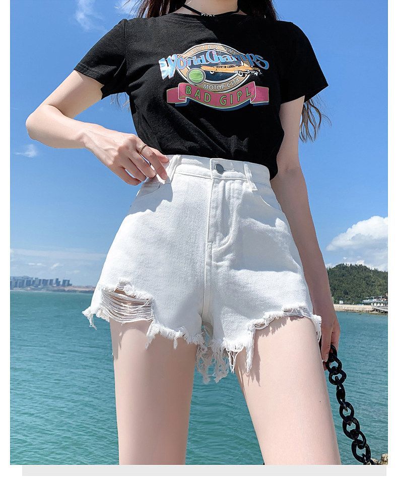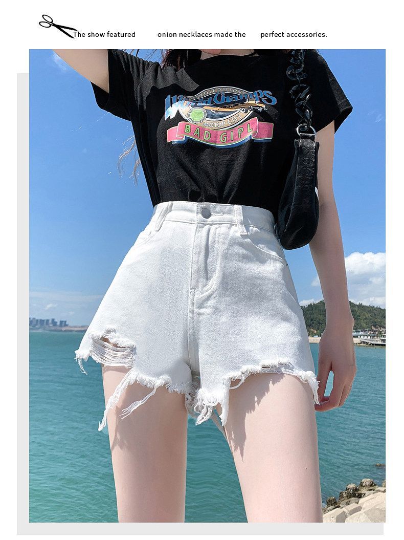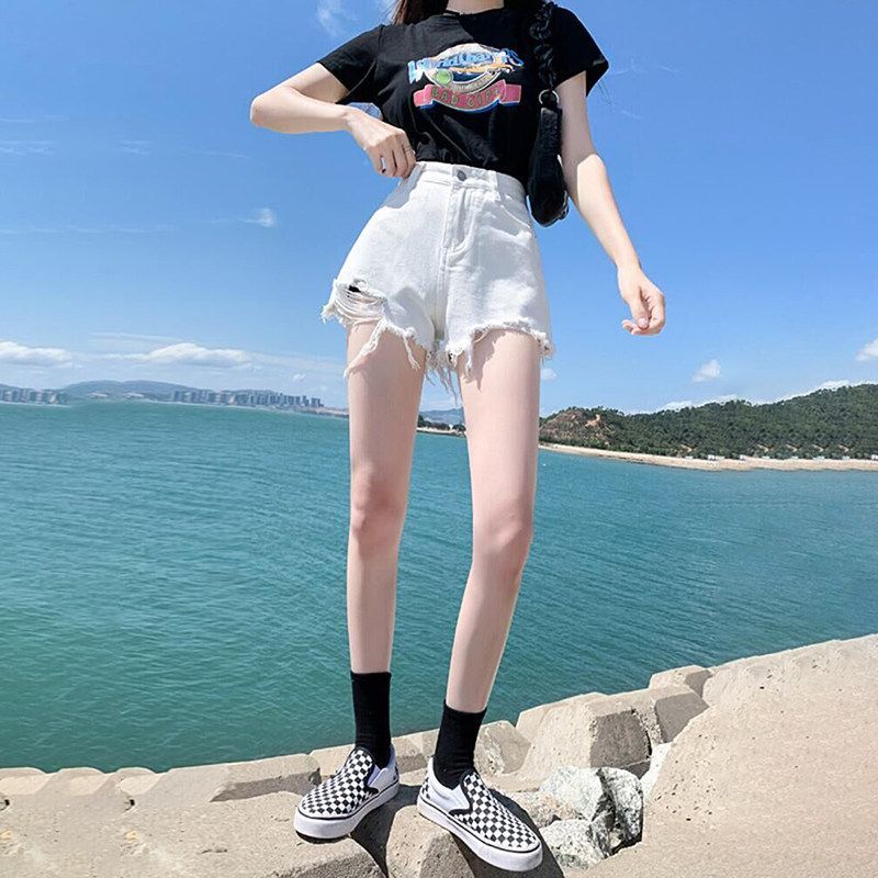 화이트 데님 반바지 여성 2026 새로운 폭발 여름 레트로 핫걸 하이웨이스트 볼륨 측면 빅 사이즈 슬림해 보이는 초단 핫 바지