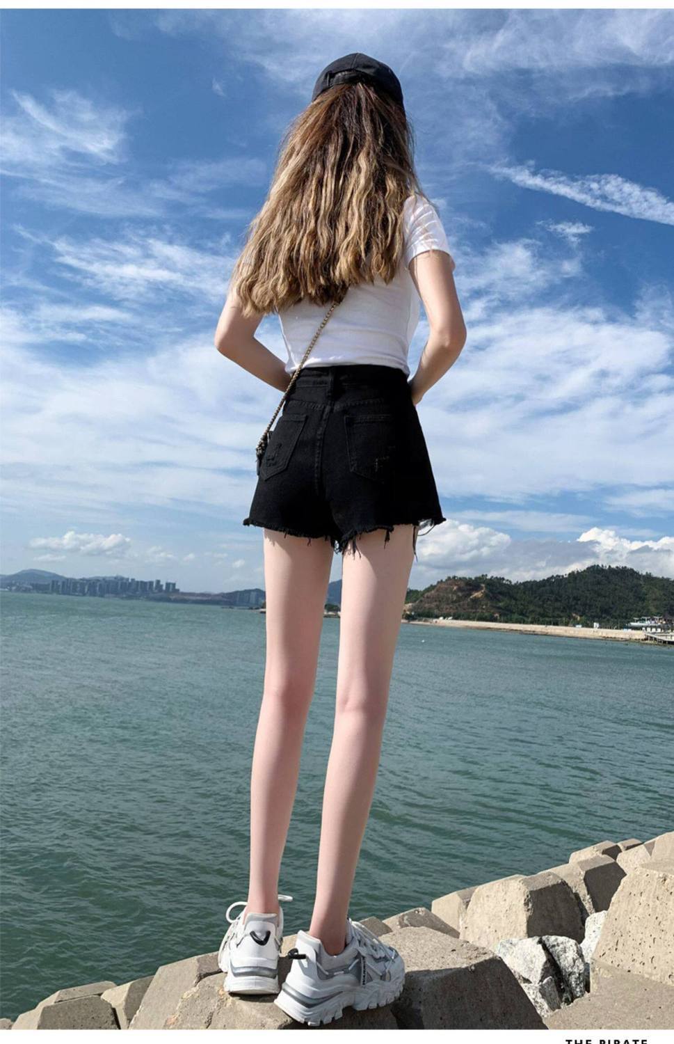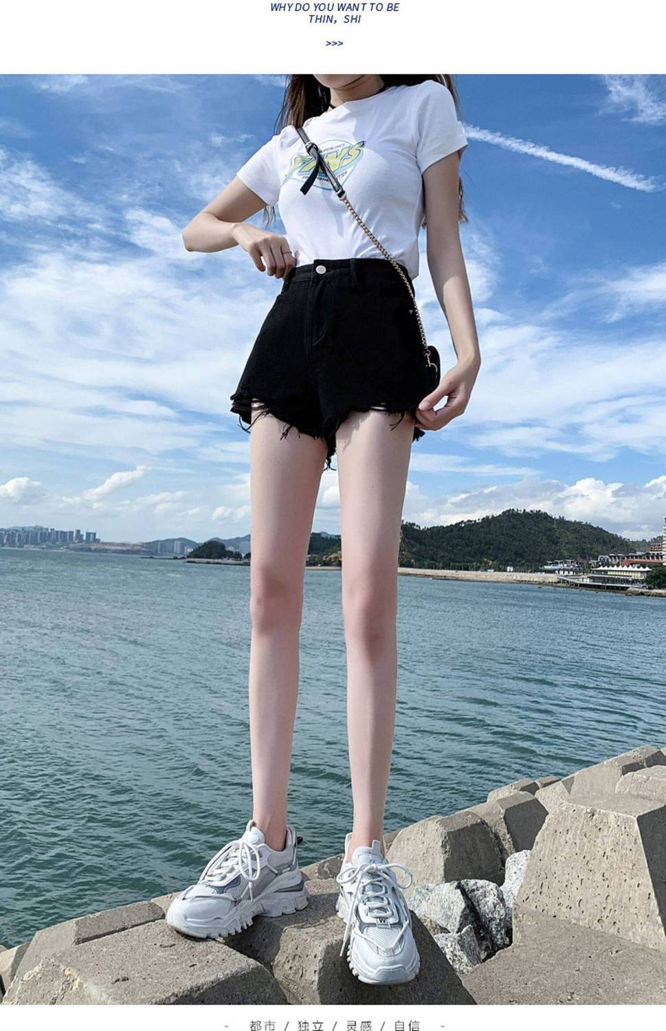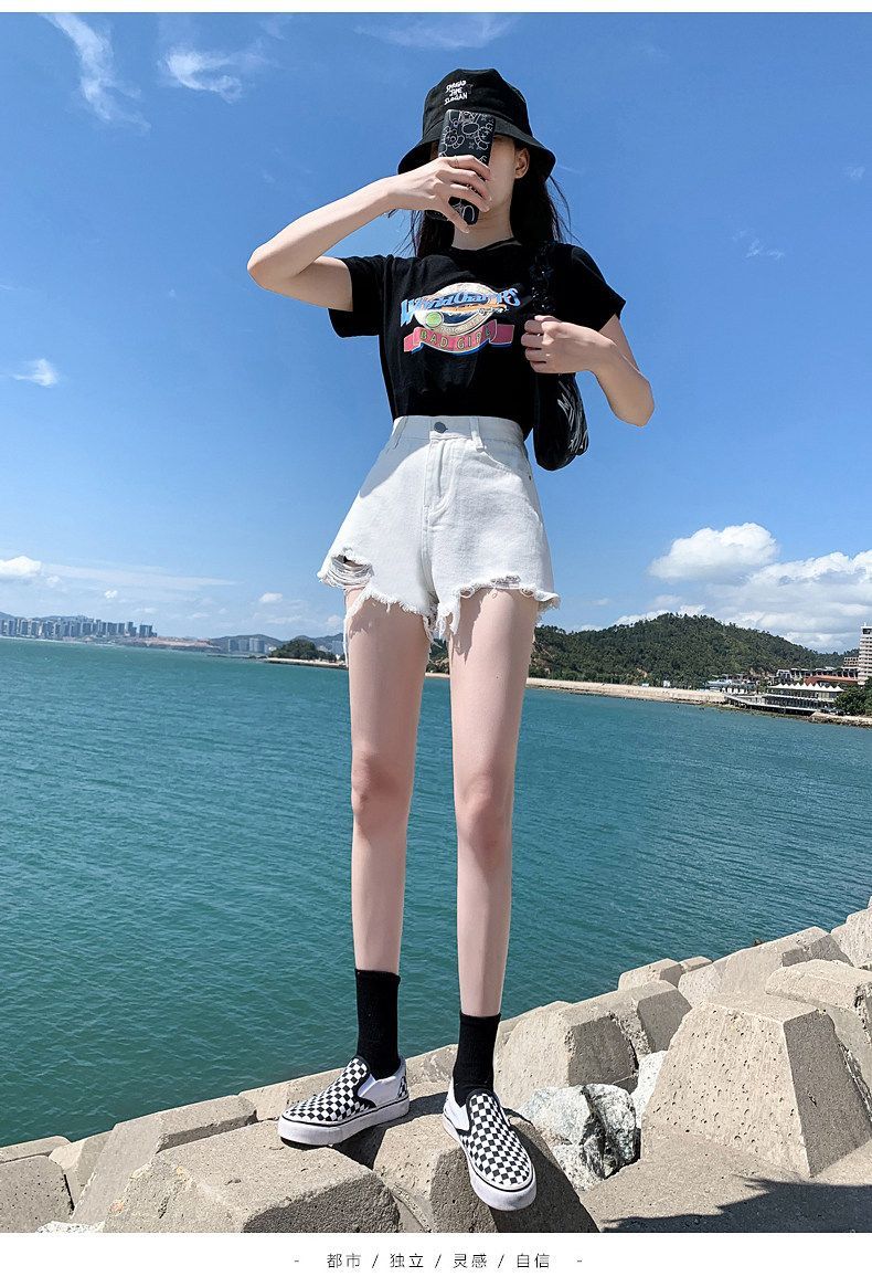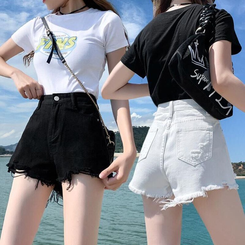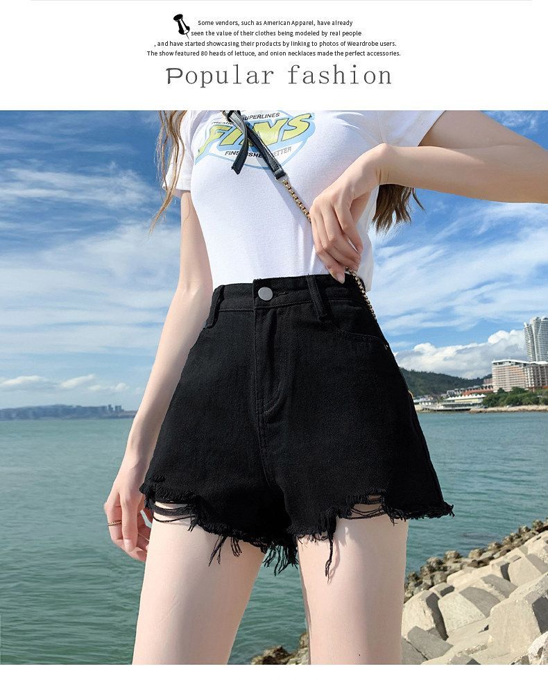 한 스타일 여름 높음 거리 미니멀리즘 다용도 데님 반바지 여성 의류 새로운 레트로 하이웨이스트 핫걸 한 마디 넓은 다리 핫 바지