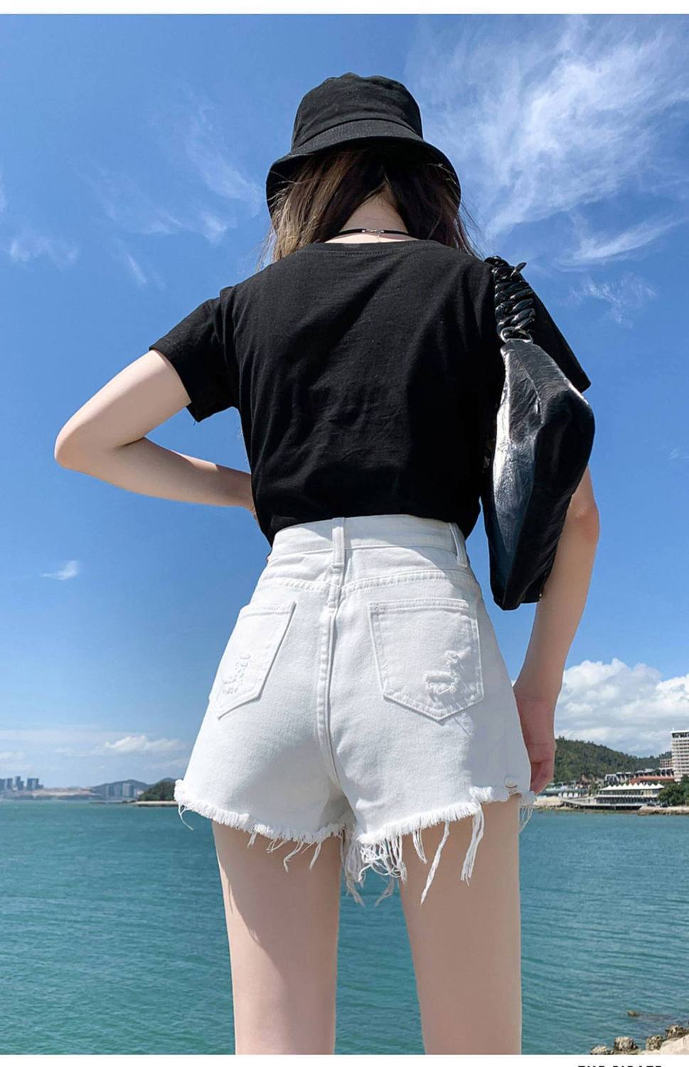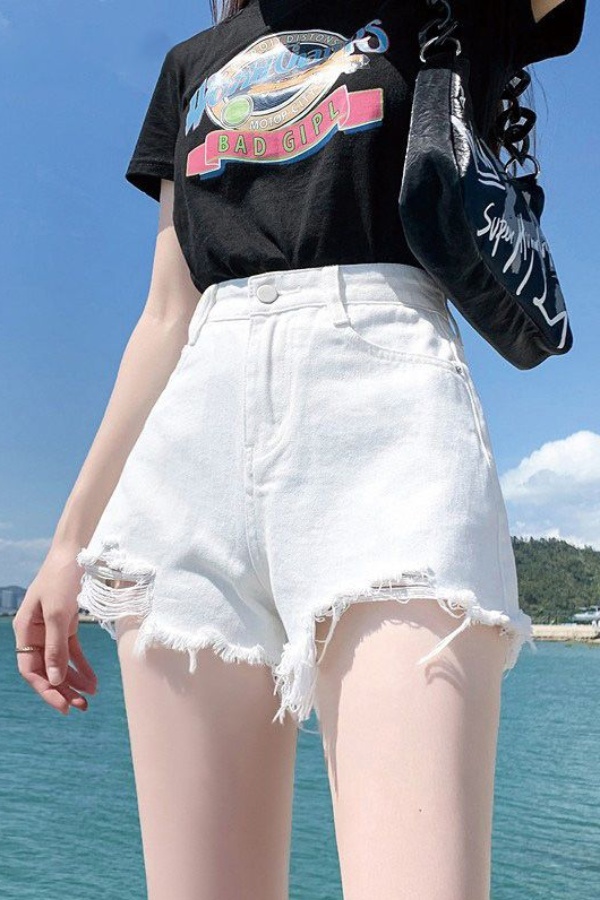 인터넷 유명인 같은 단락 2026 여름 새로운 아메리칸 핫걸 금속 버클 디자인 워시 워터 밀 화이트 3 점 데님 반바지 여성