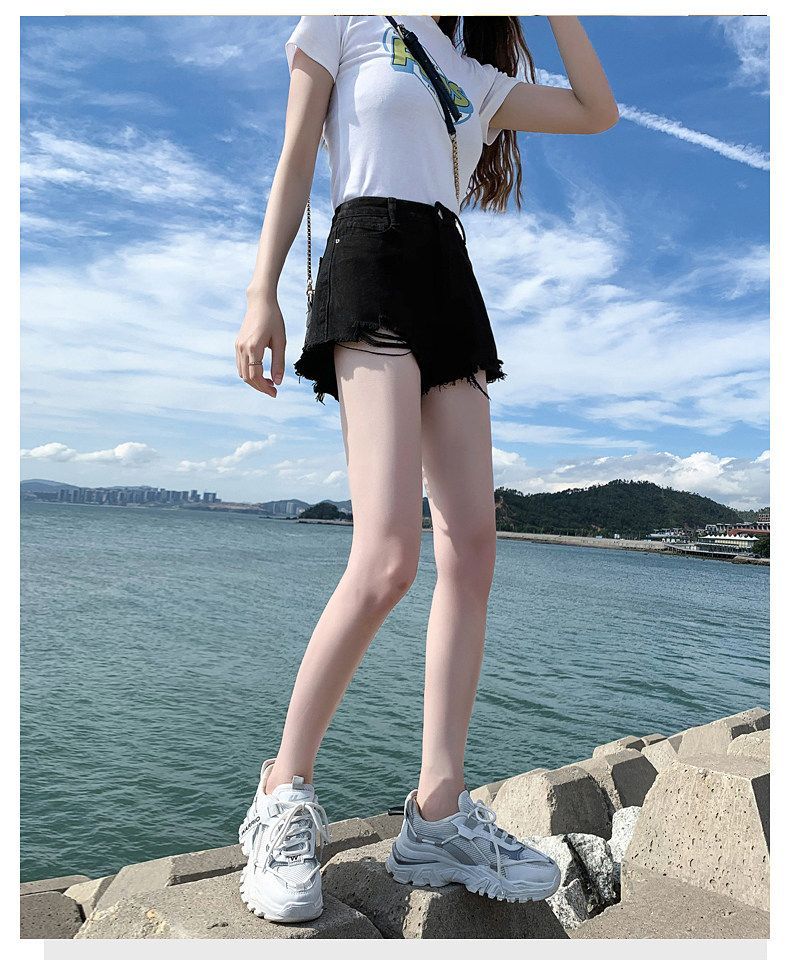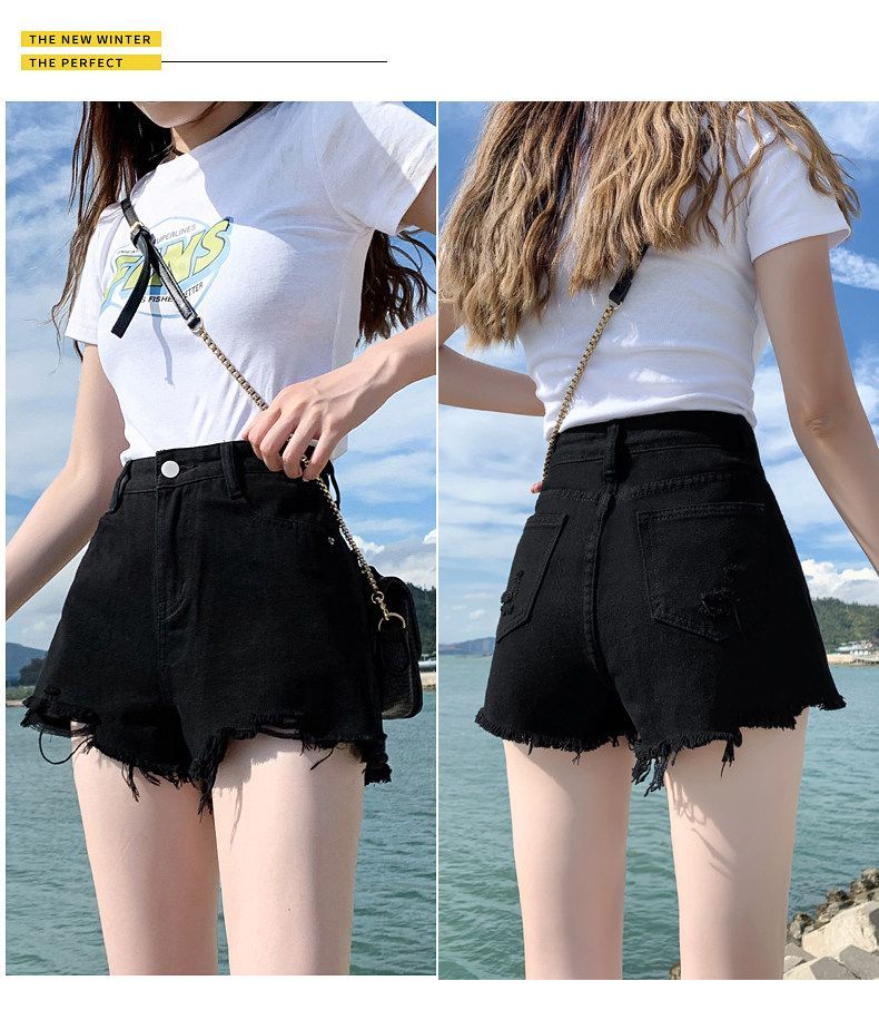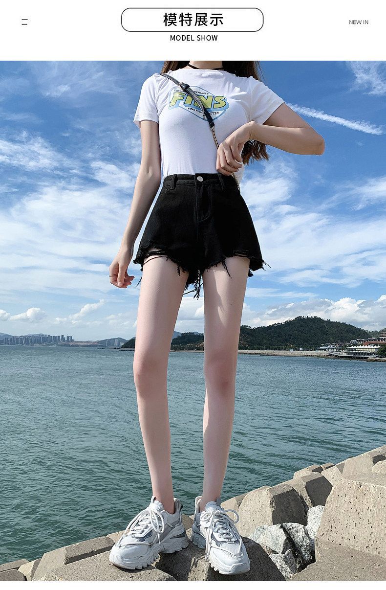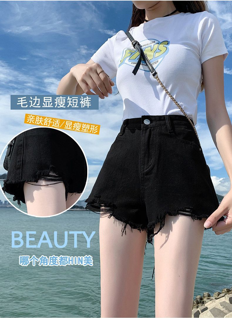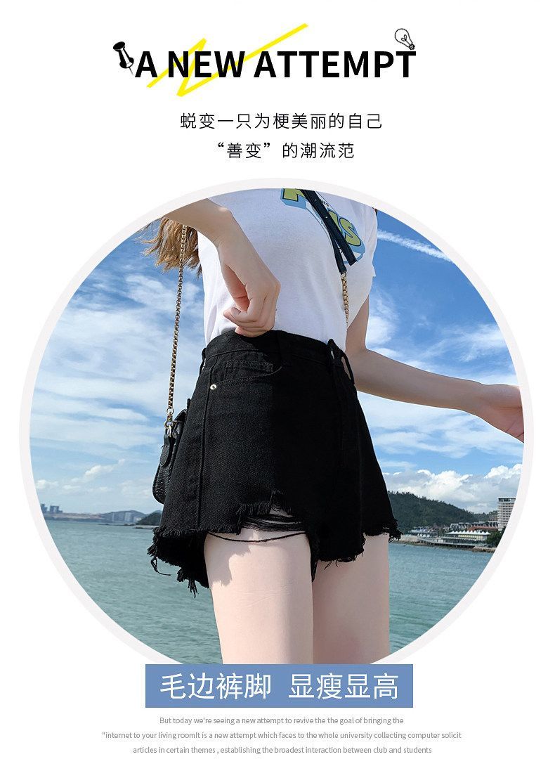2026 트임 하이웨이스트 데님 반바지 여성 여름 빅 사이즈 검정색 루즈핏 슬림해 보이는 새로운 품격 미니멀리즘 뜨거운 바지