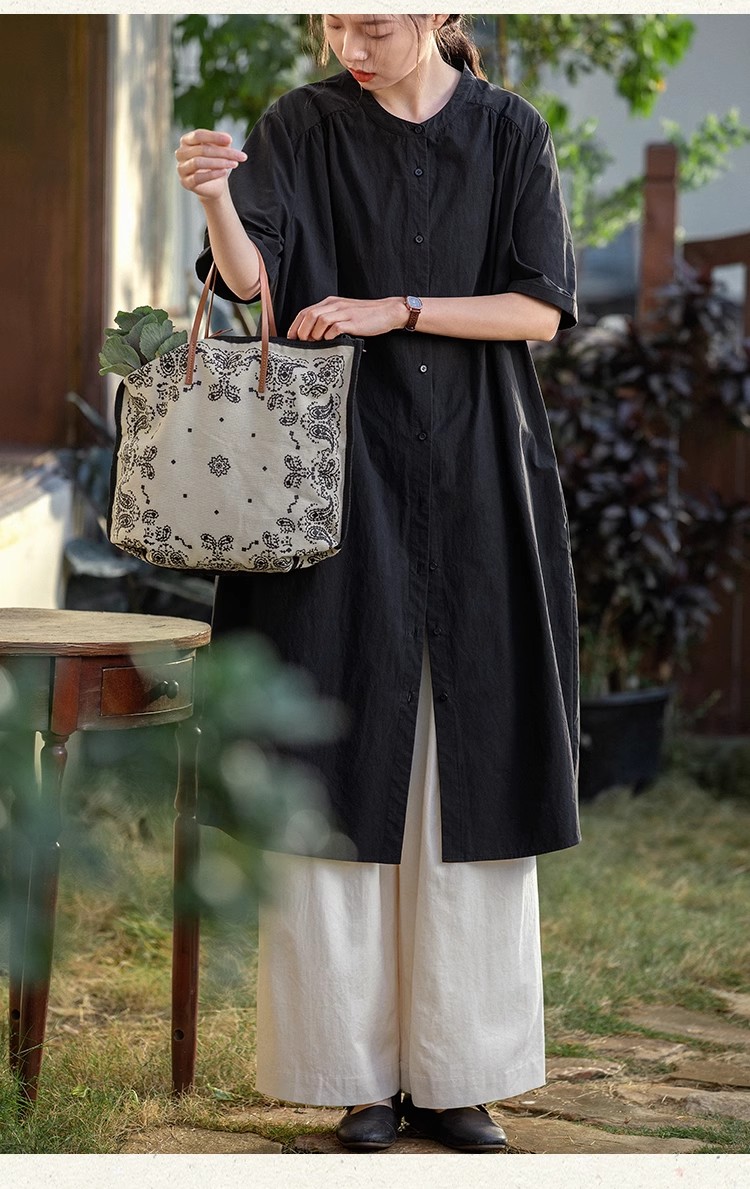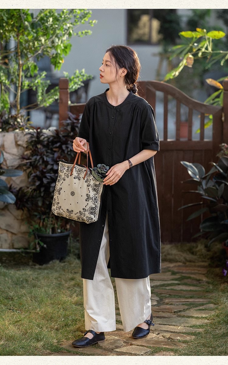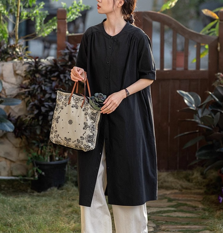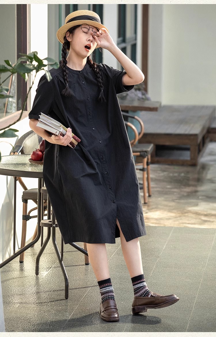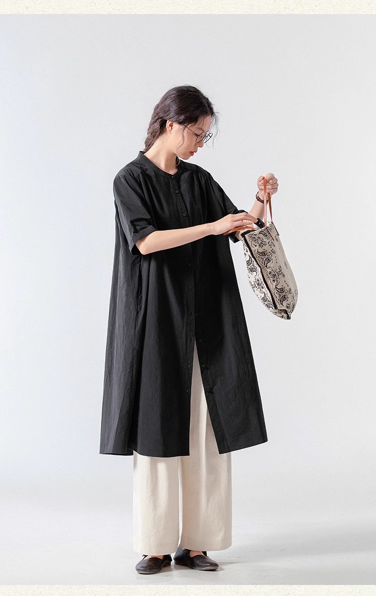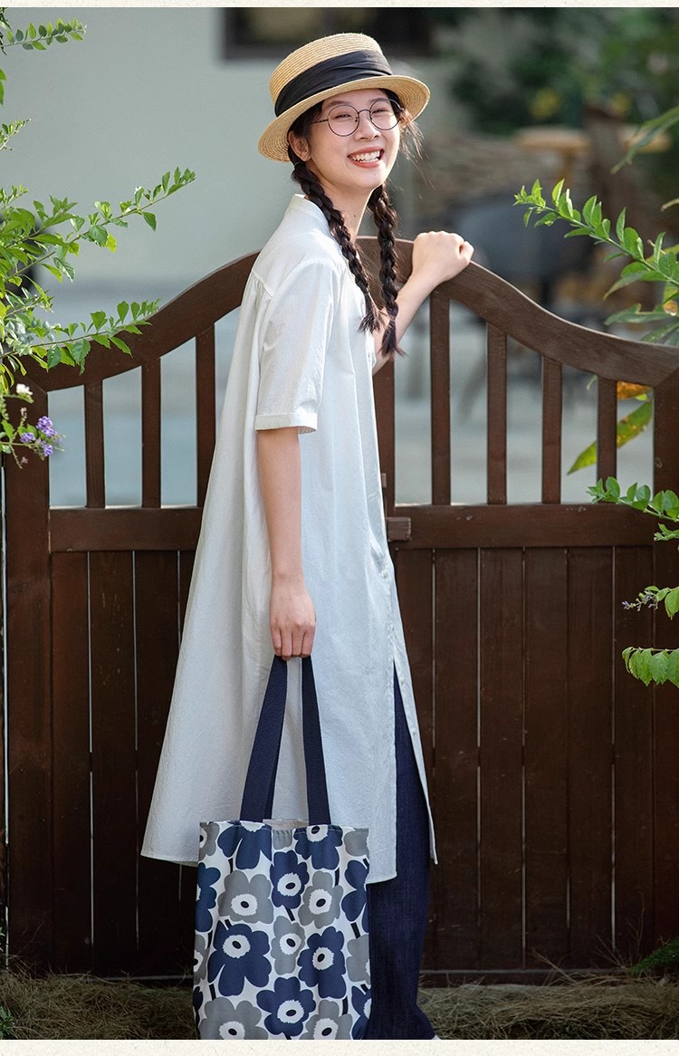 대외 무역 오리지널 일본식 화이트 롱 코트 여성 셔츠 루즈핏 캐주얼 작은 키 라운드 넥 순면 스택 착용 셔츠 치마