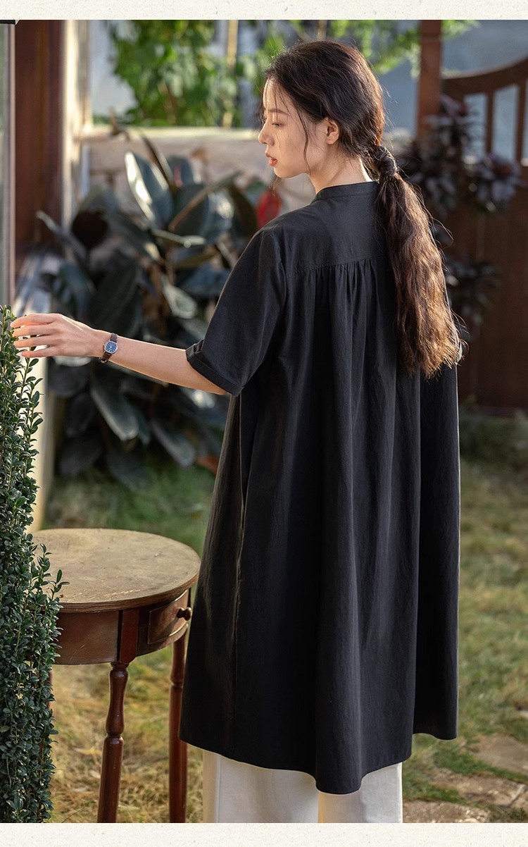실사 여름 드레스 빅 사이즈 여성 의류 출퇴근 루즈핏 레이스 측면 색상 버클 면 린넨 셔츠 인형 셔츠 m-4xl200 근