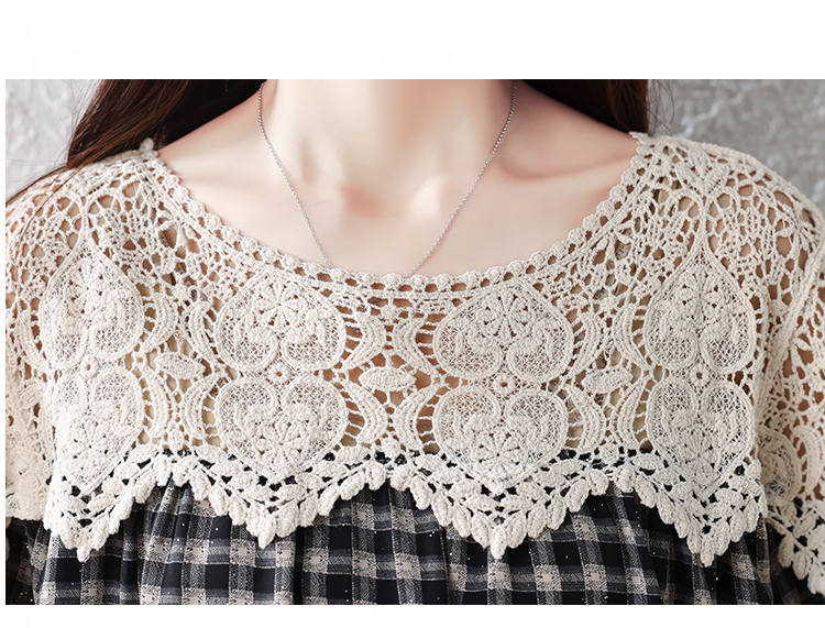 실사 빅 사이즈 여성 의류 레이스 V넥 반팔 셔츠 2026 여름 새로운 지방 mm 표지 배 슬림해 보이는 중간 길이