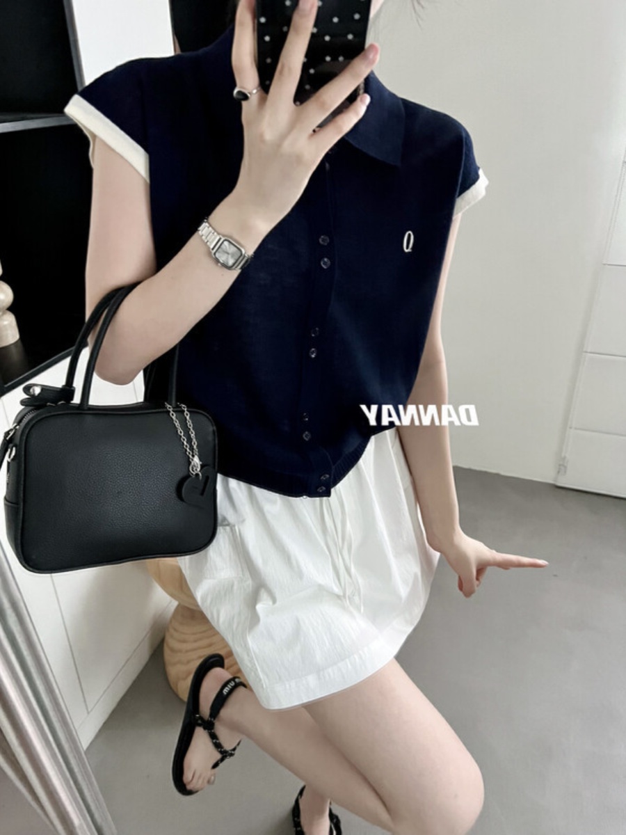 오래된 돈 바람 POLO 칼라 스카프 반팔 니트 스웨터 여성 초기 여름 한 부서 디자인 센스 얇은 스타일 슬림해 보이는 품격 맨위