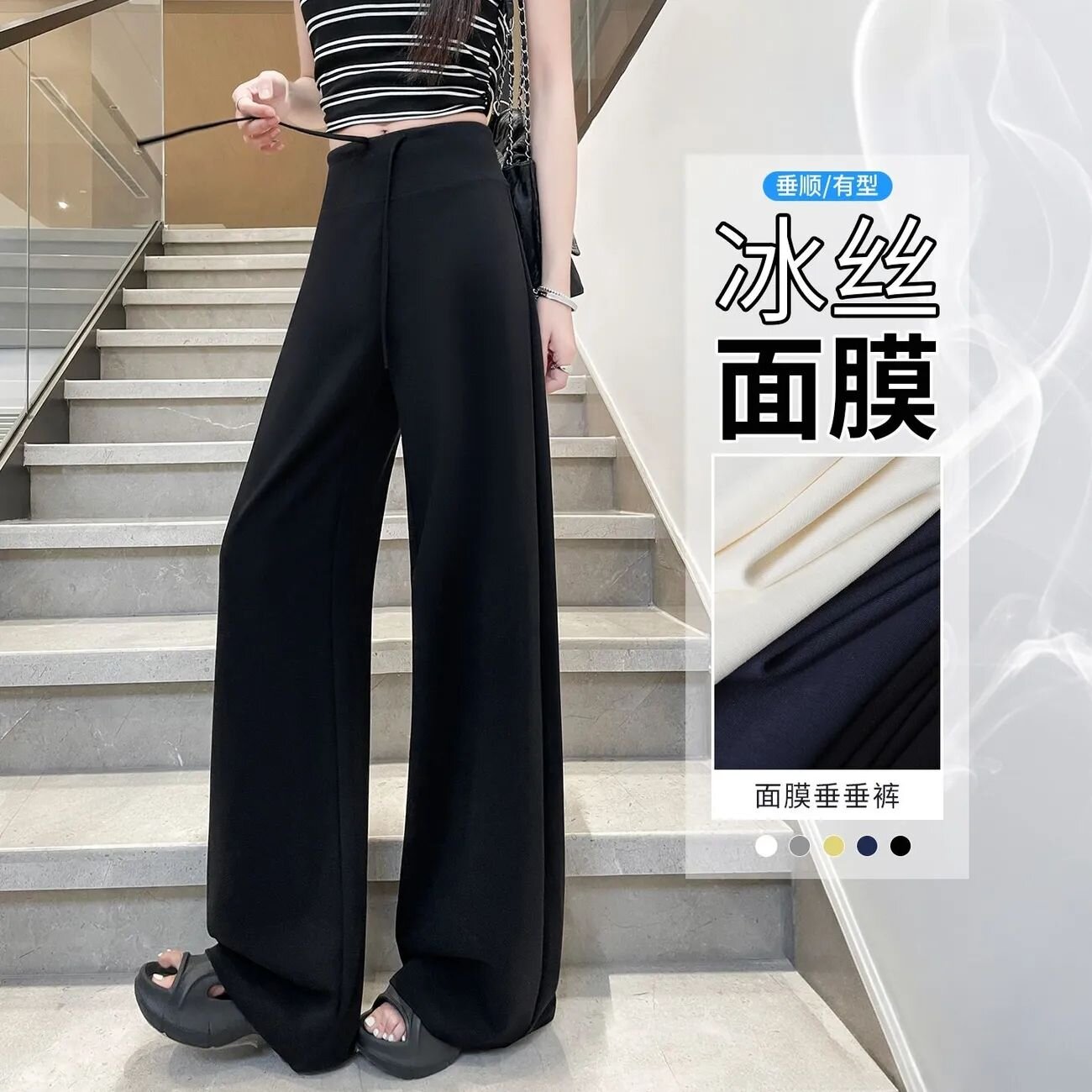 실사 배 종류 몸 검정색 넓은 다리 정장 바지 여성 2025 여름 새로운 루즈핏 슬림해 보이는 고급 센스 캐주얼 바지