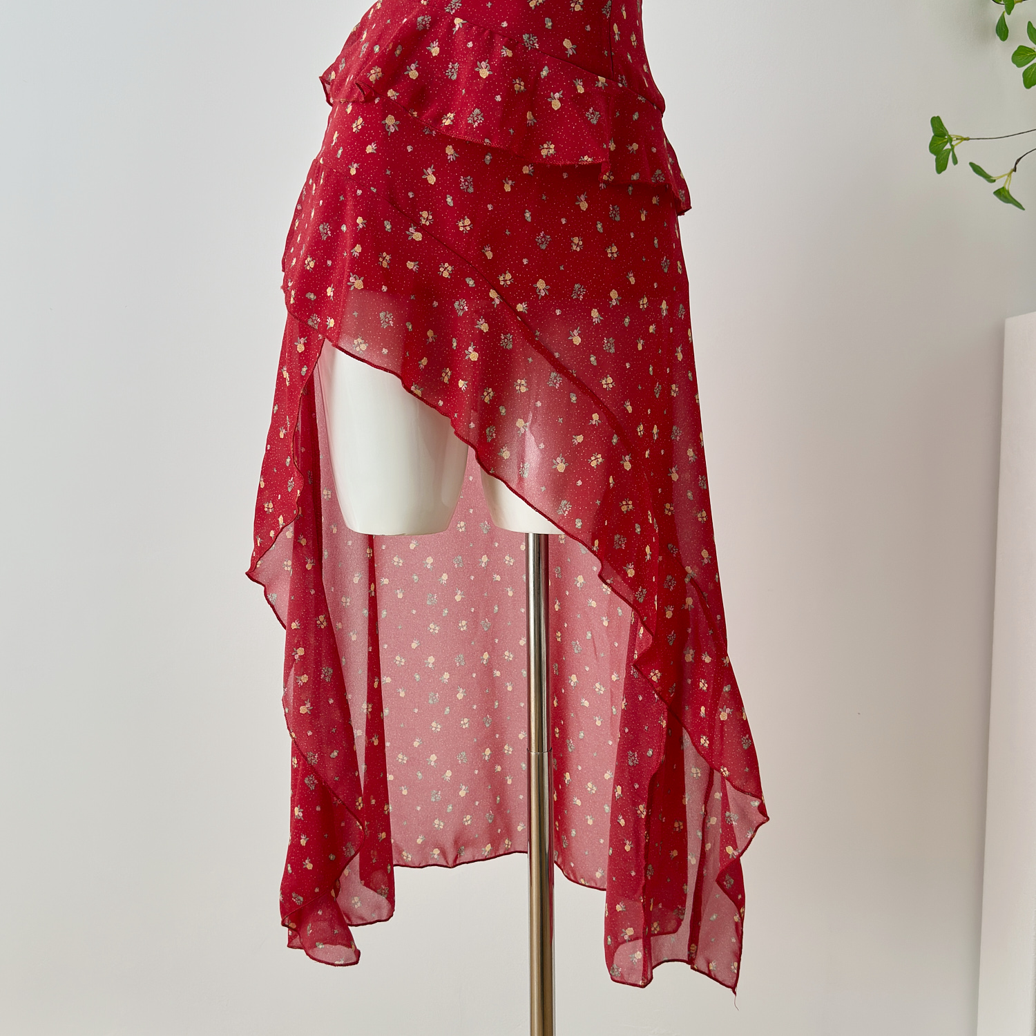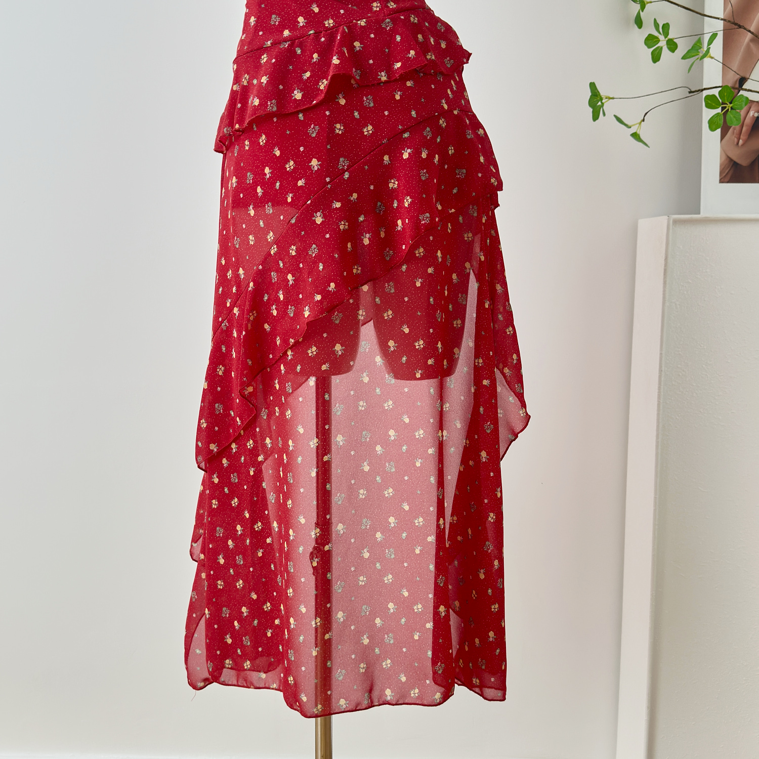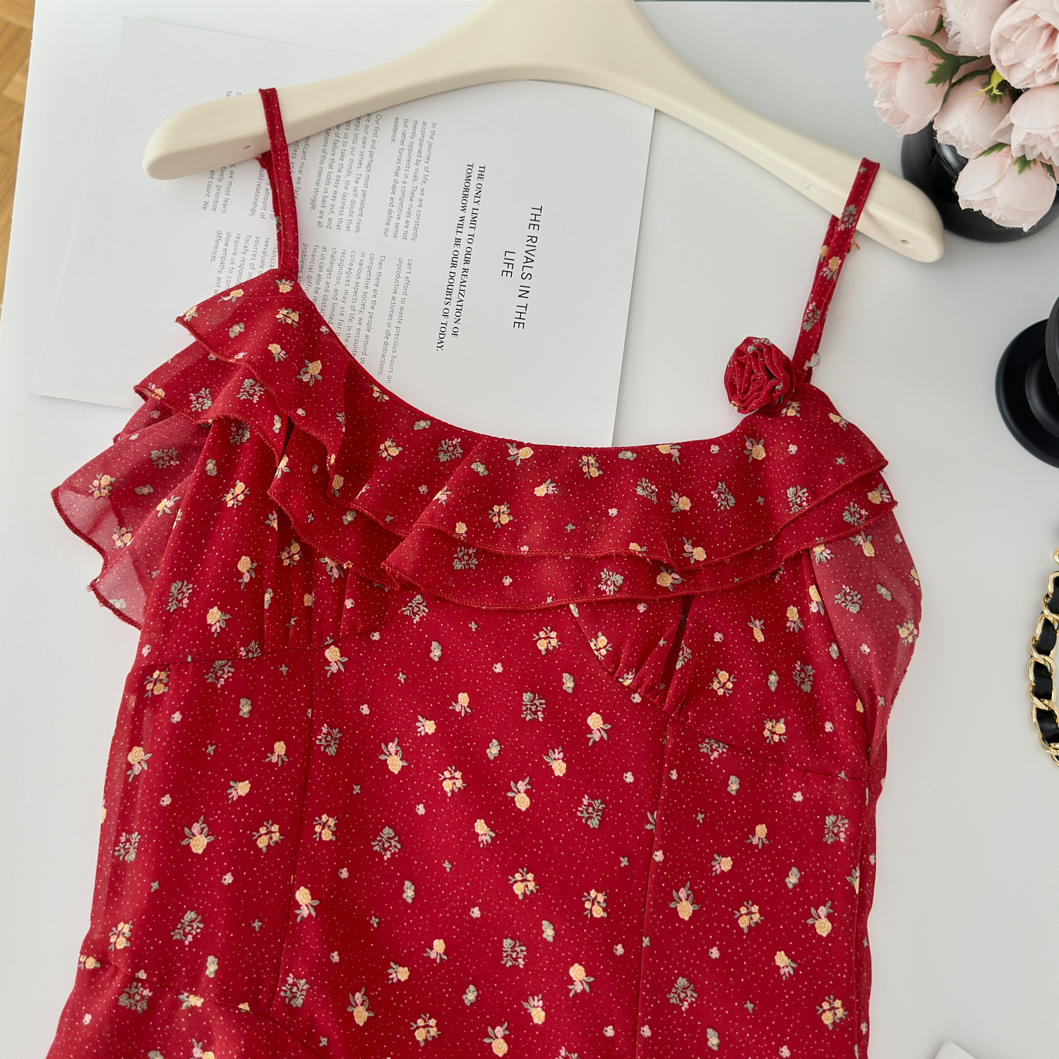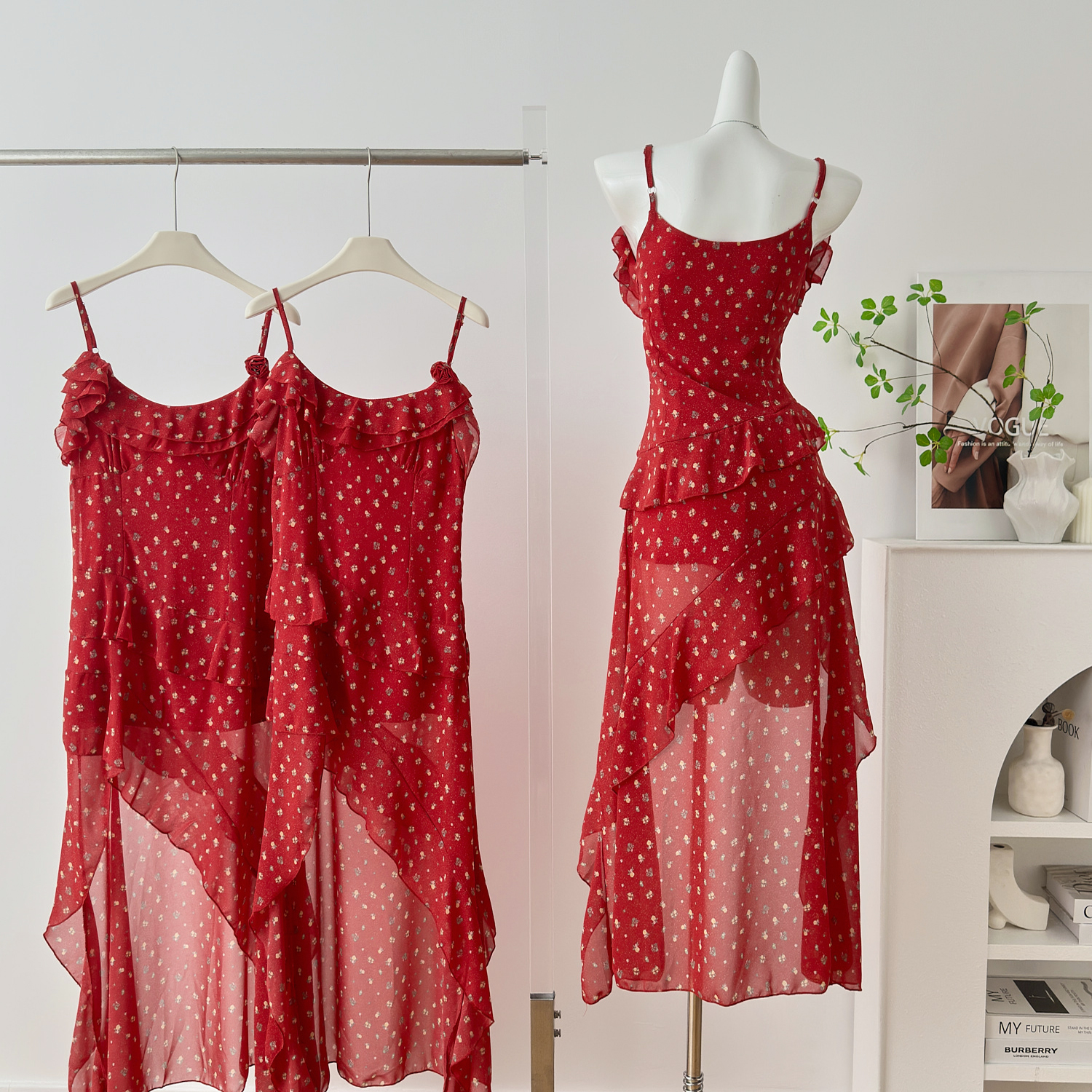 프랑스식 아름다운 프릴 꽃무늬 슬립 여성 드레스 여름 해변가 휴가 품격 몸매 가꾸기 타이트 스커트 길다 치마