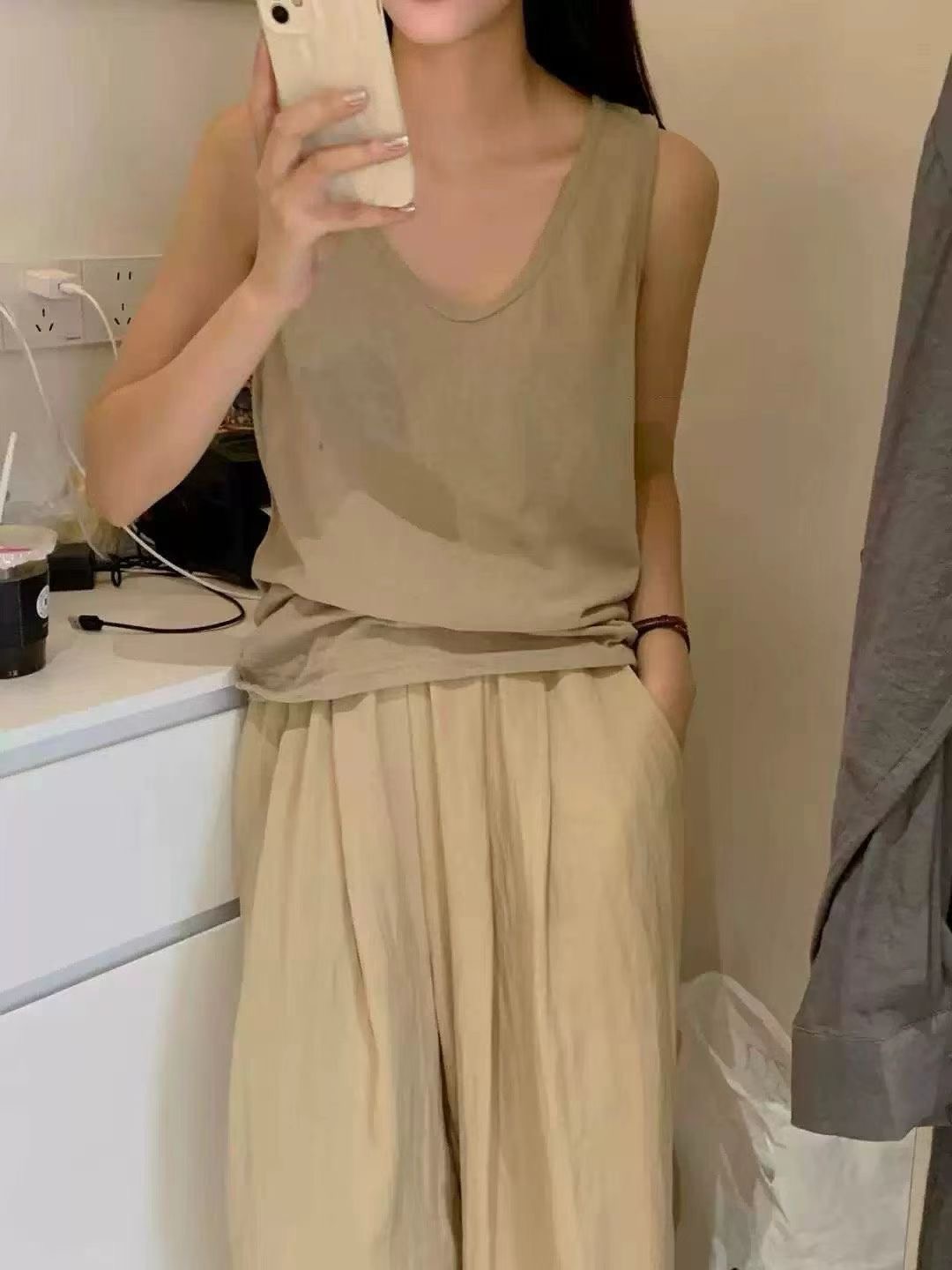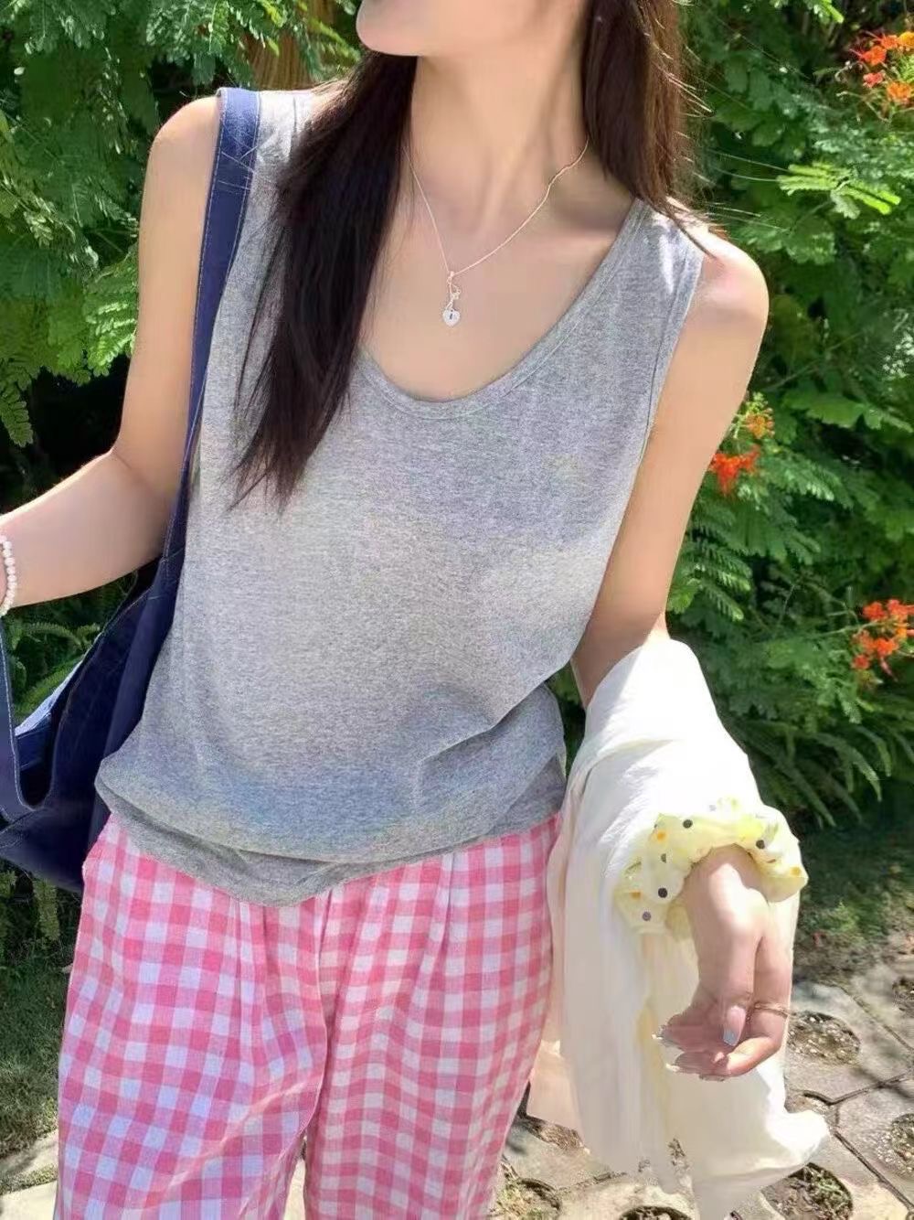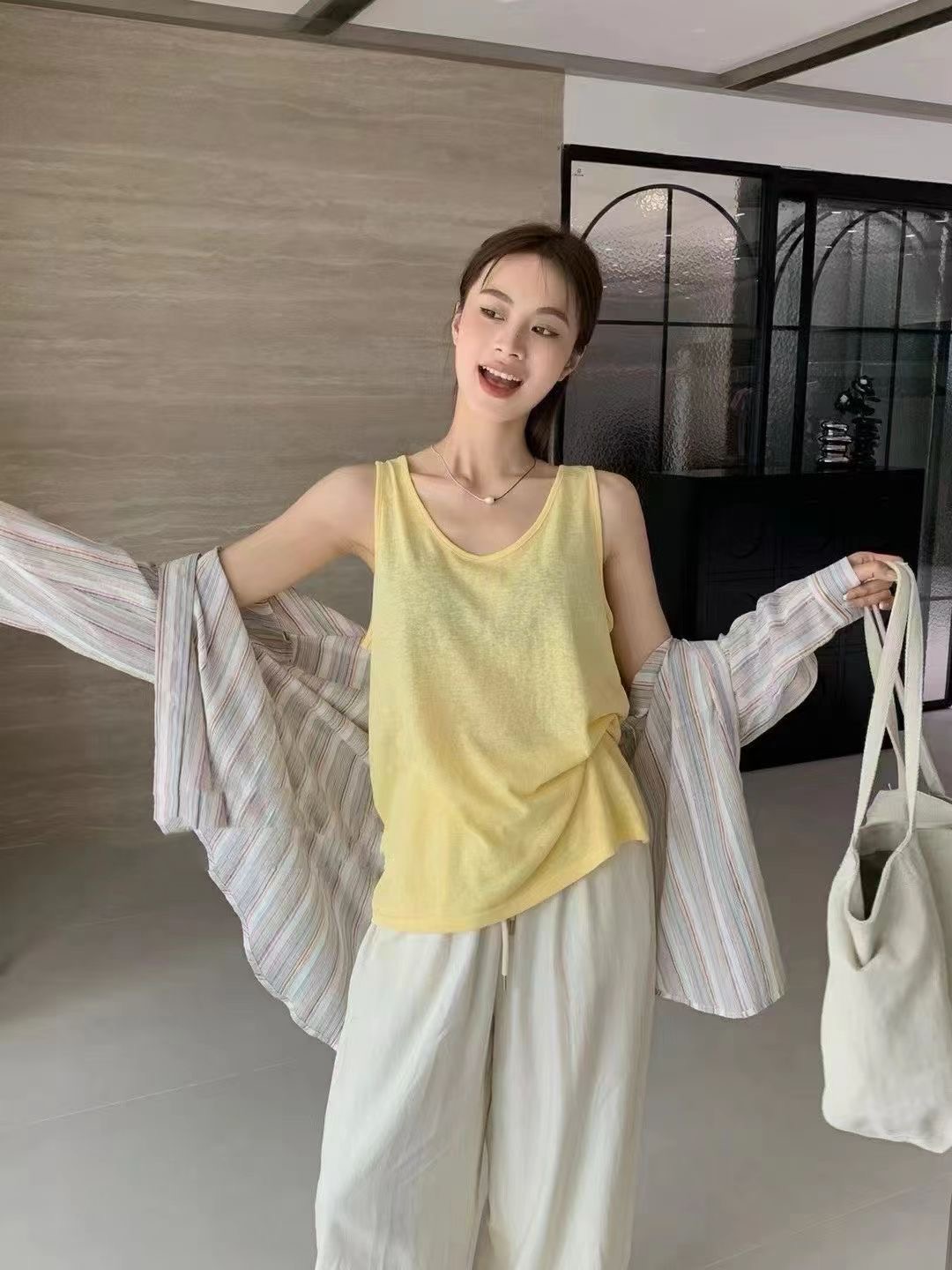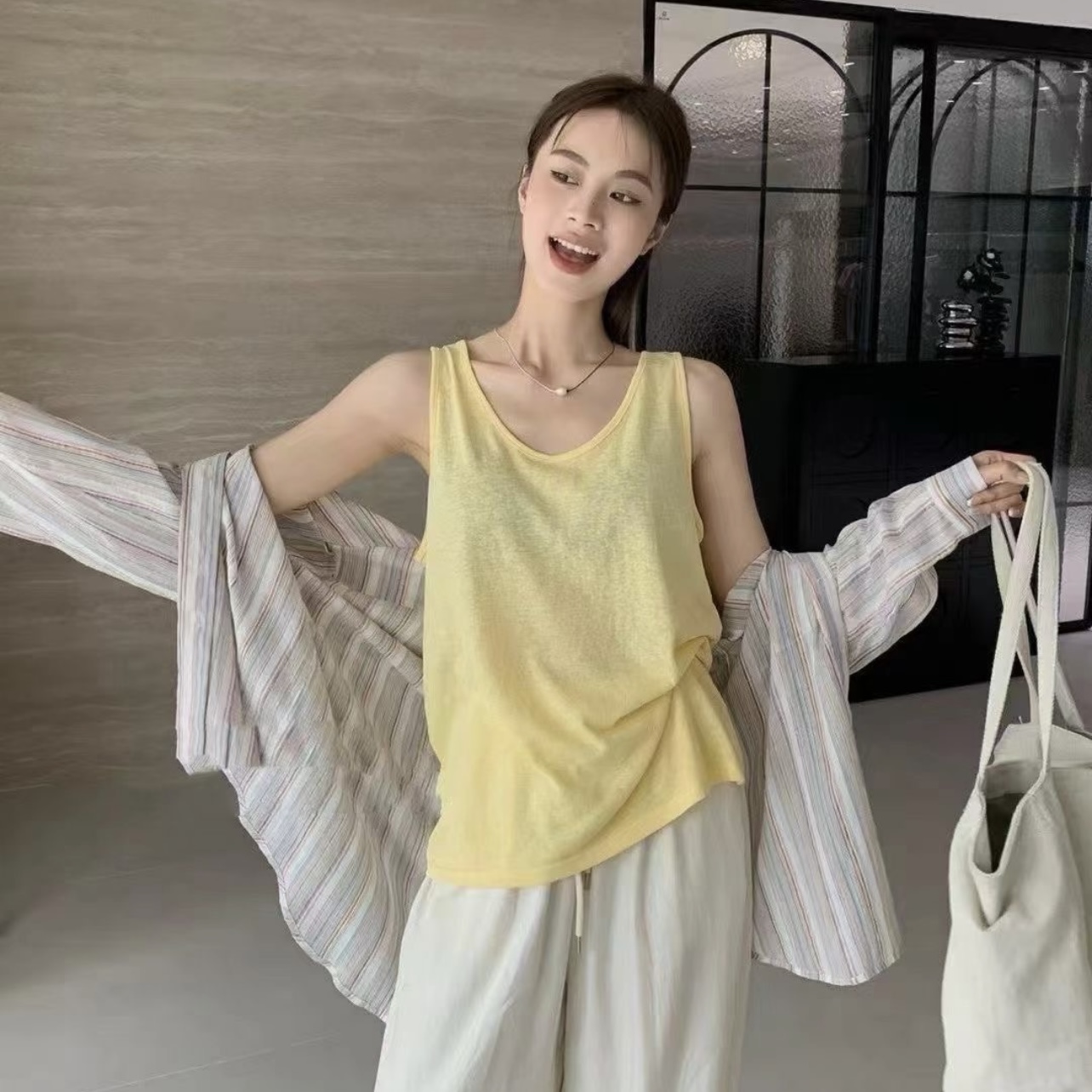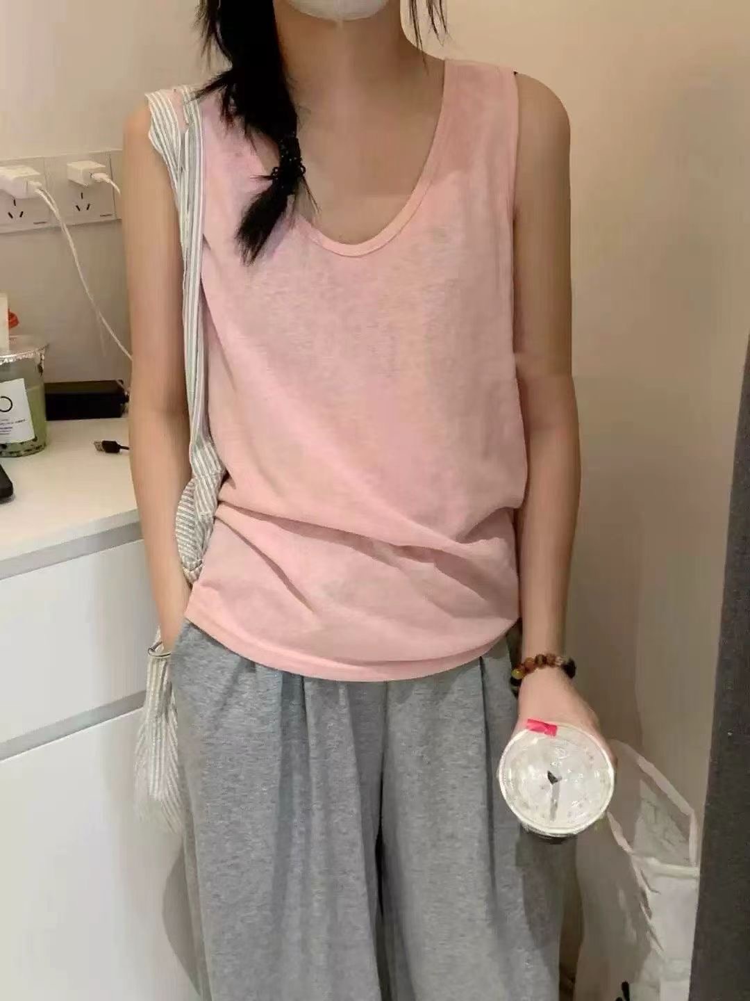 사탕 색상 대나무 마디 면 캐주얼 인사이드 가져 가라. 외출용 여름 슬림해 보이는 통기성 편안함 여성 조끼