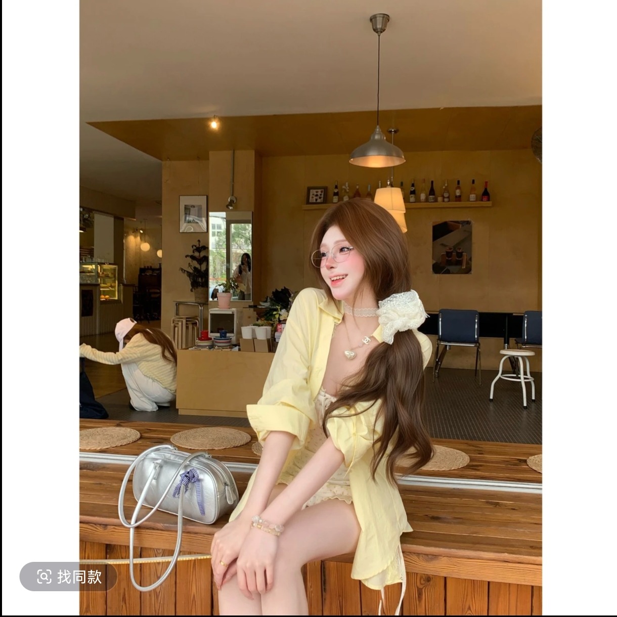 루이 茜 웨이 Sher S 레몬 황색 초여름 느긋한 바람 오리지널 작은 대중 디자인 오픈 가디건 드레스 r50036-1x