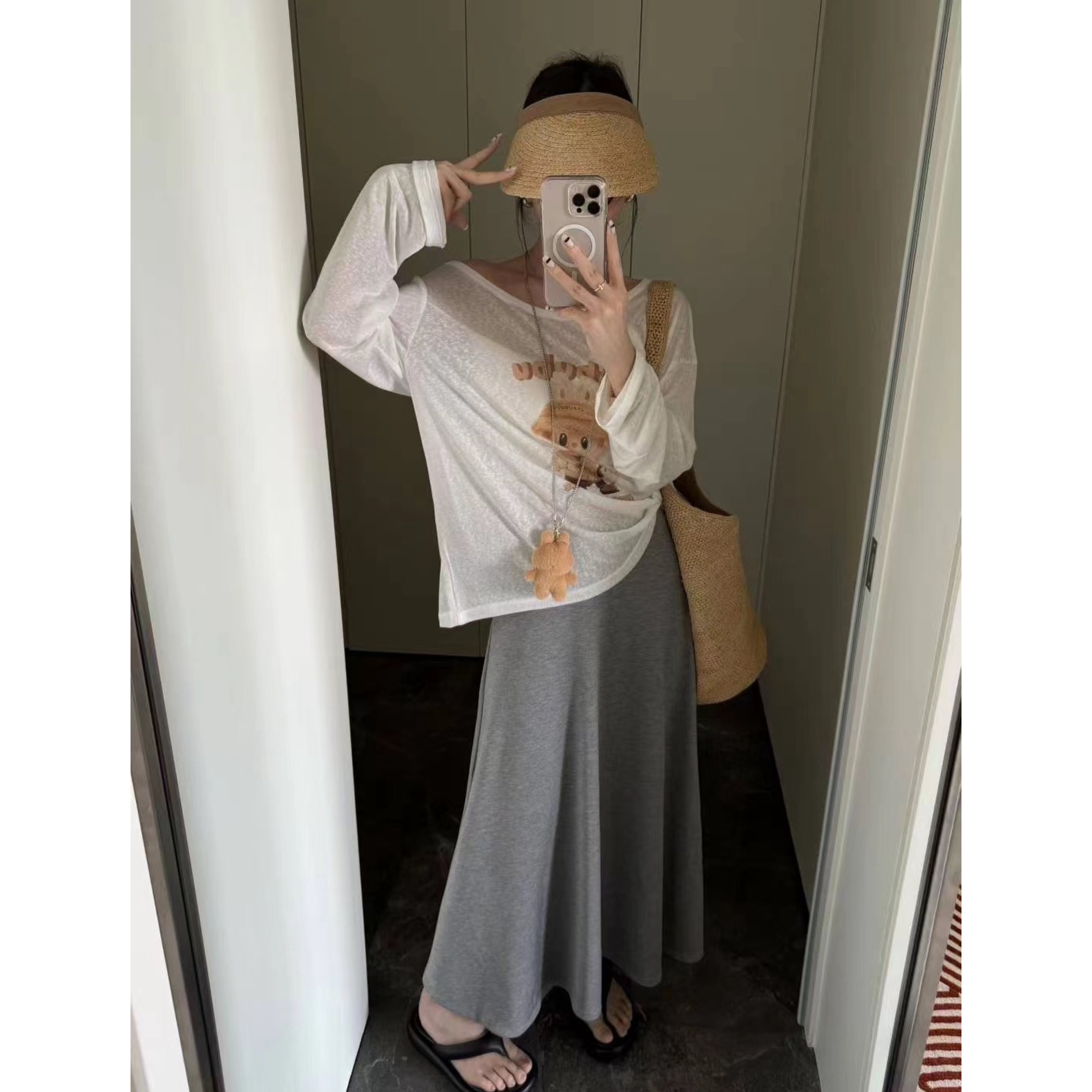 10 하나의 돌 荡荡 느슨함 대 네클라인 루즈핏 라운드 넥 자외선 차단 긴팔 티셔츠 여성 여름 실크 얇은 스타일 캐주얼 맨위