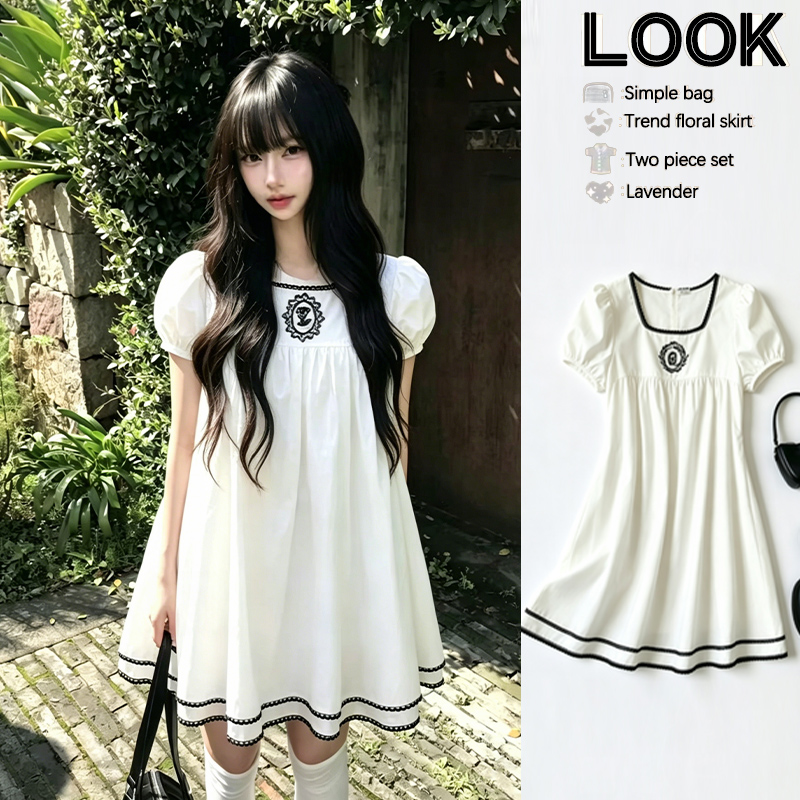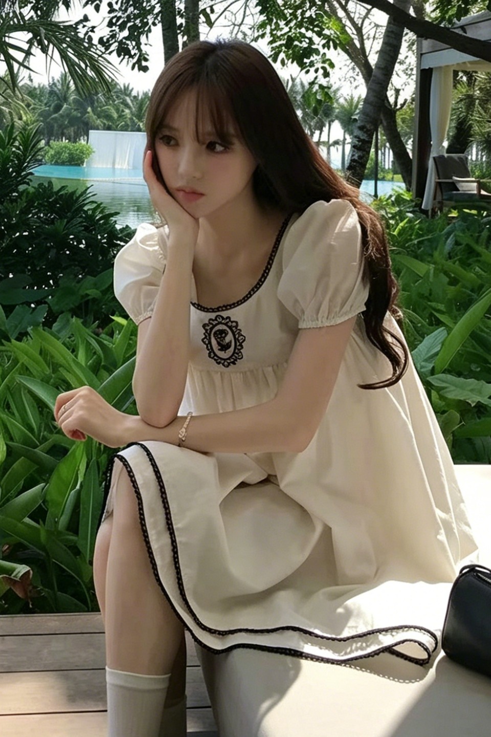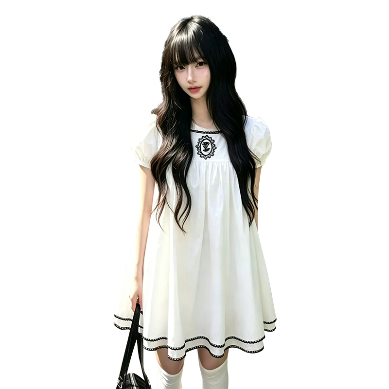 실사 지금 임산부 블랙 장미 자수 레이스 치마 이중층 플러스 금액 주간 실크 고급 센스 화이트 거품 소매