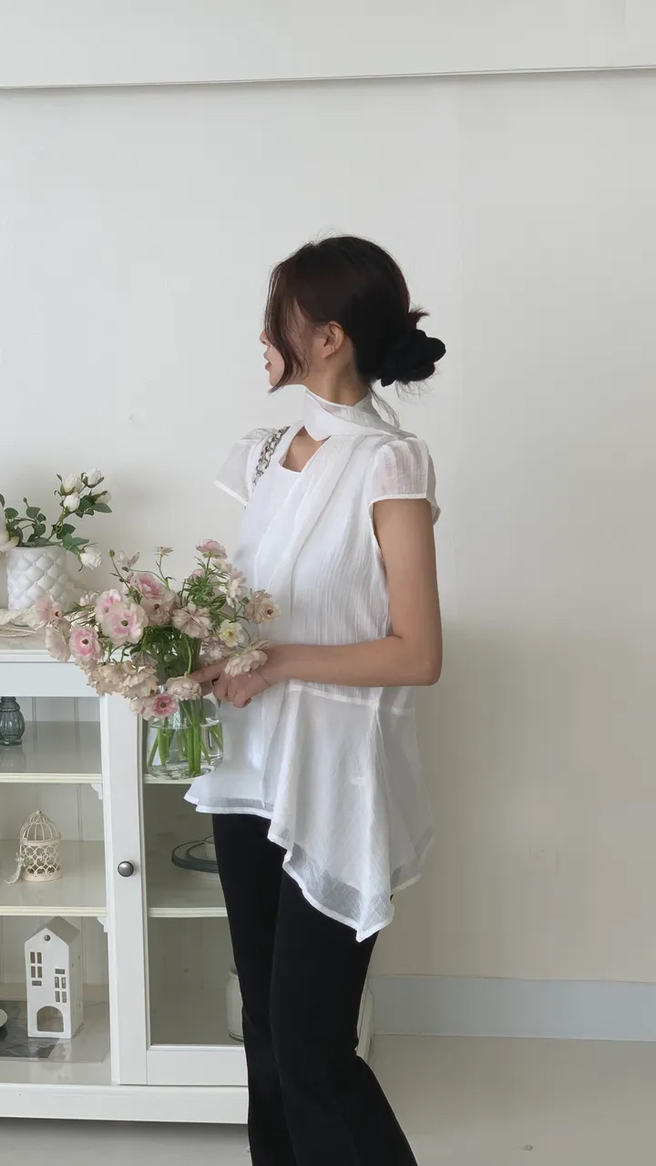 있음 선적 2026 chic 한국 스타일 불규칙 라운드 넥 셔츠