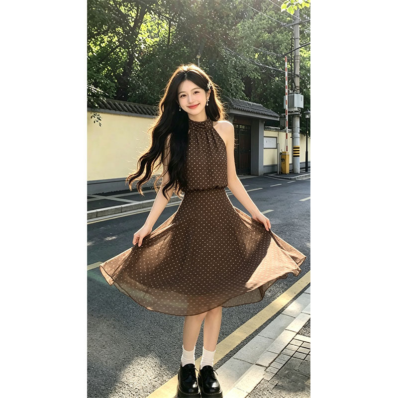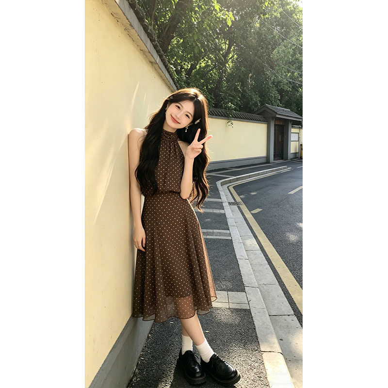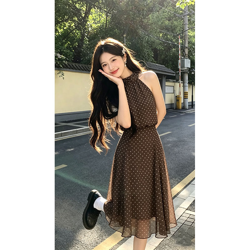 검정색 도트 무늬 캐미솔 여름 휴가 순수한 욕망 바람 품격 루즈핏 슬림해 보이는 민소매 아름다운 외출용 맨위