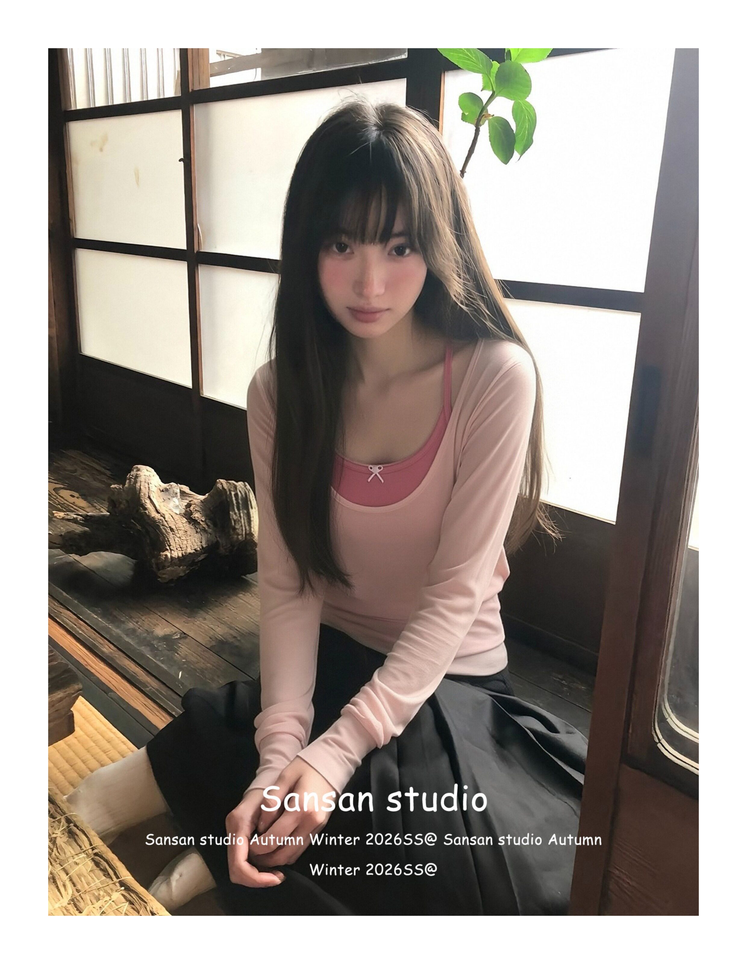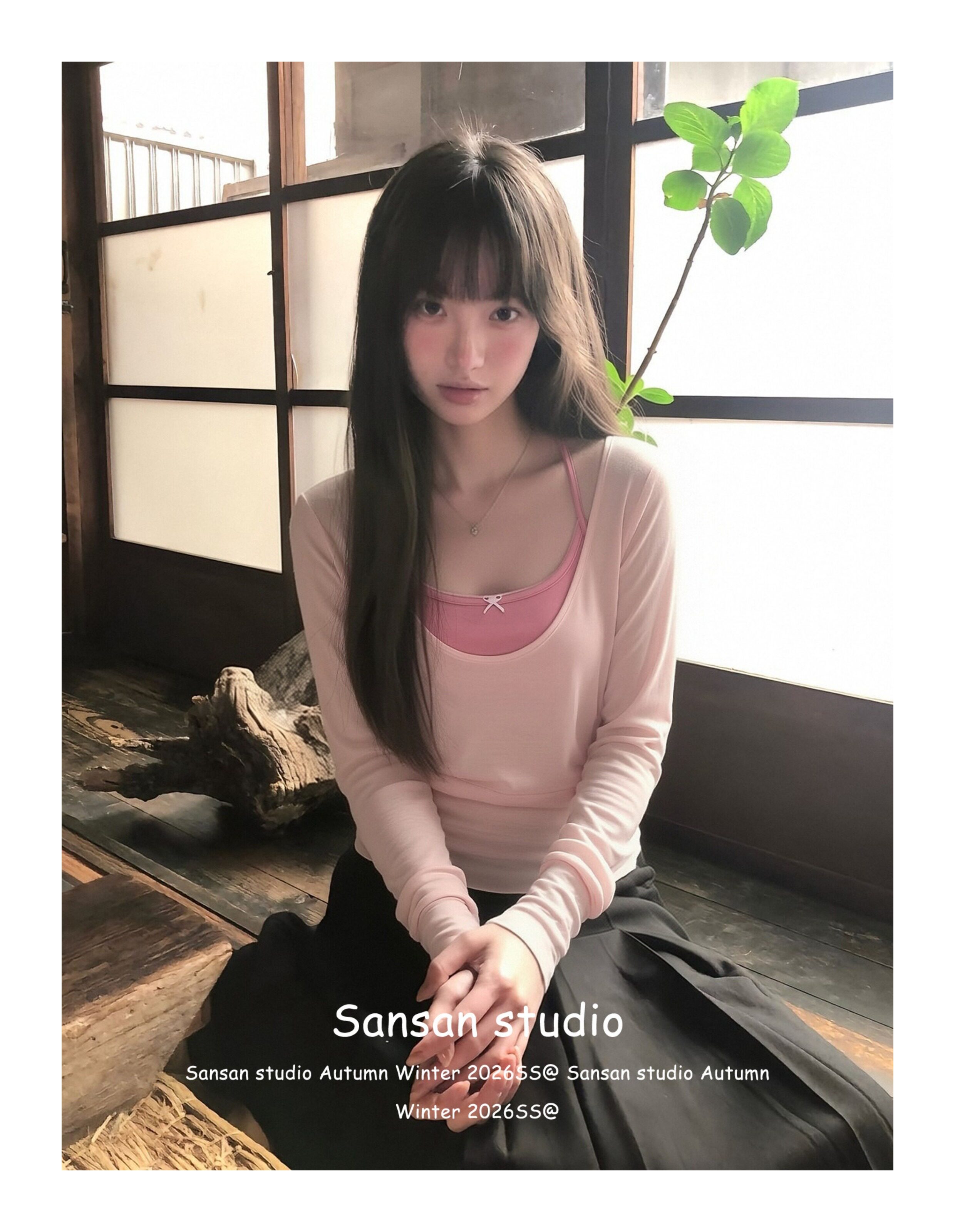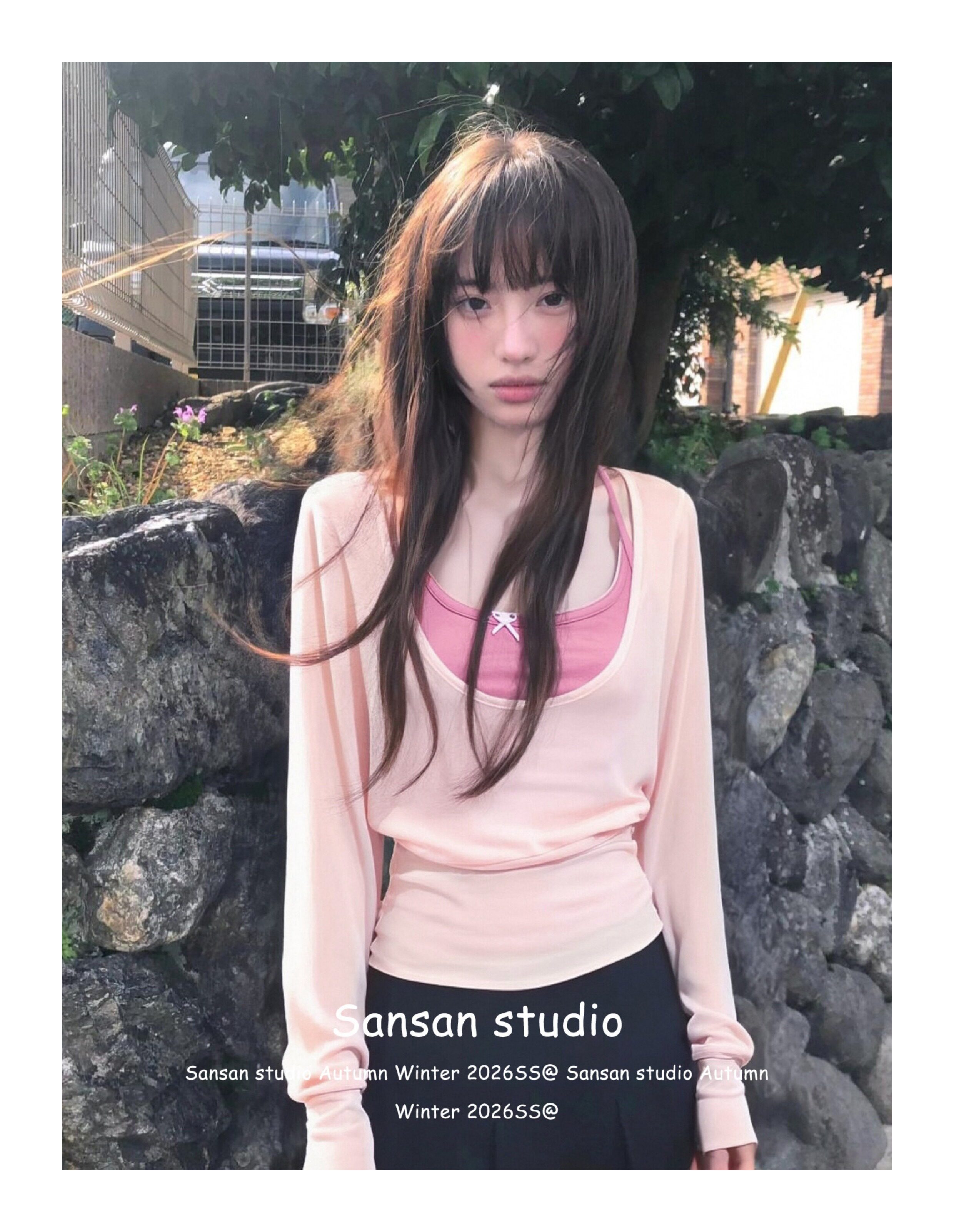 한국 페이크 레이어드 고유 한 아름다운 여성 봄 새로운 2026 프랑스식 패션 품격 맨위
