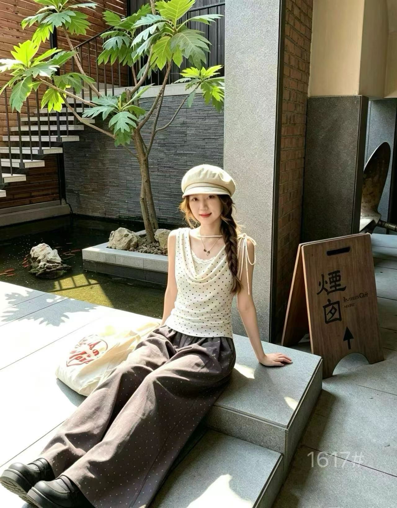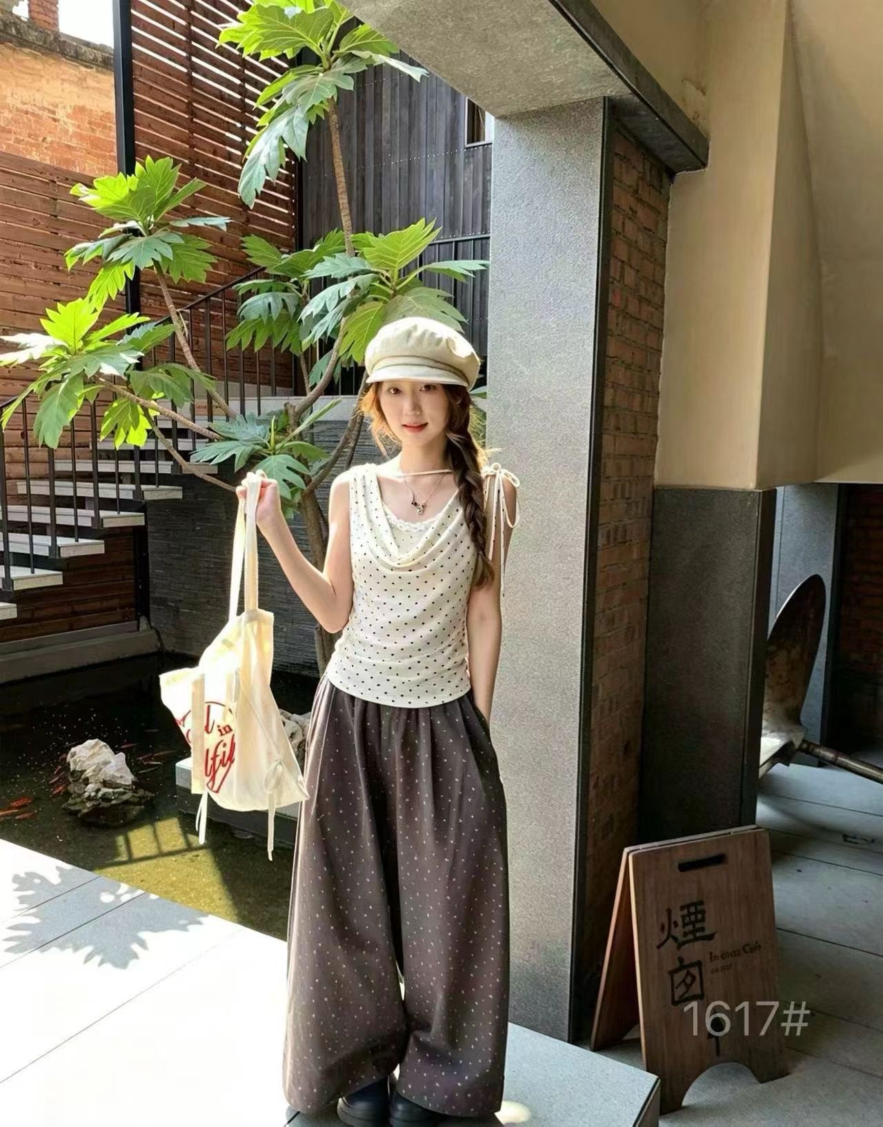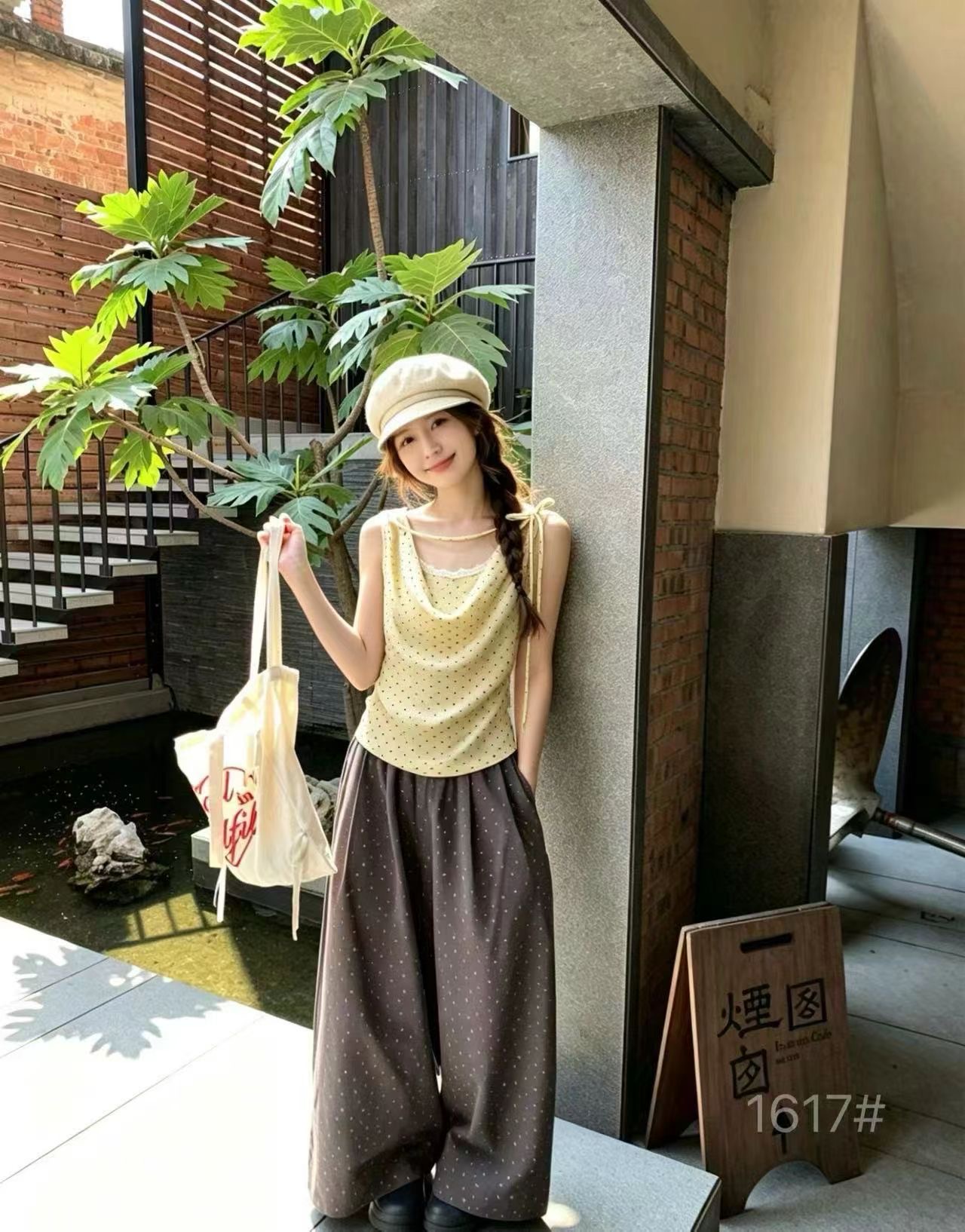 이른 봄 새로운 가슴 패드 고정 하나 도트 무늬 나비 뒤로 캐미솔 만나는 외출용