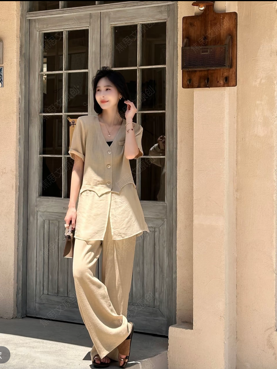 한 세대 라미 높음 포화 상태 신선함 단색 셔츠 느긋한 품격 캐주얼 자외선 차단 재킷 맨위 10 바지