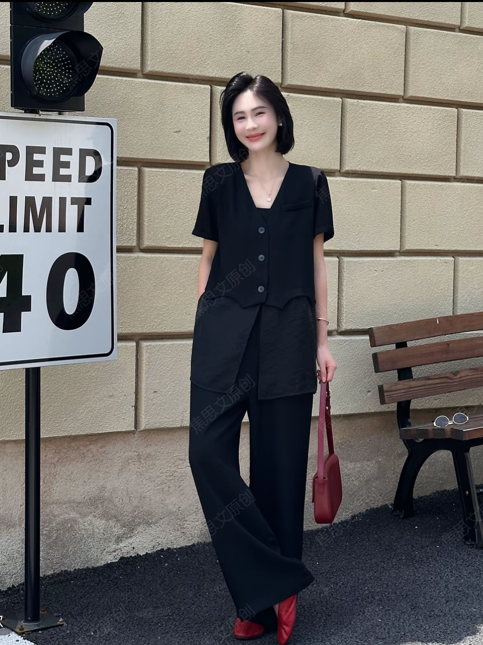 정면 플리츠 단추 패션 여름 클래식 다용도 뽕나무 누에 실크 더블 조 티셔츠 10 바지