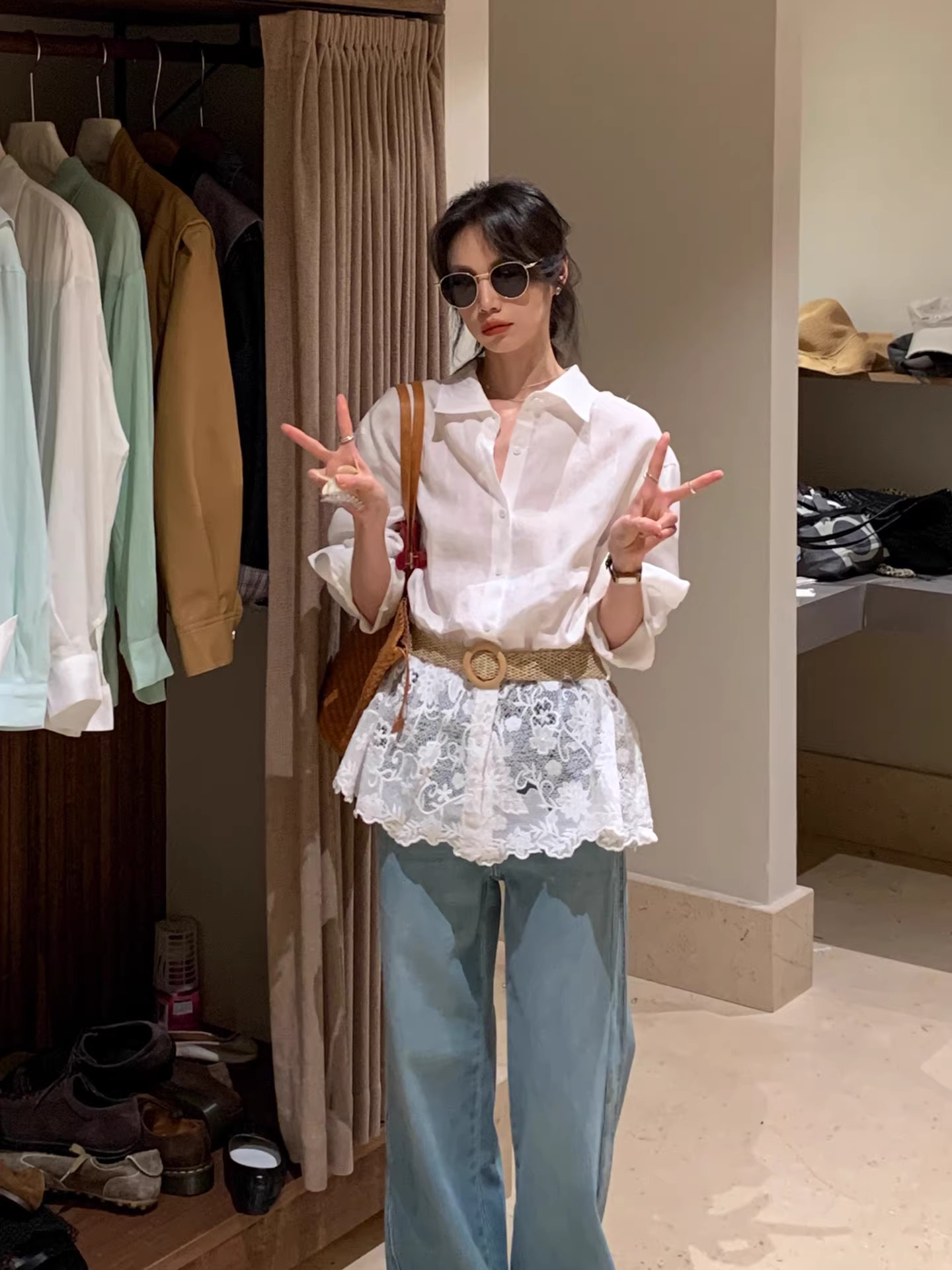 정가 재고 있음 출퇴근 바람 레이스 조각 아마 긴팔 여성 셔츠 2026 여름 새로운 다용도 루즈핏 슬림해 보이는