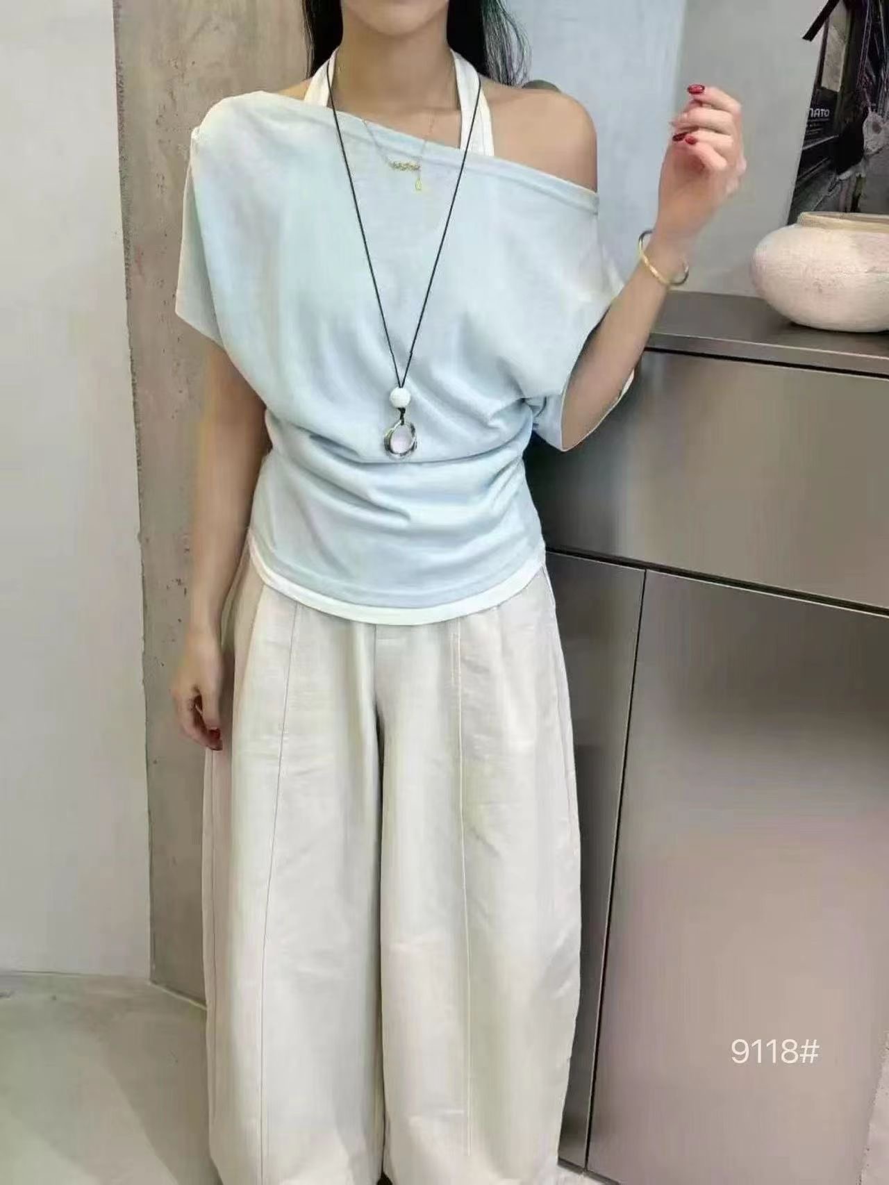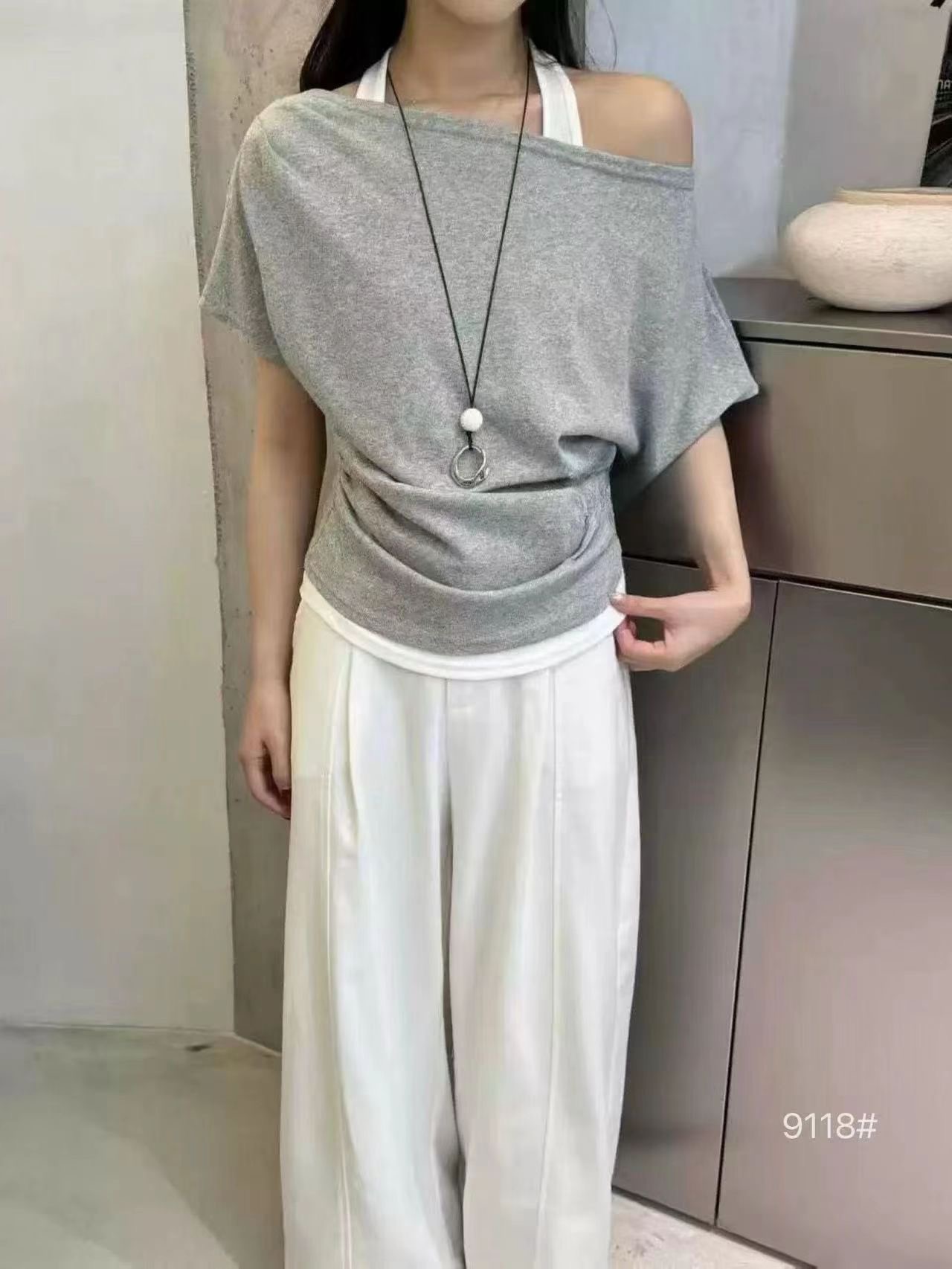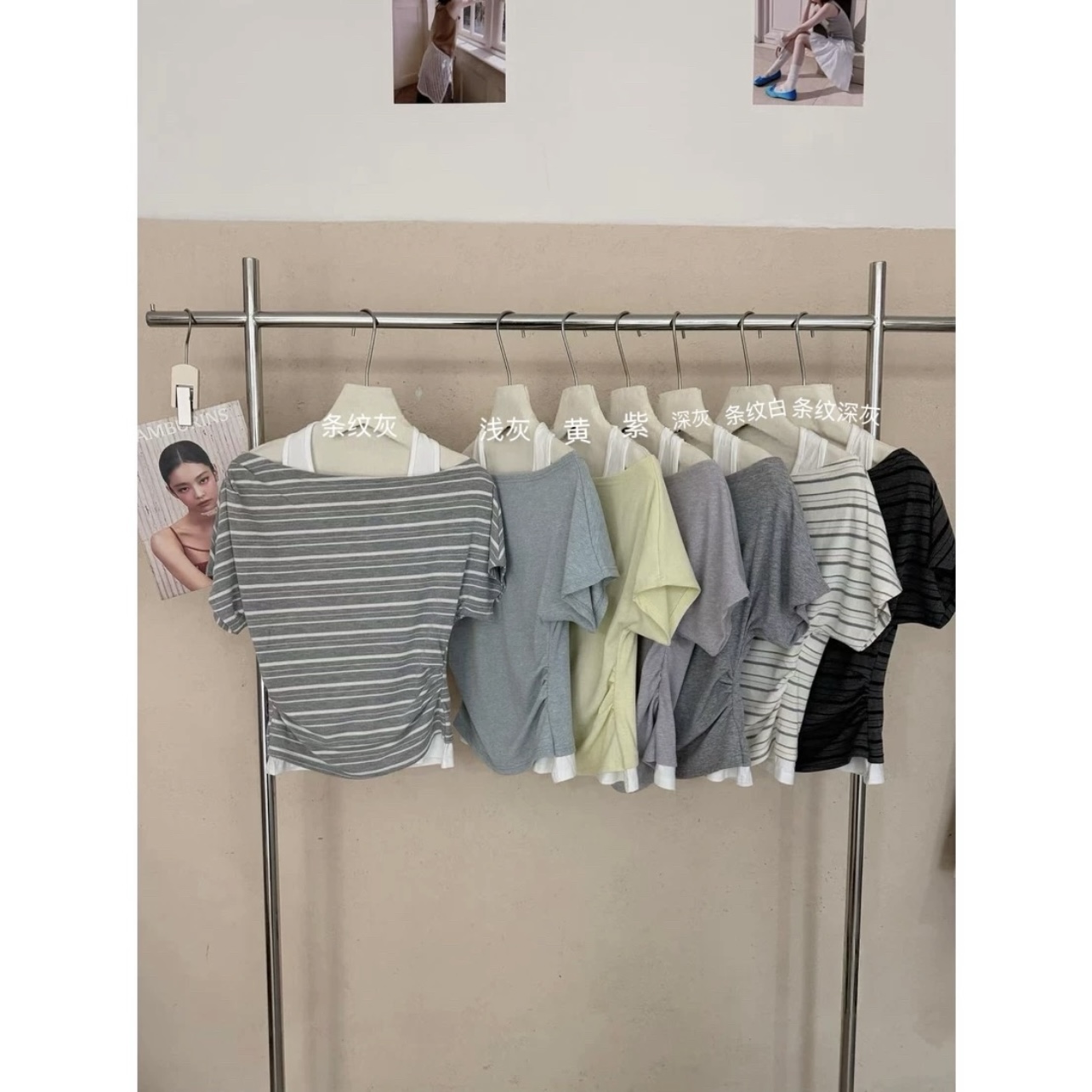 한 부서 초여름 착용 가져 가라. 고유 한 스트랩 비스듬한 어깨 의류 여성 2026 여름 새로운 반팔 티셔츠 디자인 센스 작은 대중