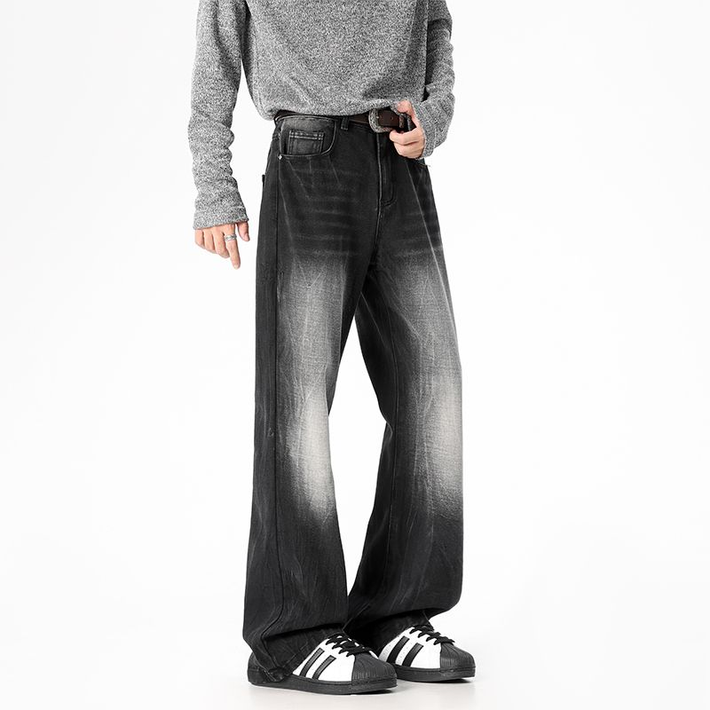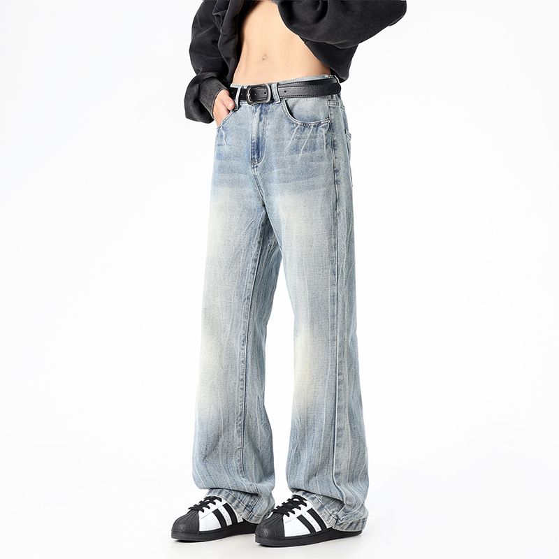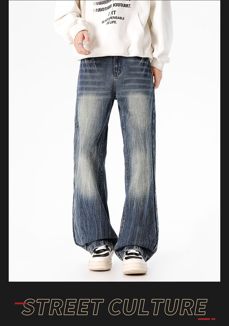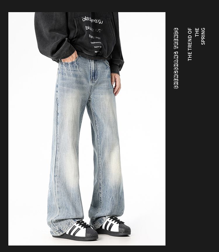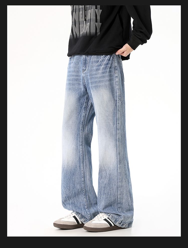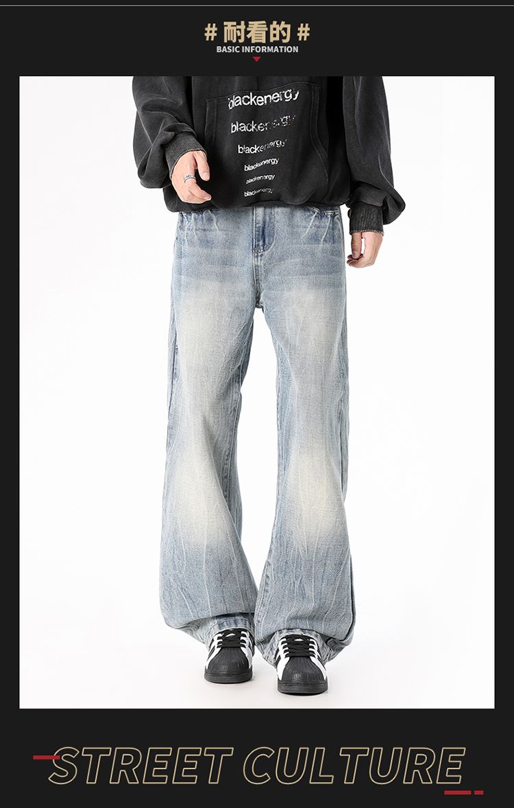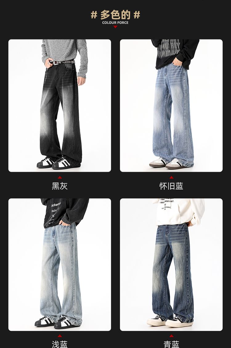 사계절 워시 물 바닥 청소 남성 청바지 레트로 항구 바람 루즈핏 스트레이트 트렌드 다용도 바지 와이드 레그 팬츠 긴 바지