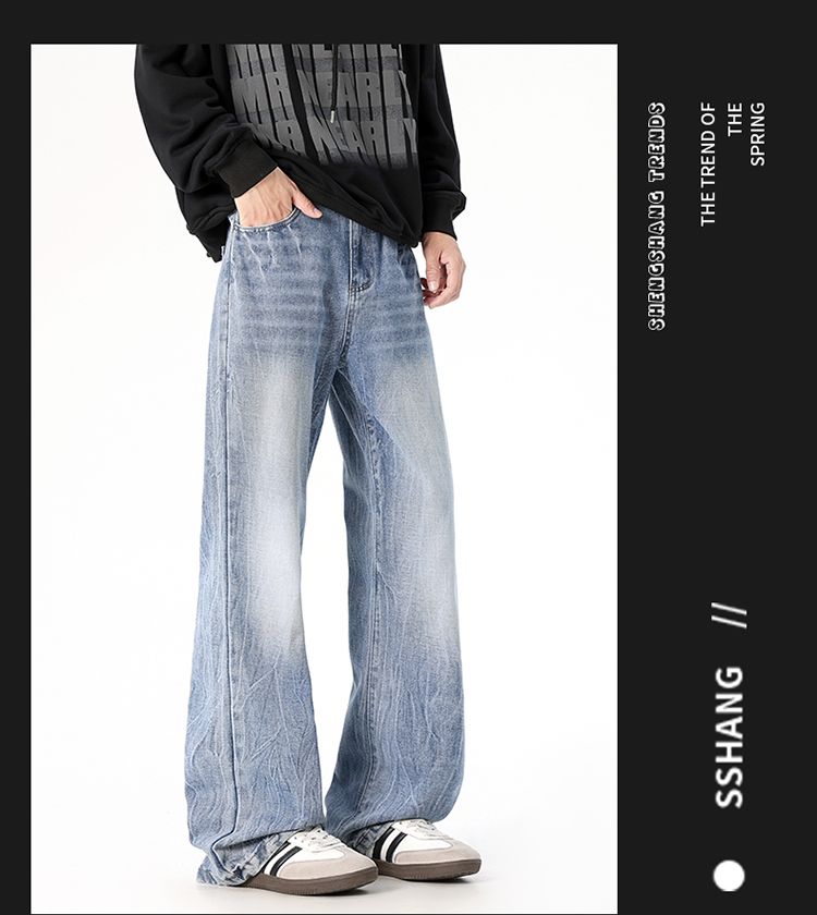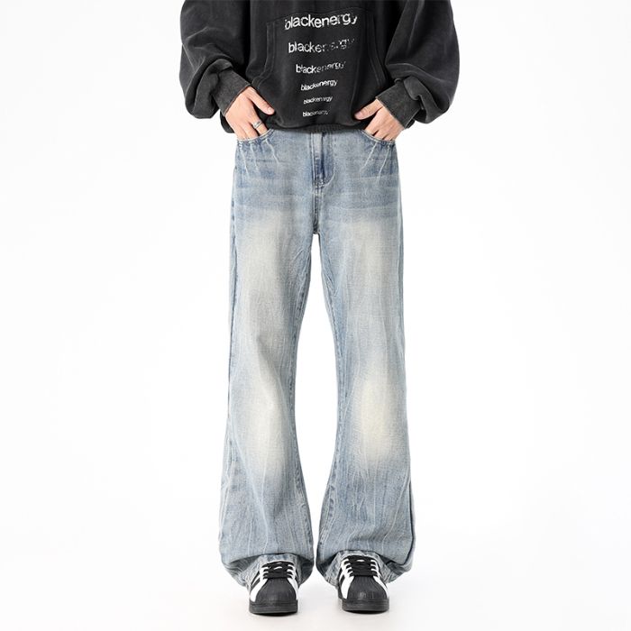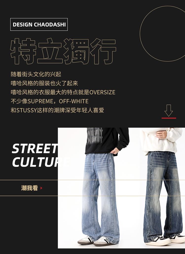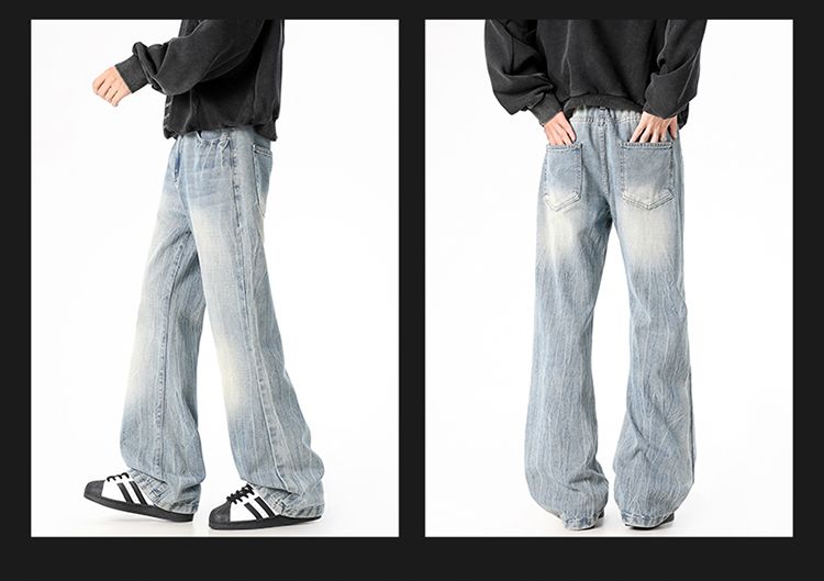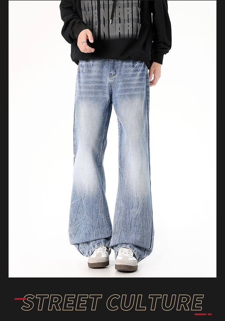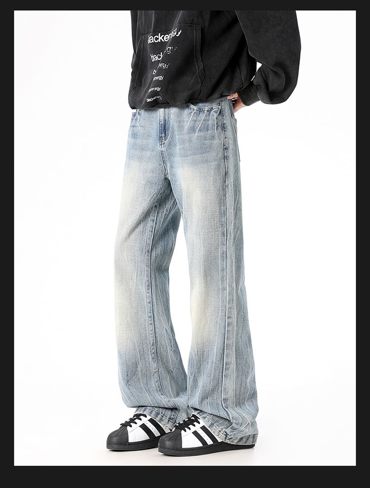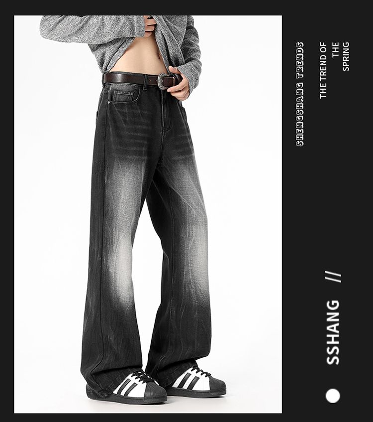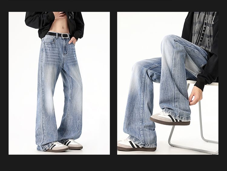 사계절 워시 물 바닥 청소 남성 청바지 레트로 항구 바람 루즈핏 스트레이트 트렌드 다용도 바지 와이드 레그 팬츠 긴 바지