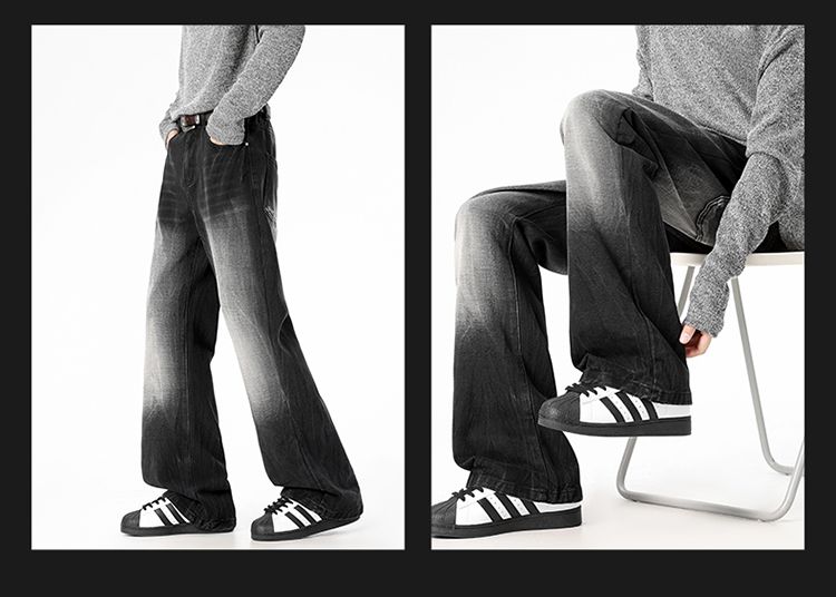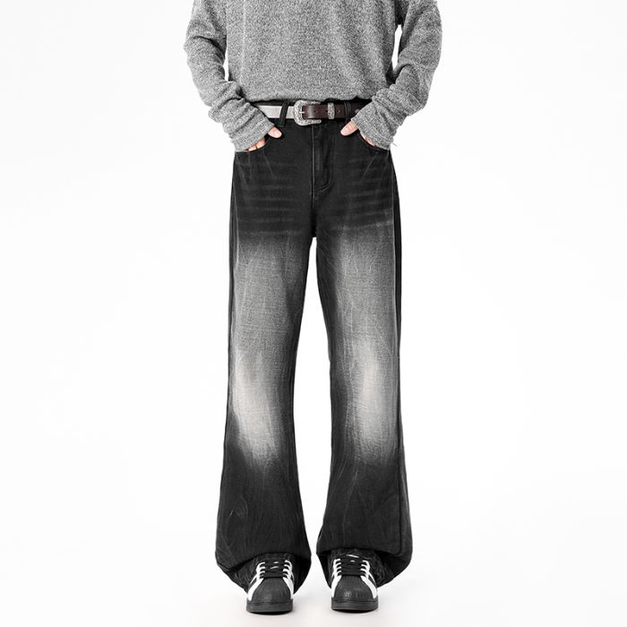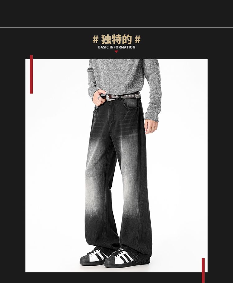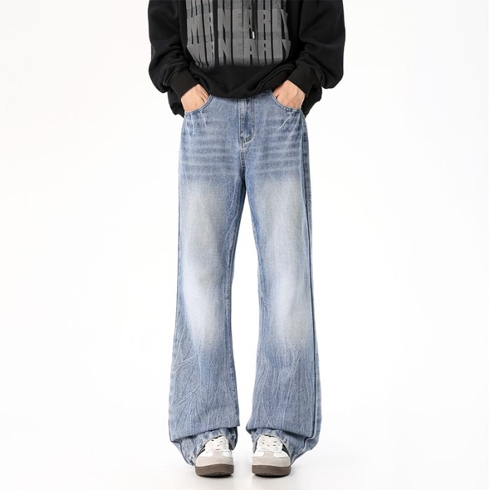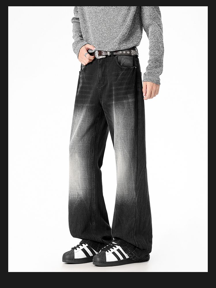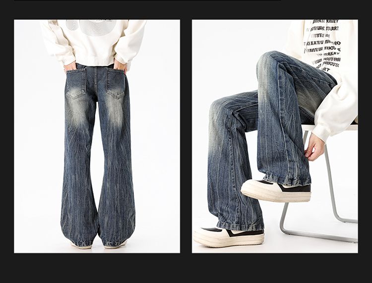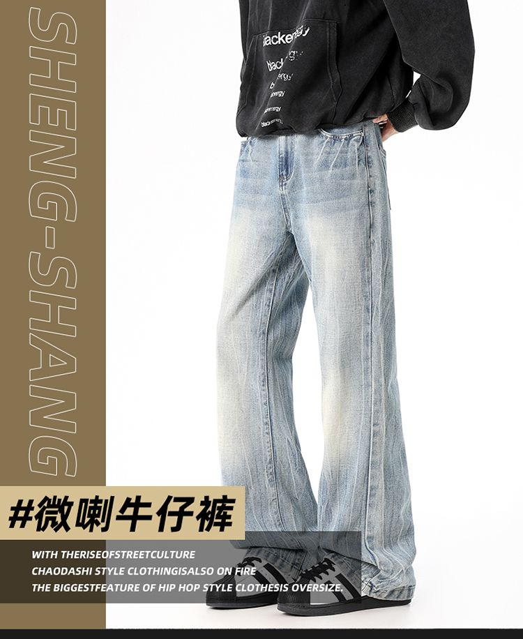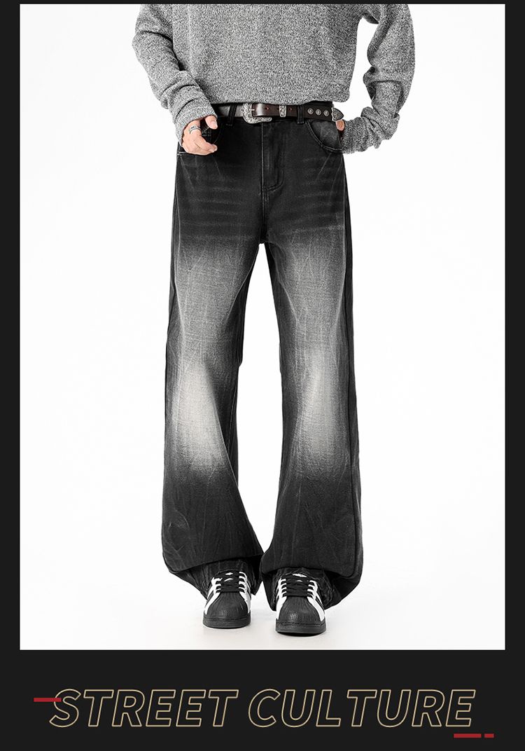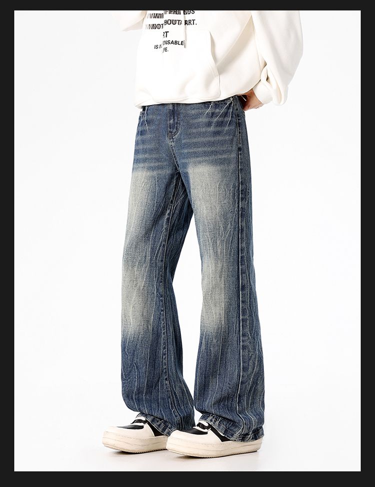 사계절 워시 물 바닥 청소 남성 청바지 레트로 항구 바람 루즈핏 스트레이트 트렌드 다용도 바지 와이드 레그 팬츠 긴 바지