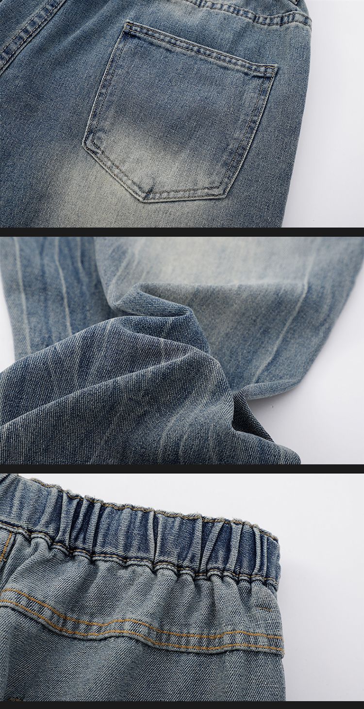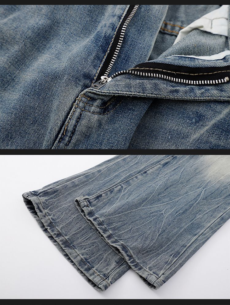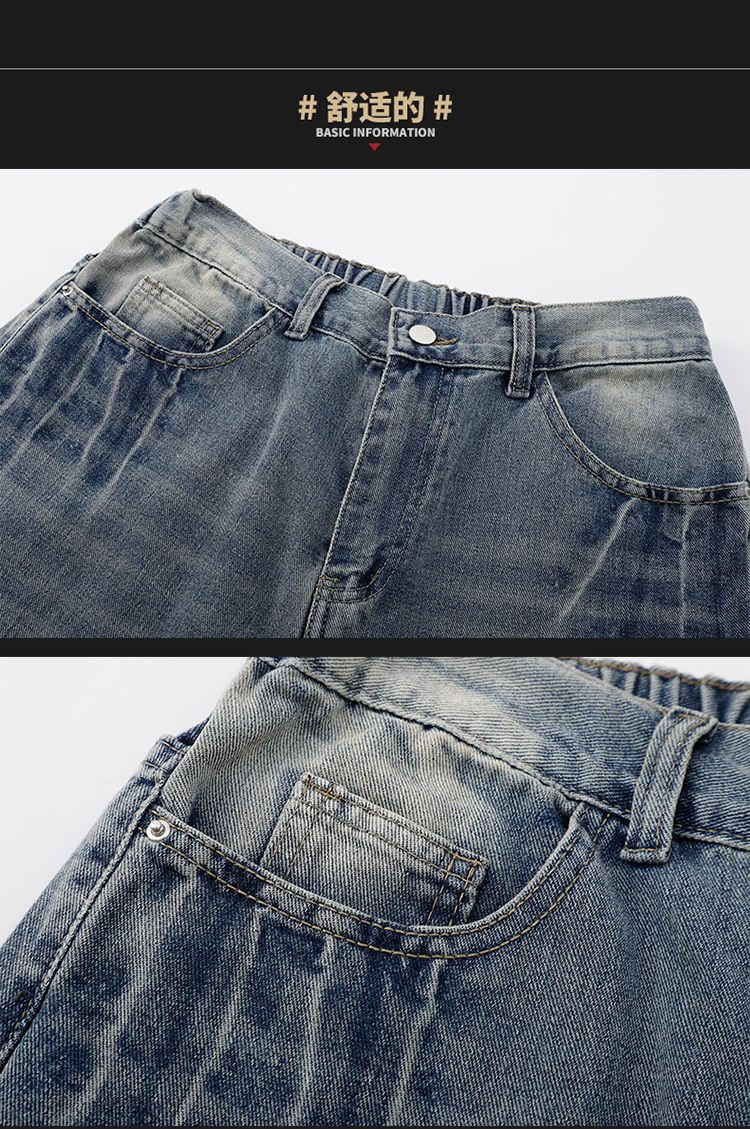 사계절 워시 물 바닥 청소 남성 청바지 레트로 항구 바람 루즈핏 스트레이트 트렌드 다용도 바지 파쇄 된 바지 긴 바지