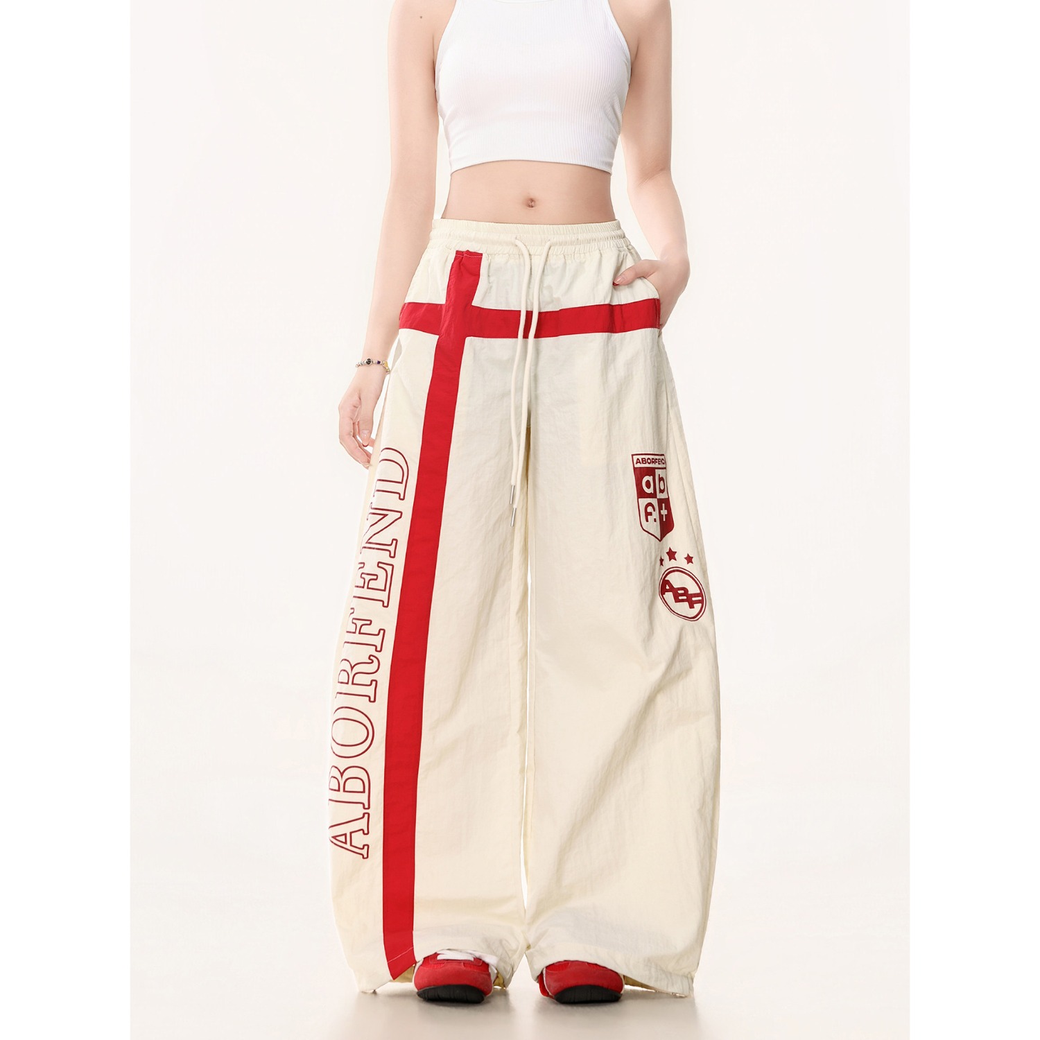 아메리칸 배색 십자가 프린트 펌프 로프 워크웨어 캐주얼 바지 여자 봄 디자인 센스 루즈핏 와이드 레그 팬츠