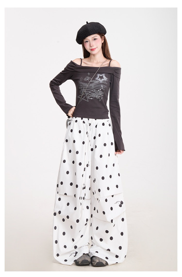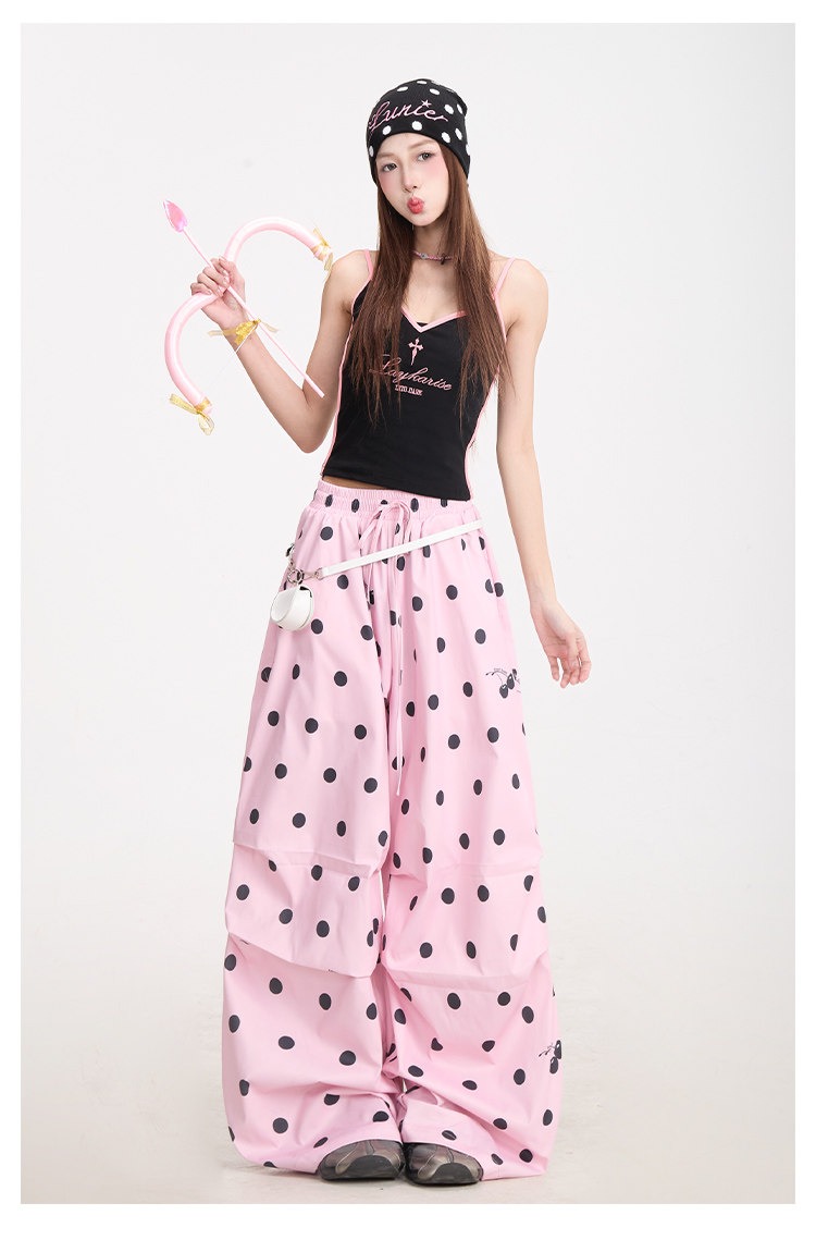 3 차원 허리 머리 조수 브랜드 도트 무늬 프린트 펌프 로프 3 점 바지 여성 2026 여름 핫걸 도파민 스트레이트 반바지