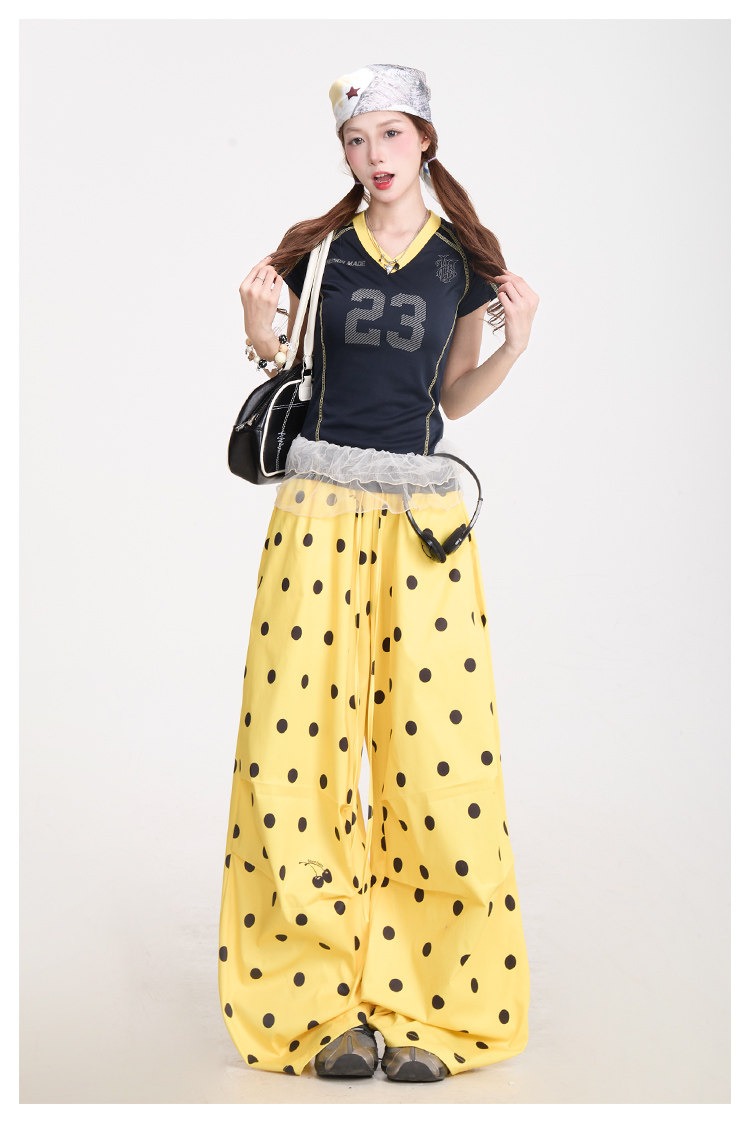 레트로 전체 인쇄 도트 무늬 바지 아이들 아메리칸 주름 루즈핏 와이드 레그 팬츠 봄 여름 루즈핏 캐주얼 바지