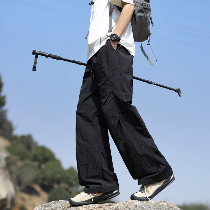 바지 검정색 루즈핏 긴 바지 남성 스트레이트 여름 얼음 실크 운동 캐주얼 바지 슬랙스 패션 트렌드 다용도 바지