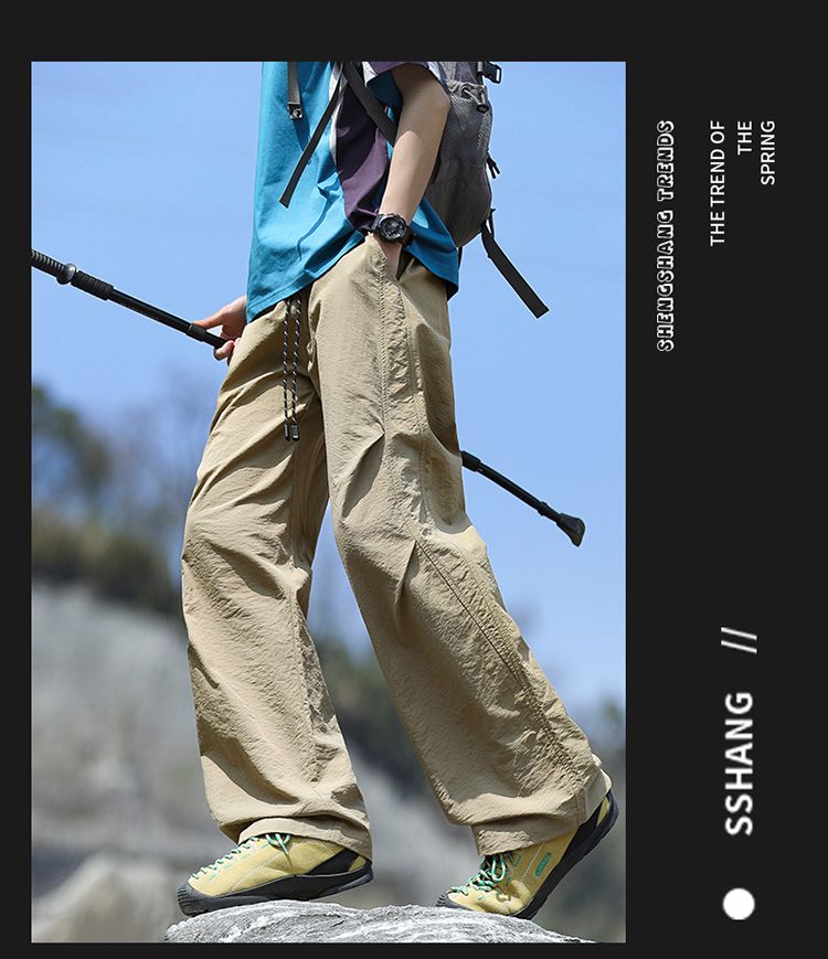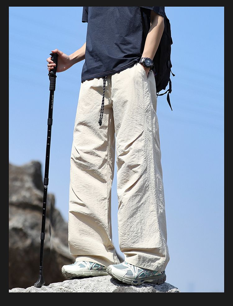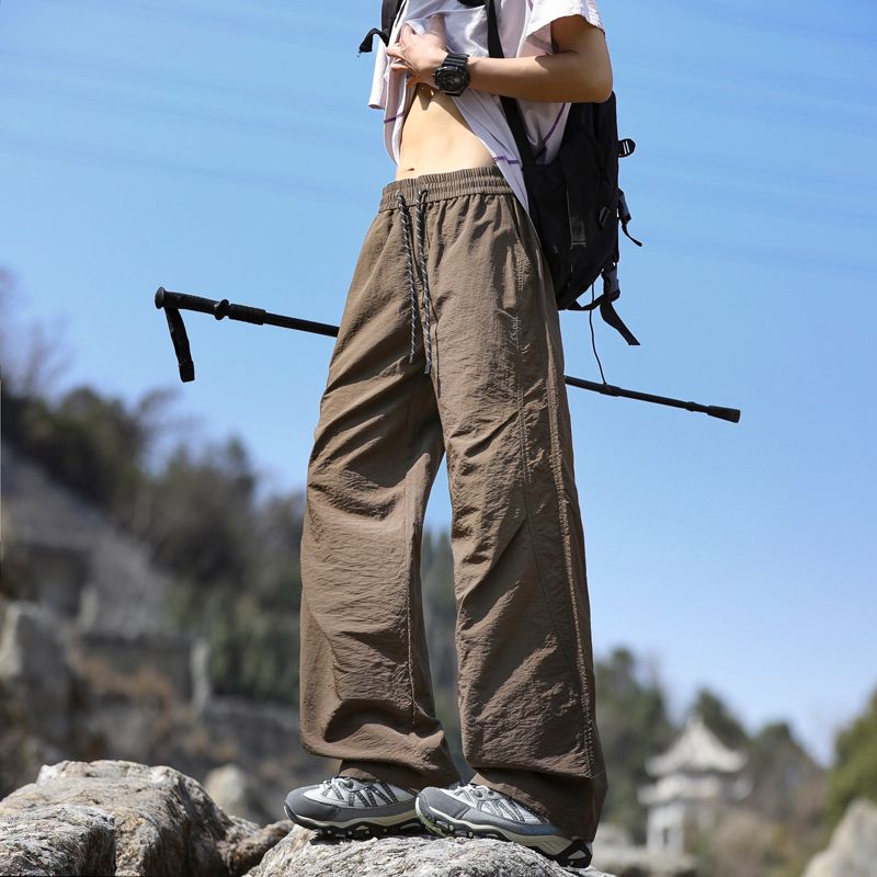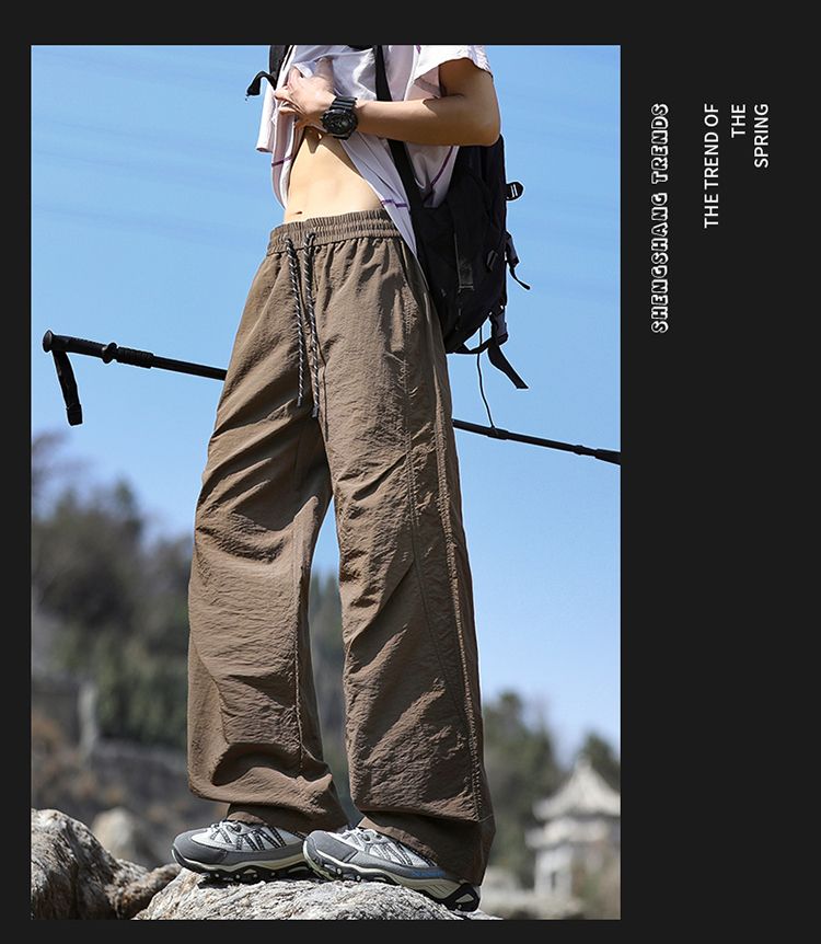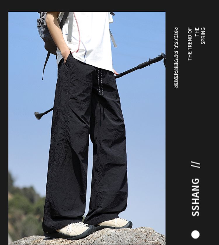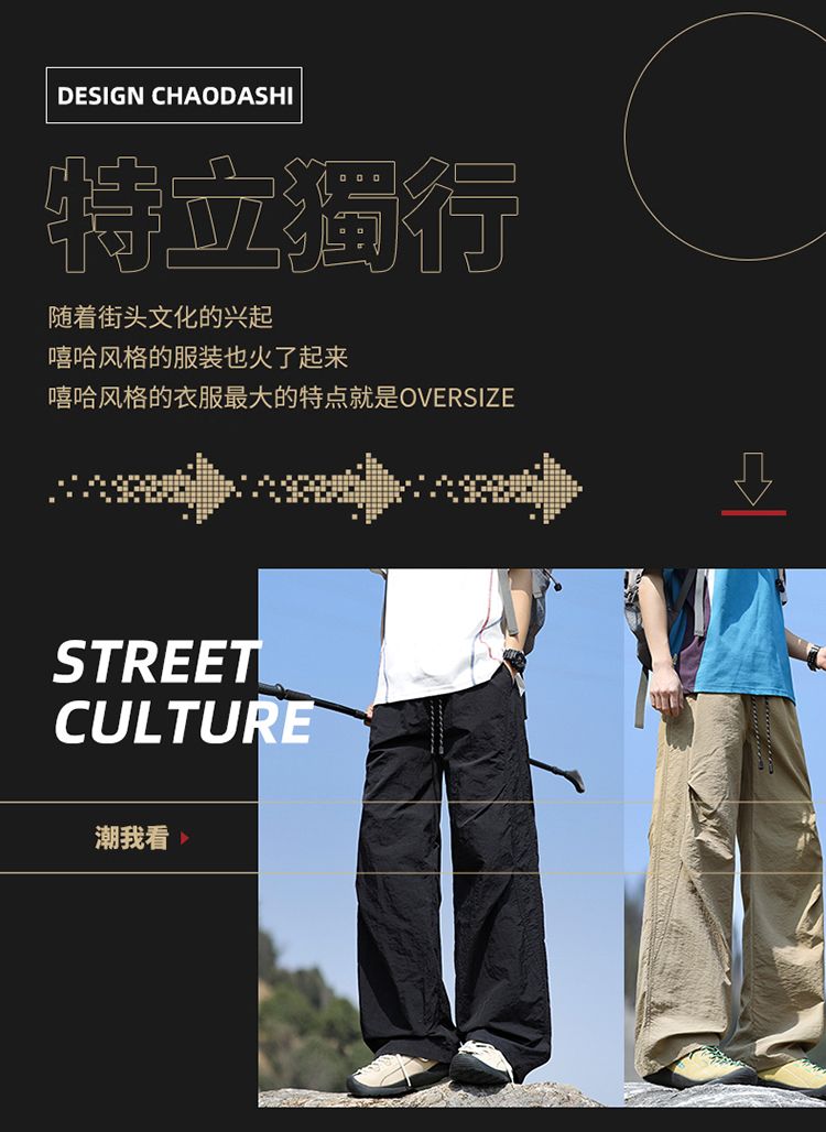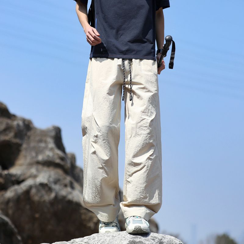 라이 경기 서울 주간 실크 아메리칸 남성 캐주얼 바지 봄 여름 새로운 도루 센스 루즈핏 스트레이트 캐주얼 조수 브랜드 와이드 레그 팬츠