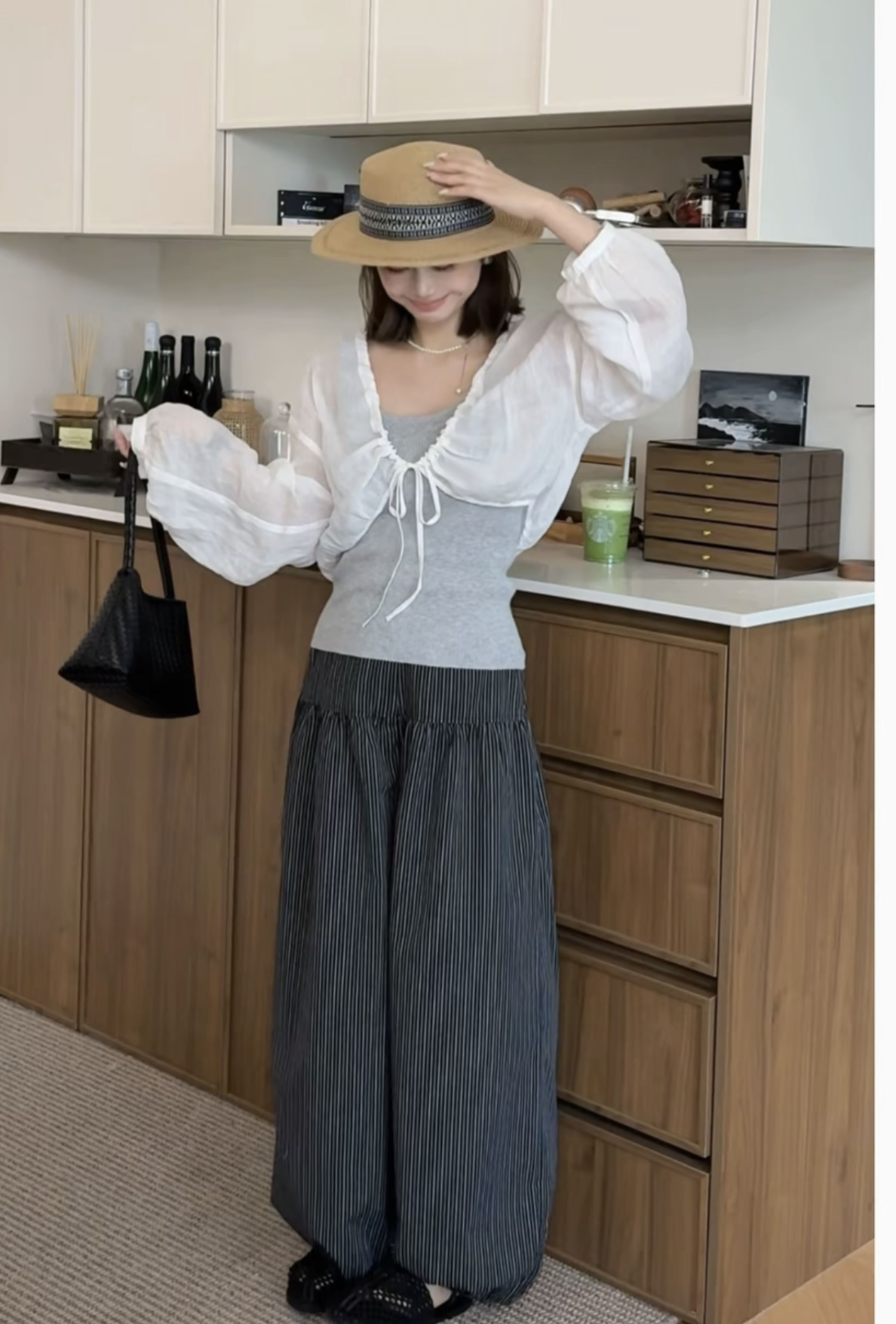 부드러운 바람 레이스업 2026 봄 새로운 한국 스타일 다용도 긴팔 얇은 스타일 라미 품격 두 조각 여성 세트