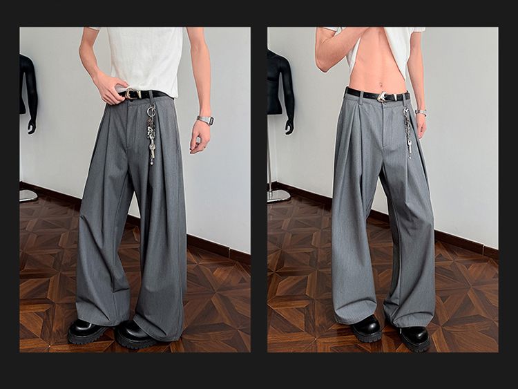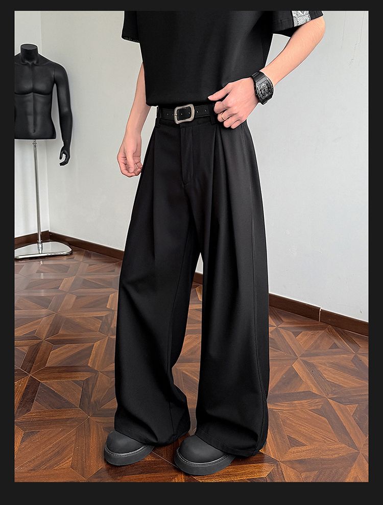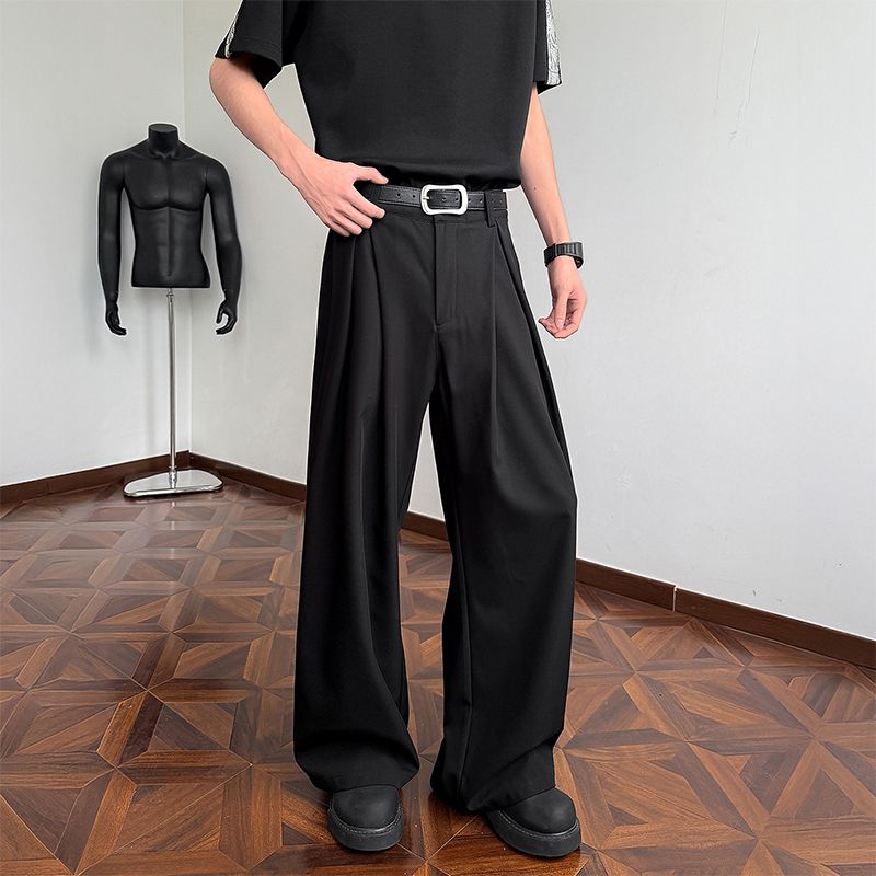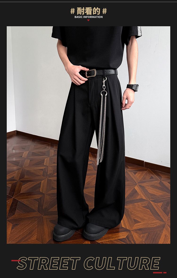 라이 경기 서울 주간 실크 아메리칸 남성 캐주얼 바지 봄 여름 새로운 도루 센스 루즈핏 스트레이트 캐주얼 조수 브랜드 와이드 레그 팬츠