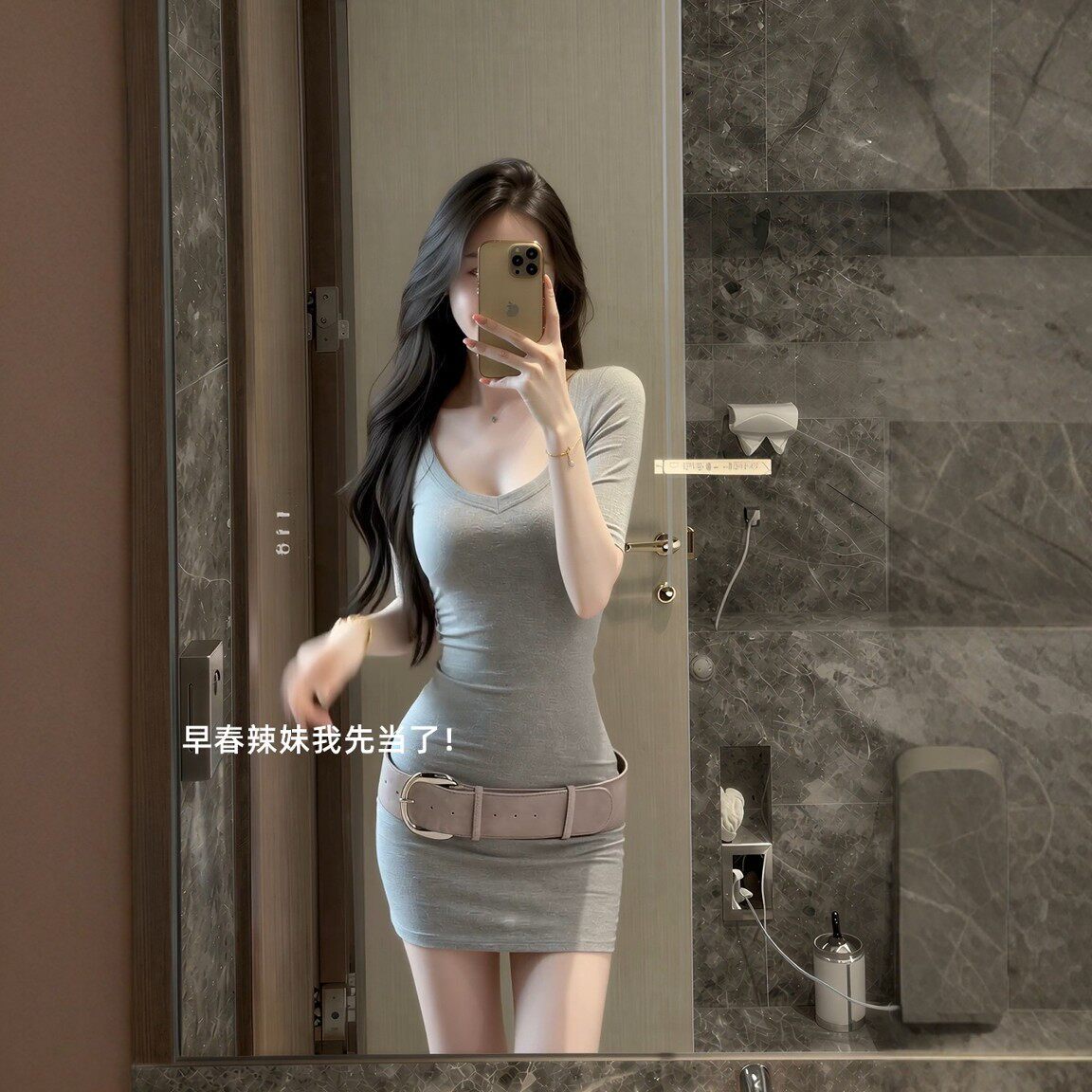 순수한 욕망 바람 회색 V넥 중간 소매 여성 드레스 2026 여름 새로운 품격 몸매 가꾸기 디스플레이 몸 타이트 스커트 미니 스커트