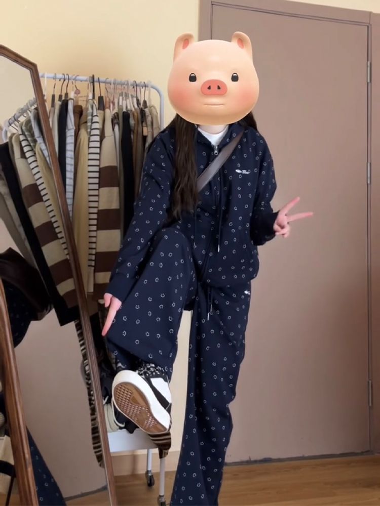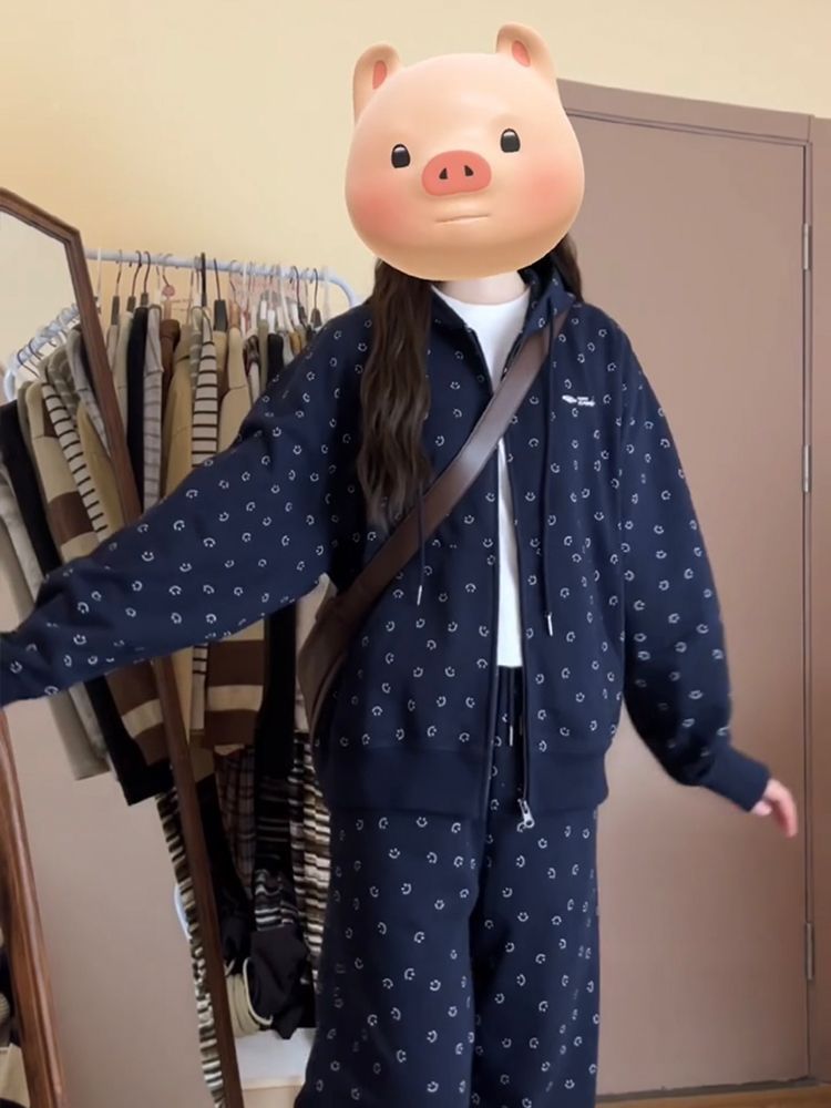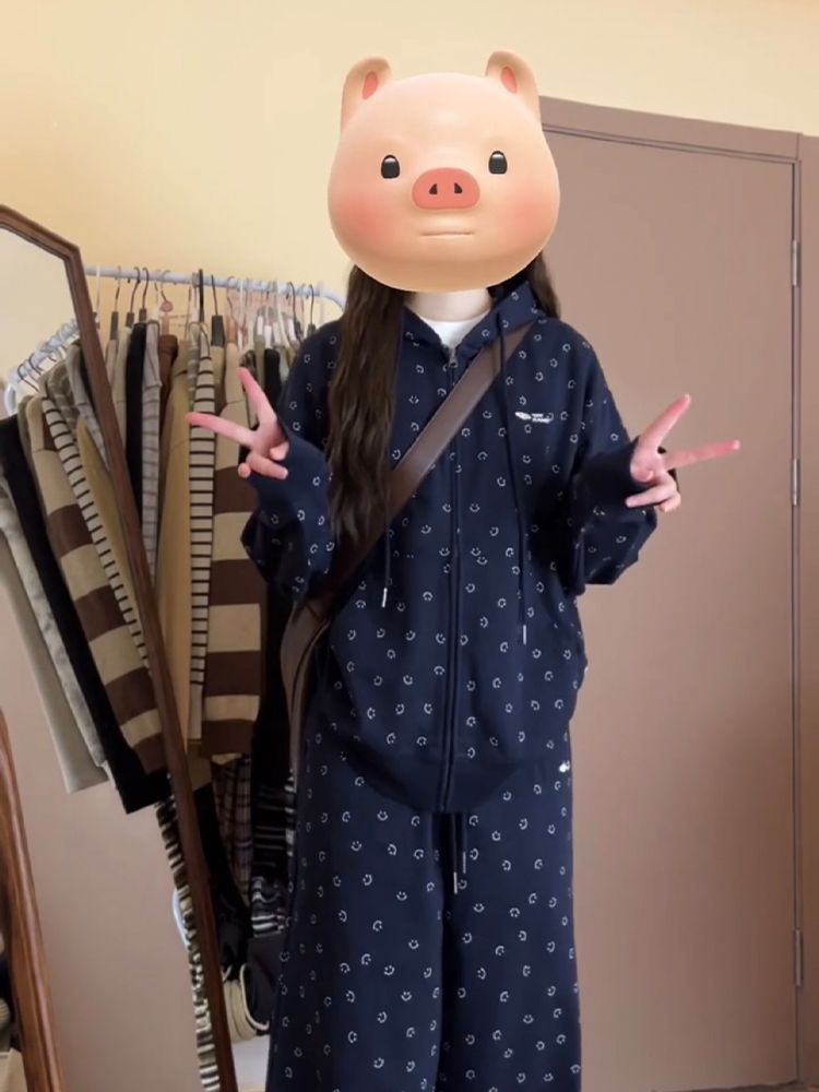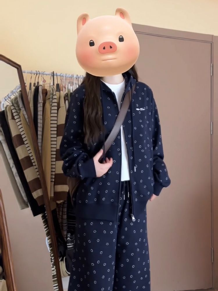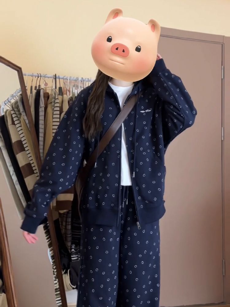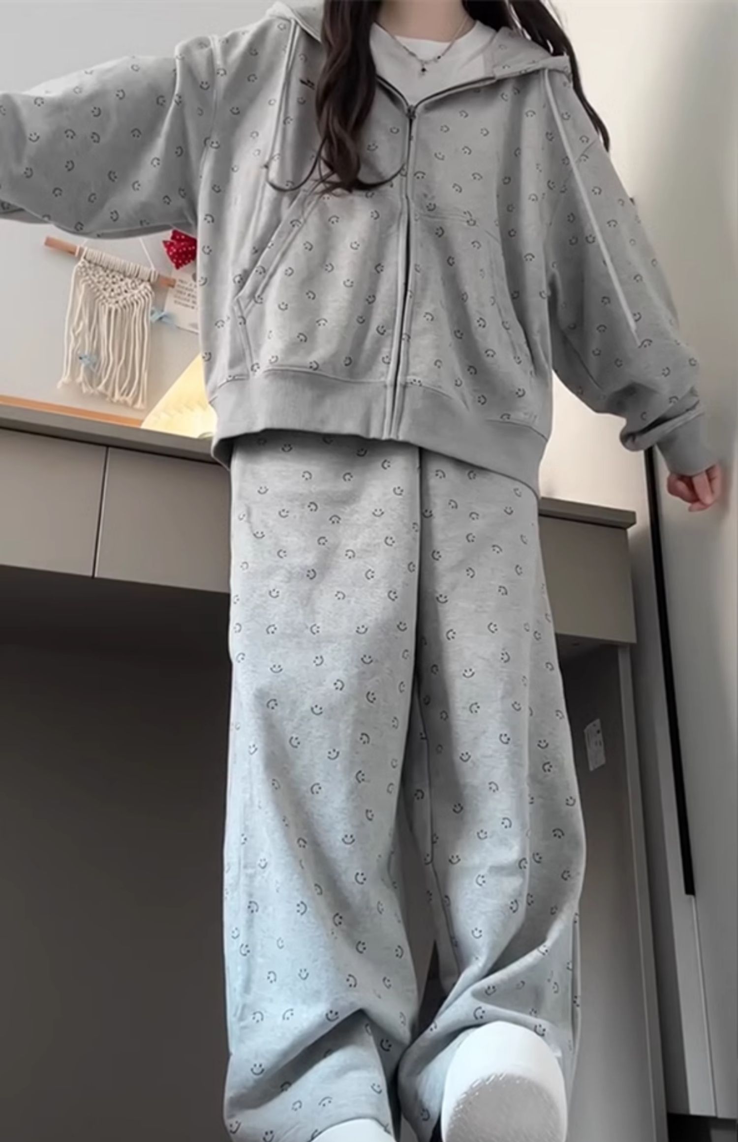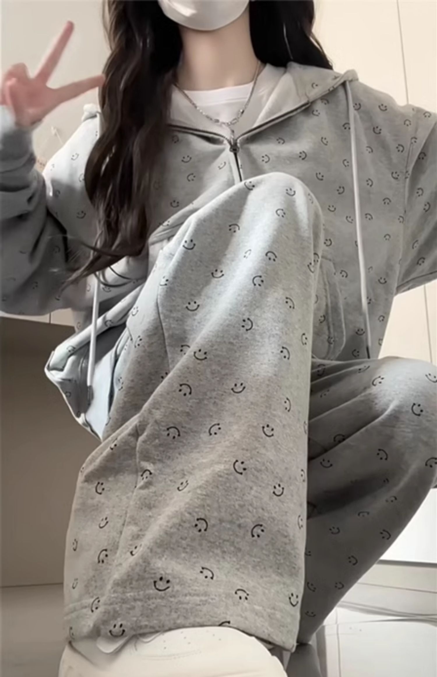 지퍼 후드티 캐주얼 스포츠 슈트 여성 봄 가을 새로운 학생 한국 스타일 루즈핏 다용도 투피스 세트