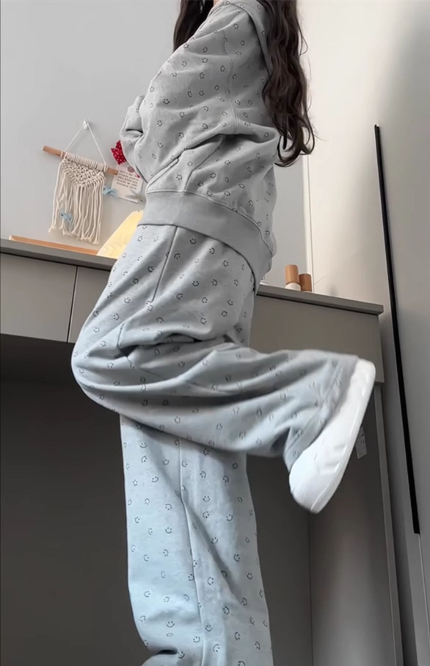 얇은 스타일 털이 있는 후드 티 스웨터 세트 여성 봄과 가을 학생 한국 스타일 루즈핏 긴팔 긴 바지 투피스 세트