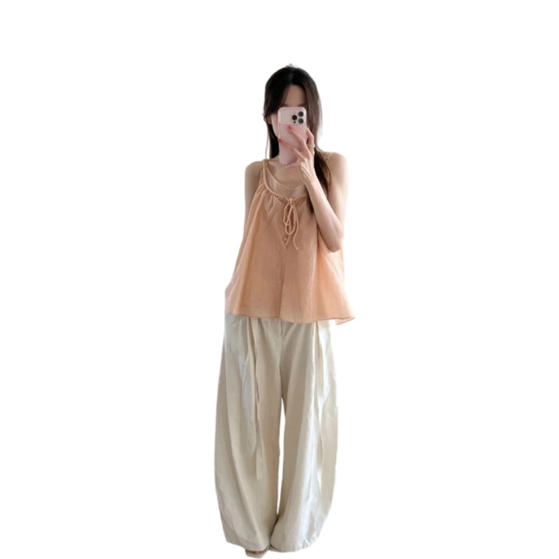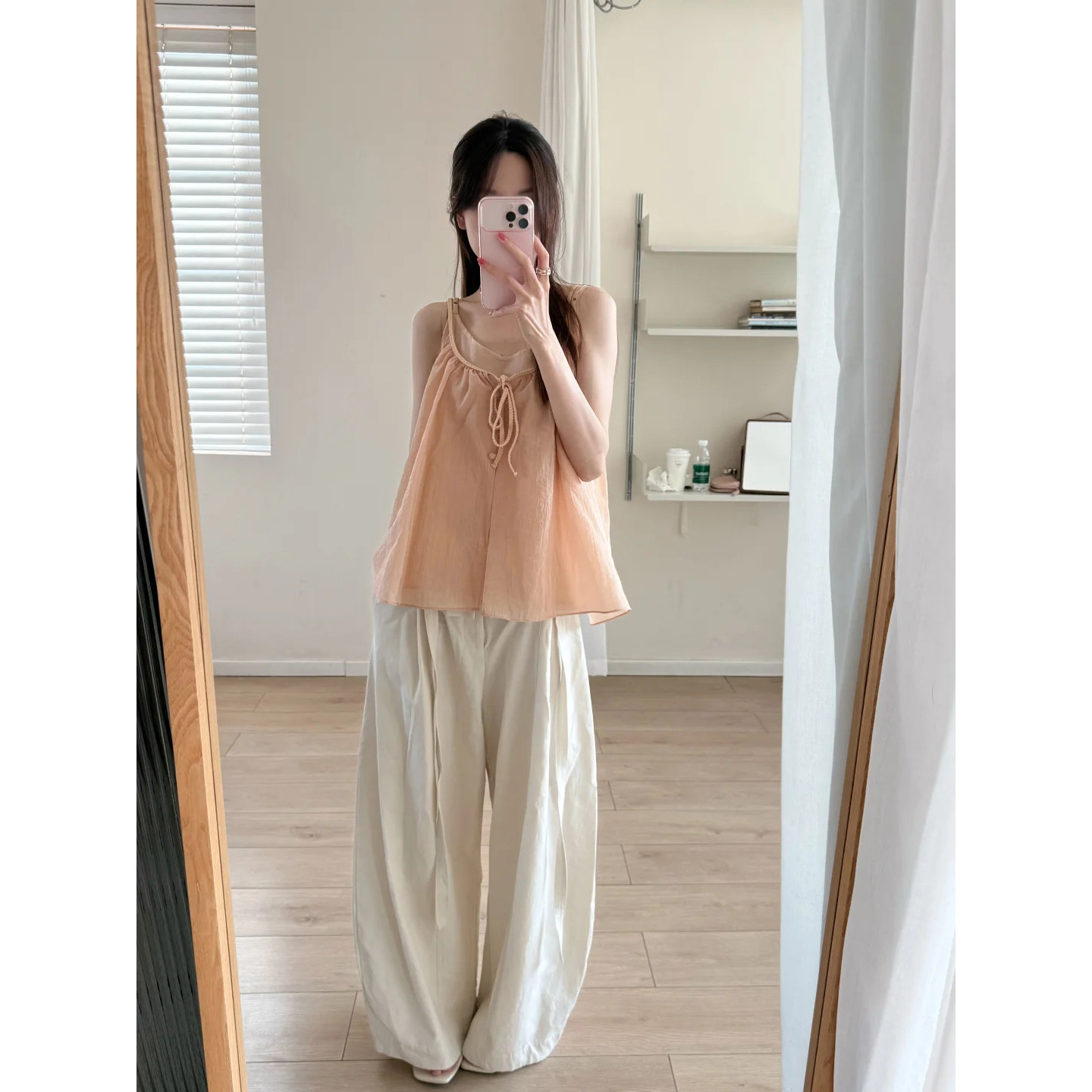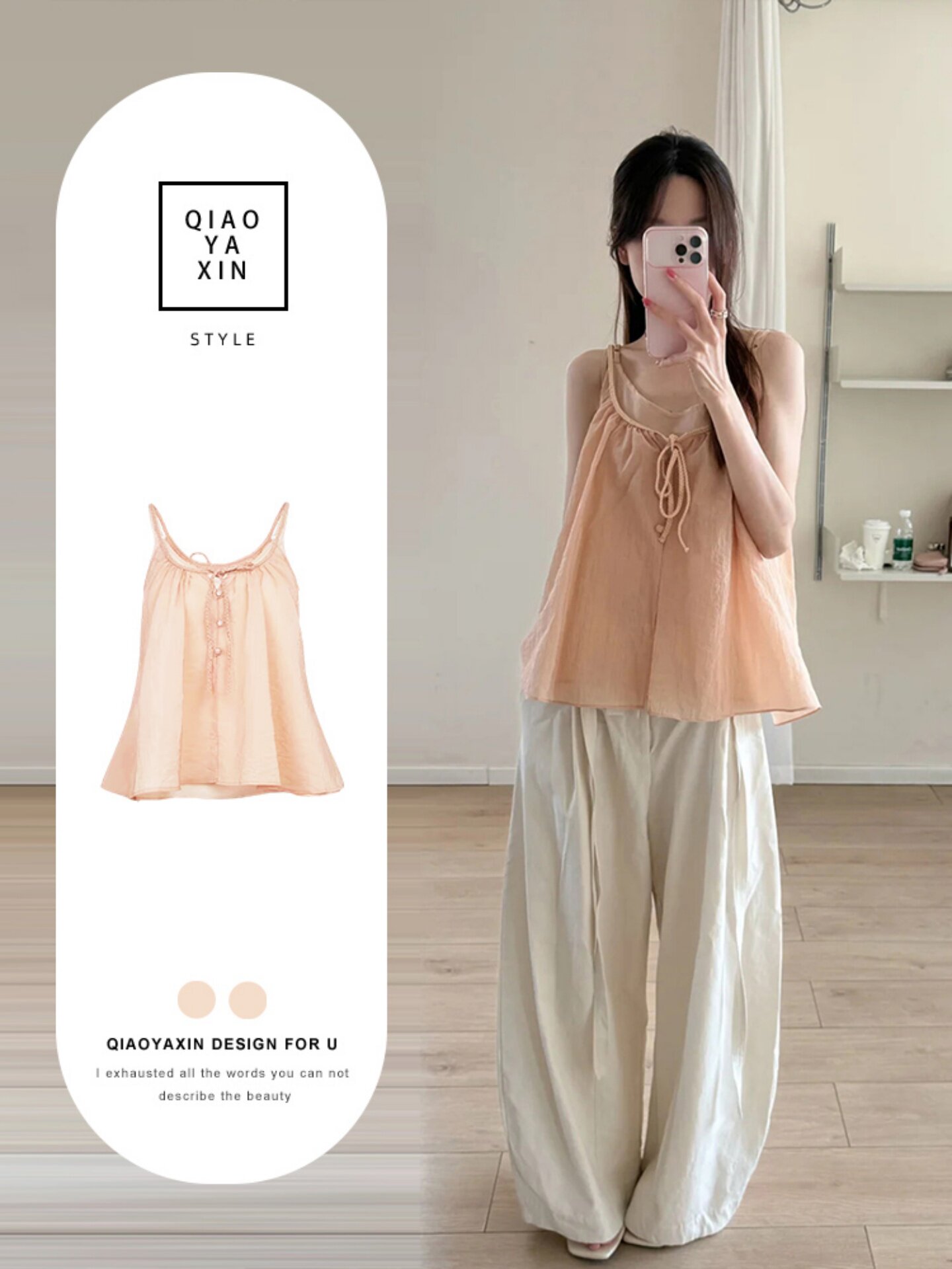 한 부서 아름다운 주황색 작은 슬링 조끼 여성 여름 외출용 2026 새로운 자이언트 잘 생긴 고급 센스 민소매 맨위