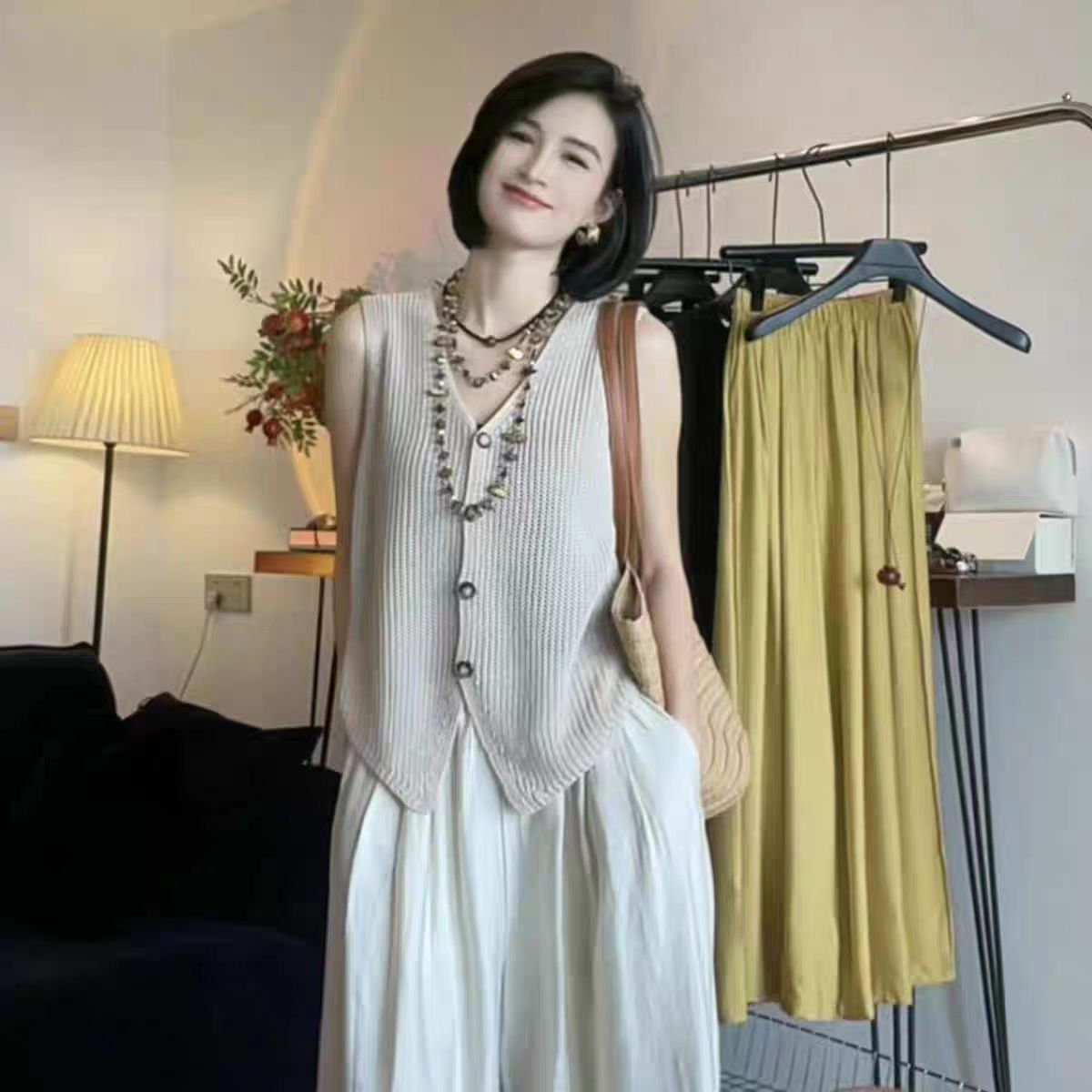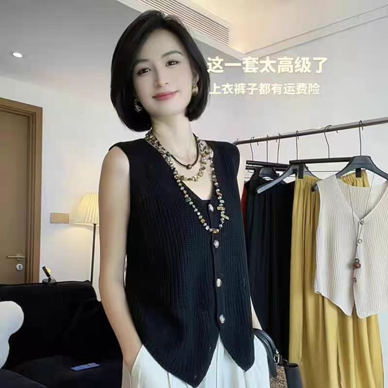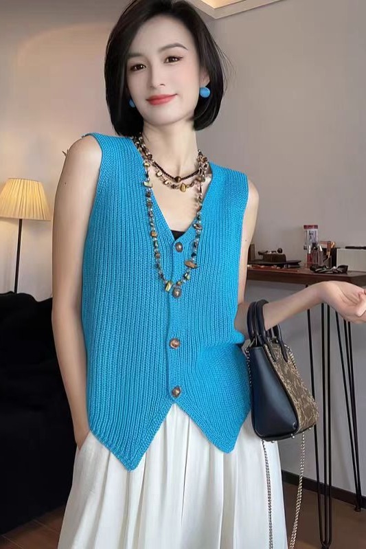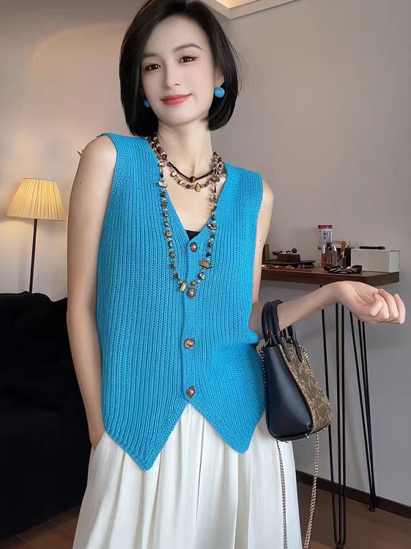 작은 샤넬 스타일 파란색 얼음 실크 니트 조끼 여성 2026 여름 섹션 디자인 센스 레트로 품격 슬림해 보이는 민소매 맨위