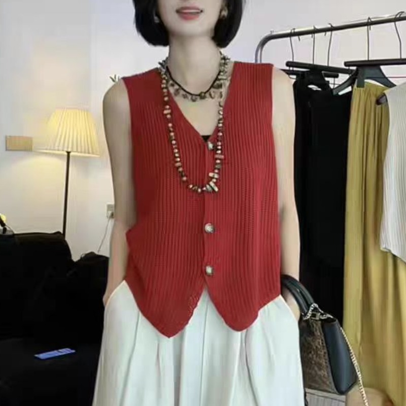 한 부서 부드러운 바람 웨스트 포 멜로 색상 POLO 셔츠 니트 반팔 티셔츠 여성 여름 조끼 연령 감소 폴로 칼라 민소매 맨위