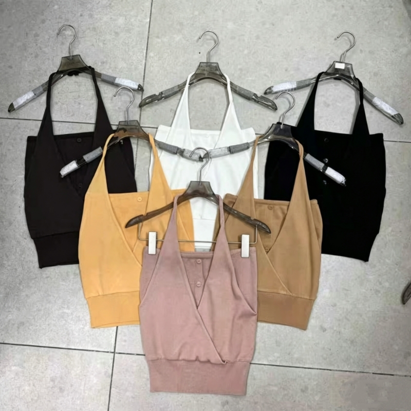 실사 정가 2026 여름 새로운 디자인 센스 품격 리본 신축성 민소매 타이트 슬림해 보이는 맨위 티셔츠