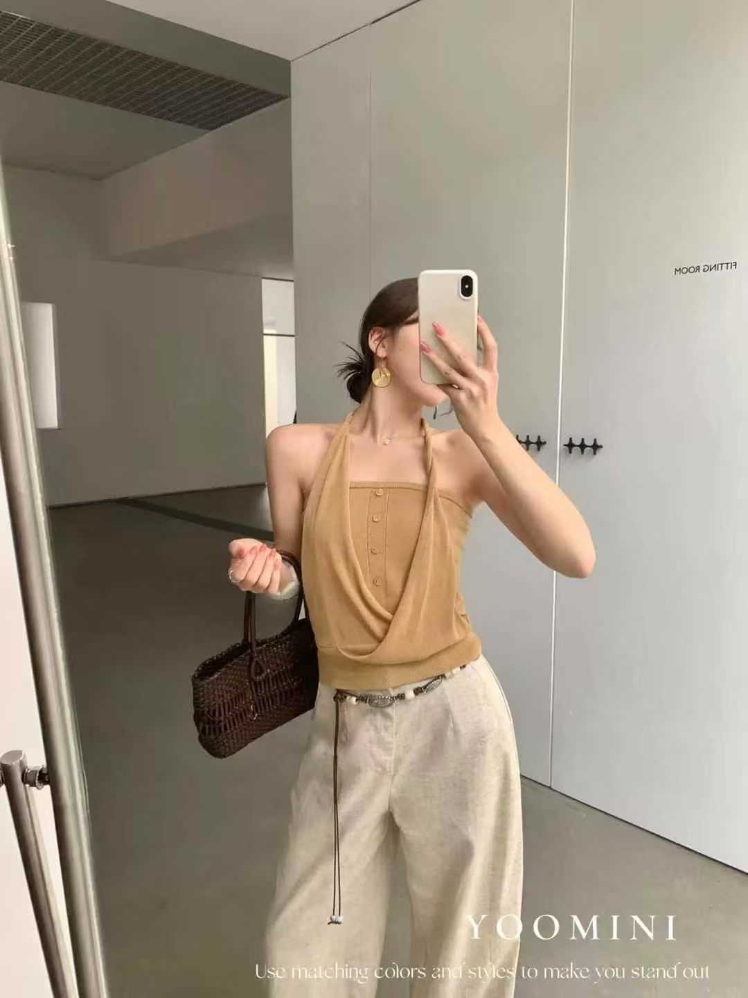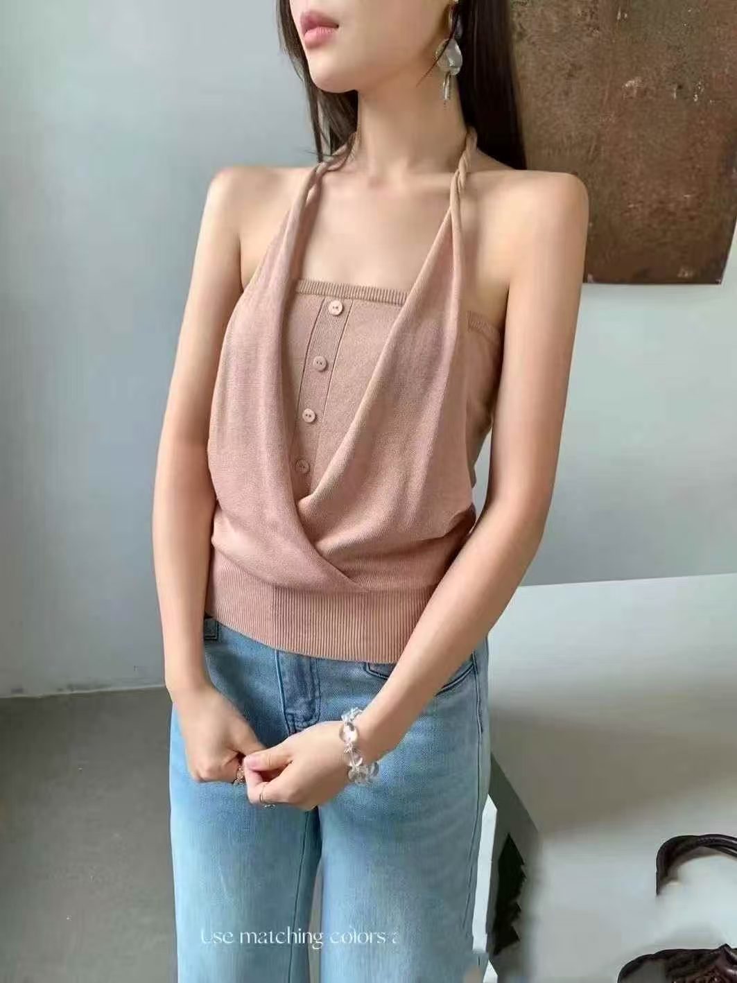 mls 설탕 튀김 밤나무 한 여성 트렌디 차가운 센스 2026 여름 새로운 여성 디자인 센스 단추 비틀림 행침 목 슬립