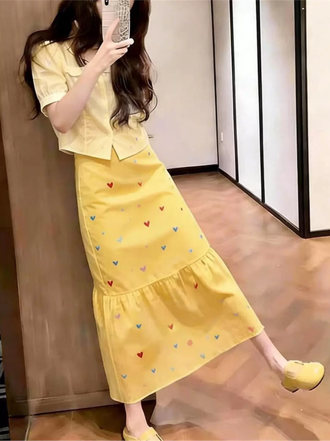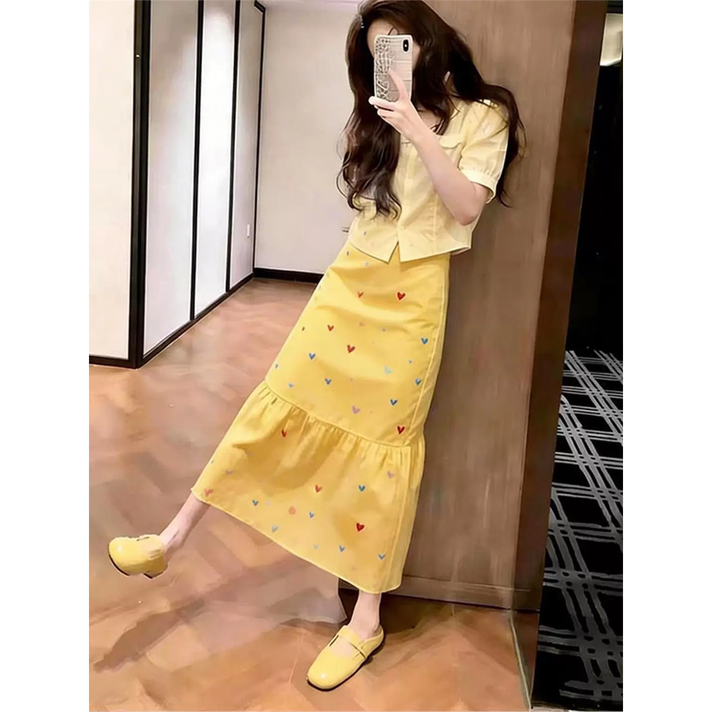 품격 황색 맨위 반신 치마 두 조각 여성 세트 2026 여름 작은 키 고급 센스 슈퍼 잘 생긴 전체 집합
