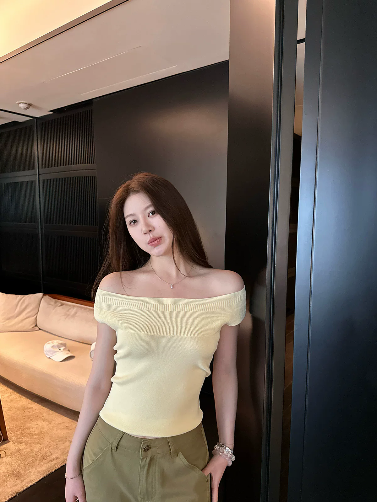 나비 보물 웃음 품격 자매 니트 신축성 4 가지 색상 오프숄더 반팔 맨위 여성 여름 몸매 가꾸기 아름다움 뒤로 티셔츠