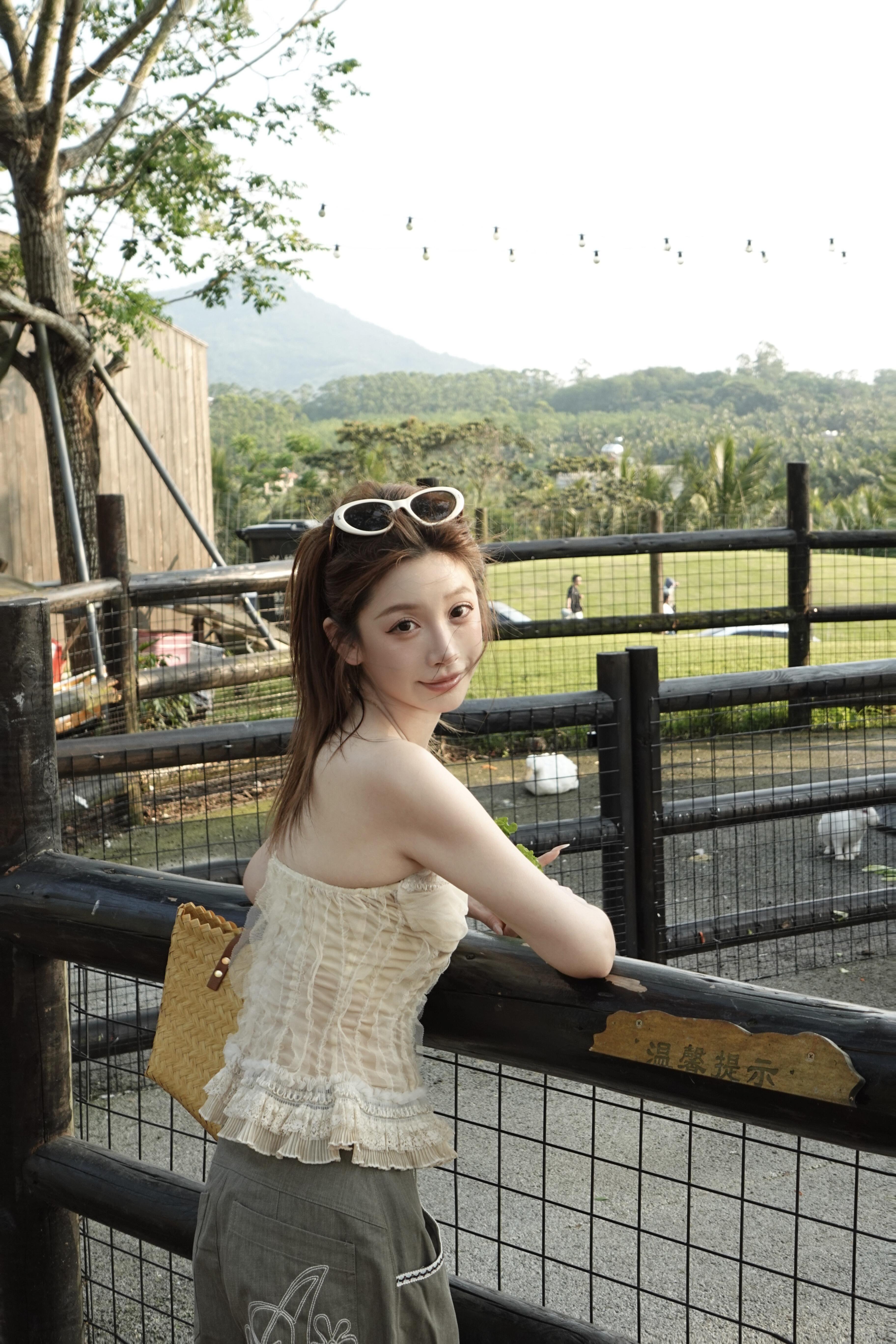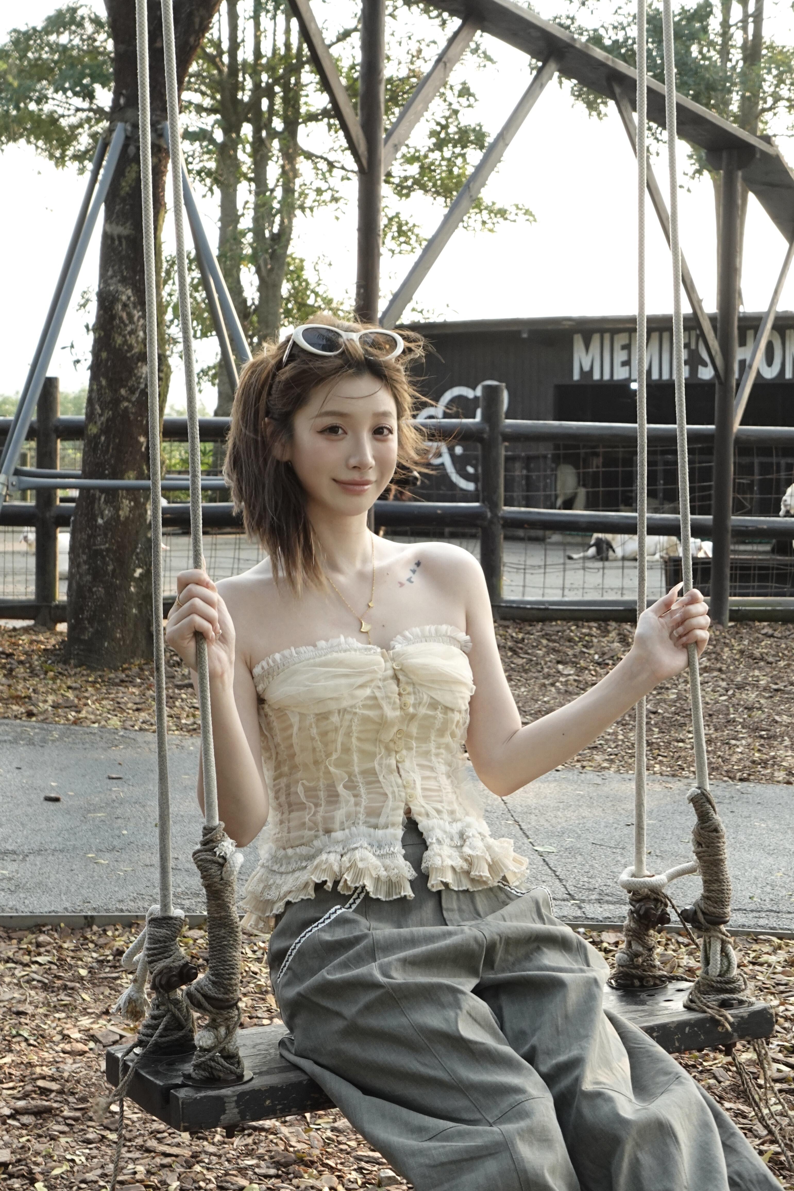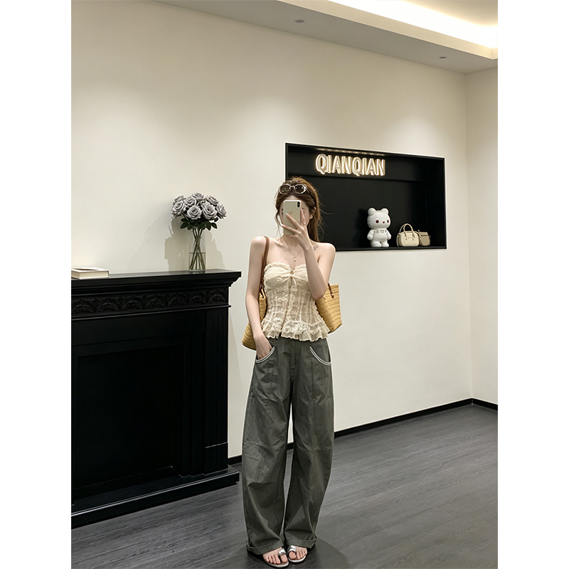 정가 재고 있음 여름 디자인 센스 몸매 가꾸기 달콤한 매운맛 쇼트 스타일 민소매 맨위 레트로 패션 와이드 레그 팬츠 투피스 세트